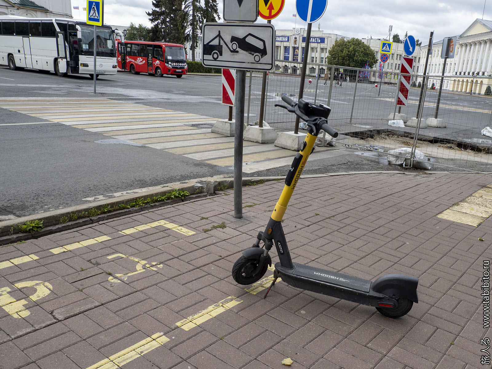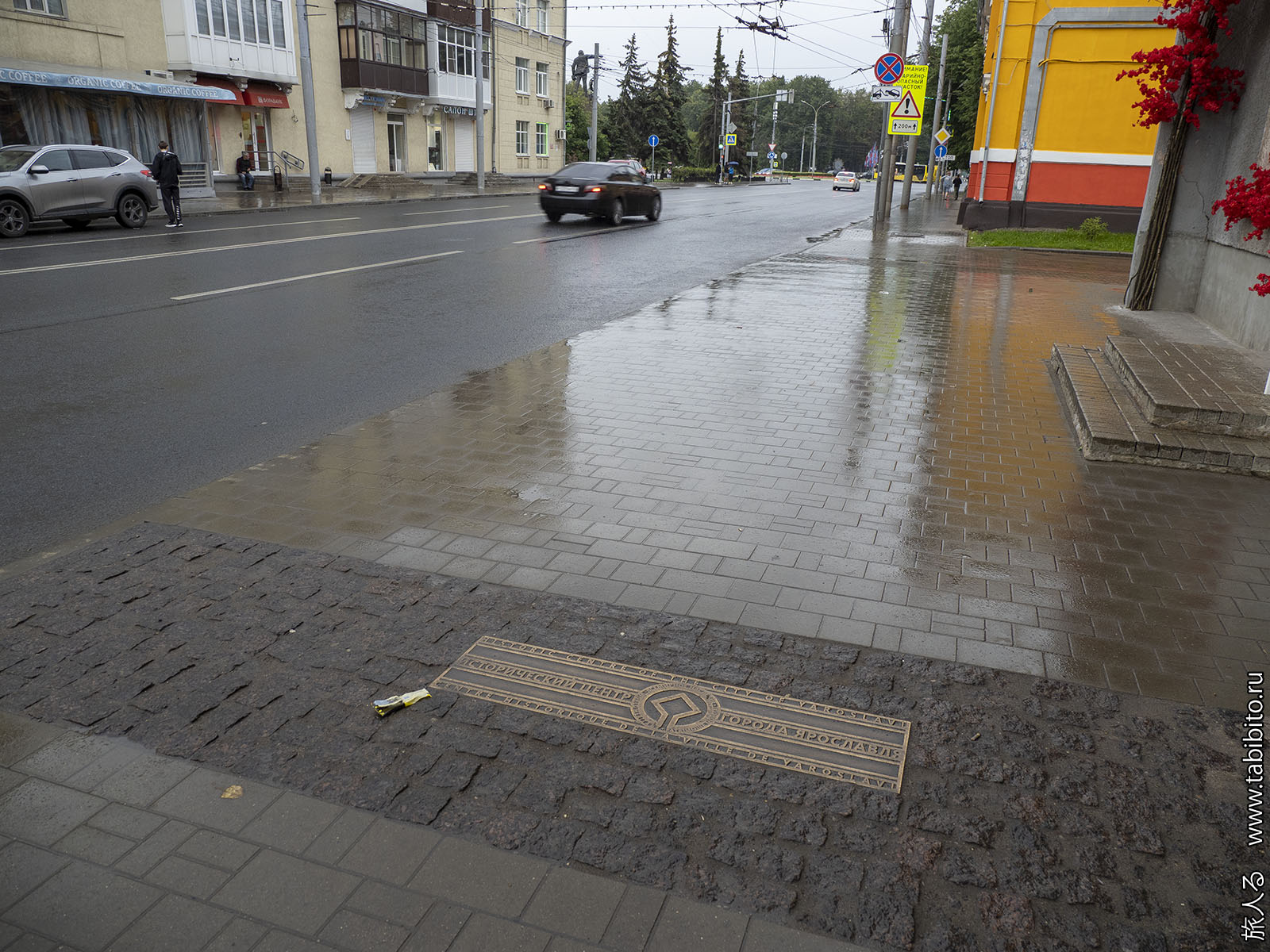 Зачем-то на тротуарах отметили границы охранной зоны ЮНЕСКО. Как будто внутри этой зоны только историческая застройка.