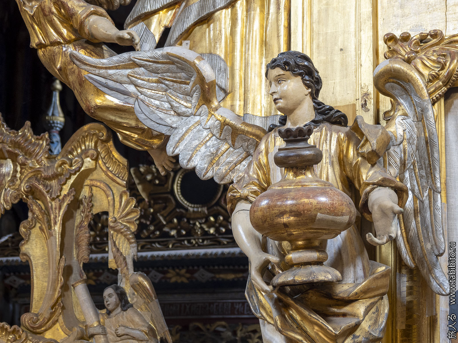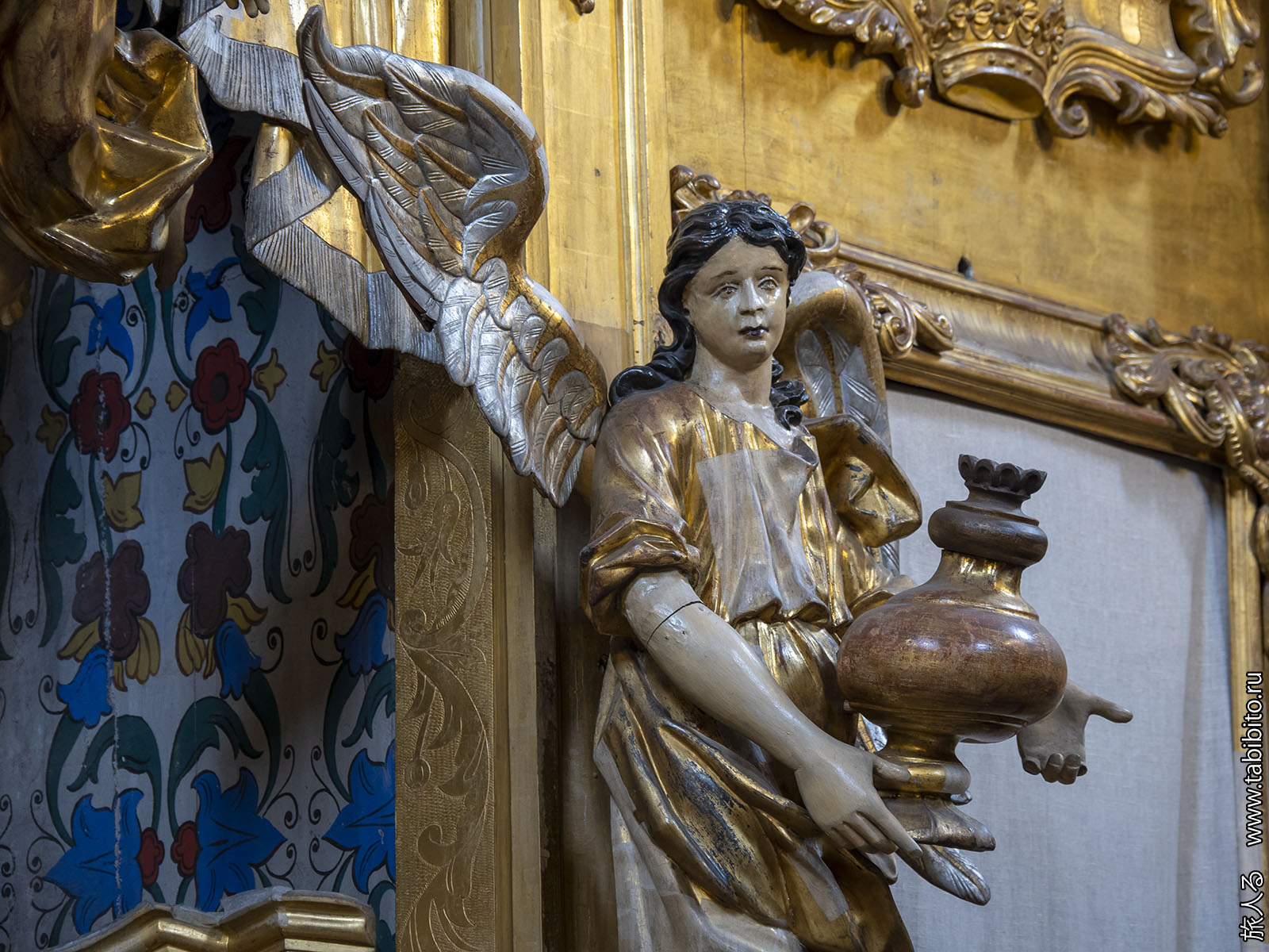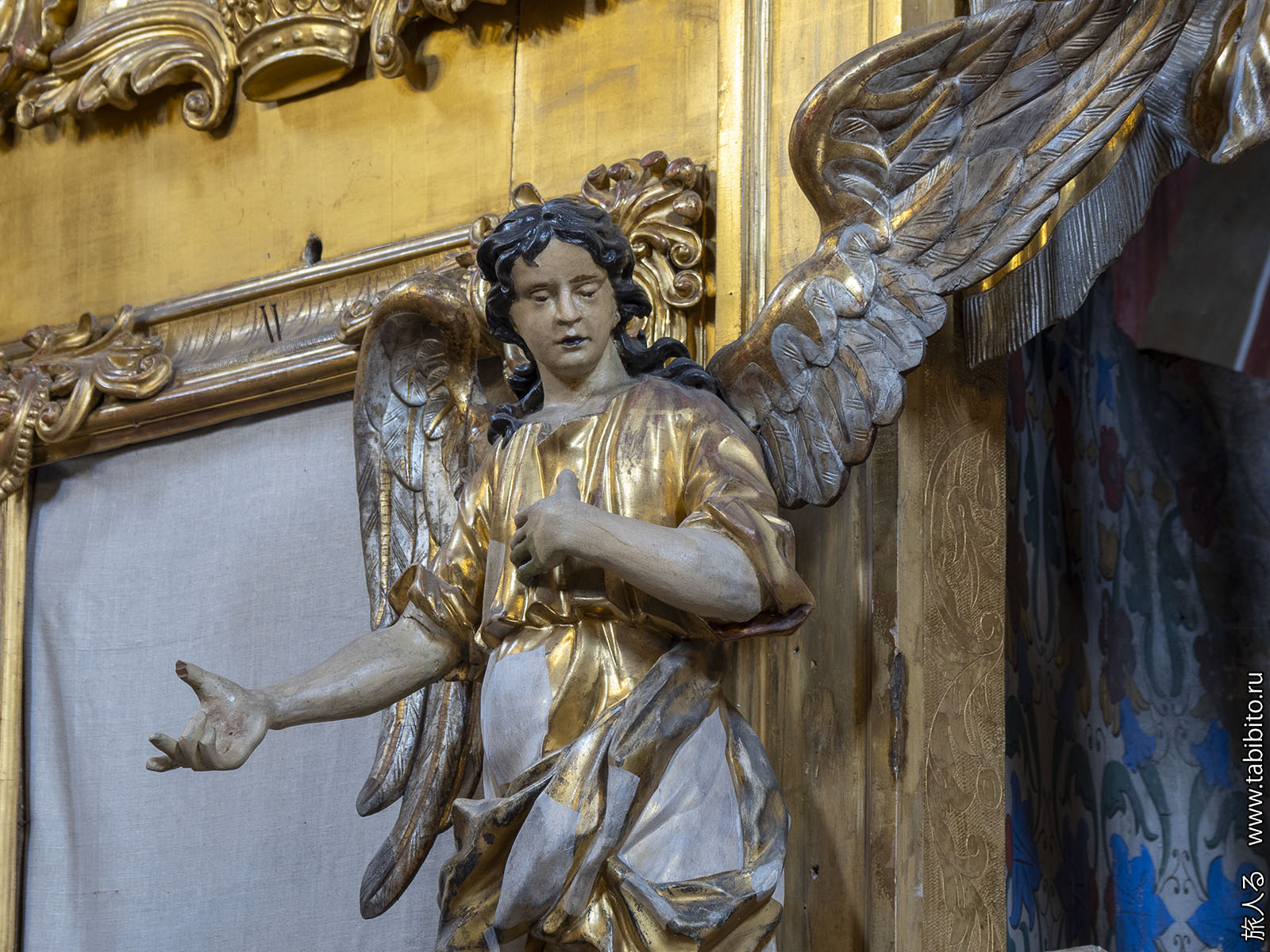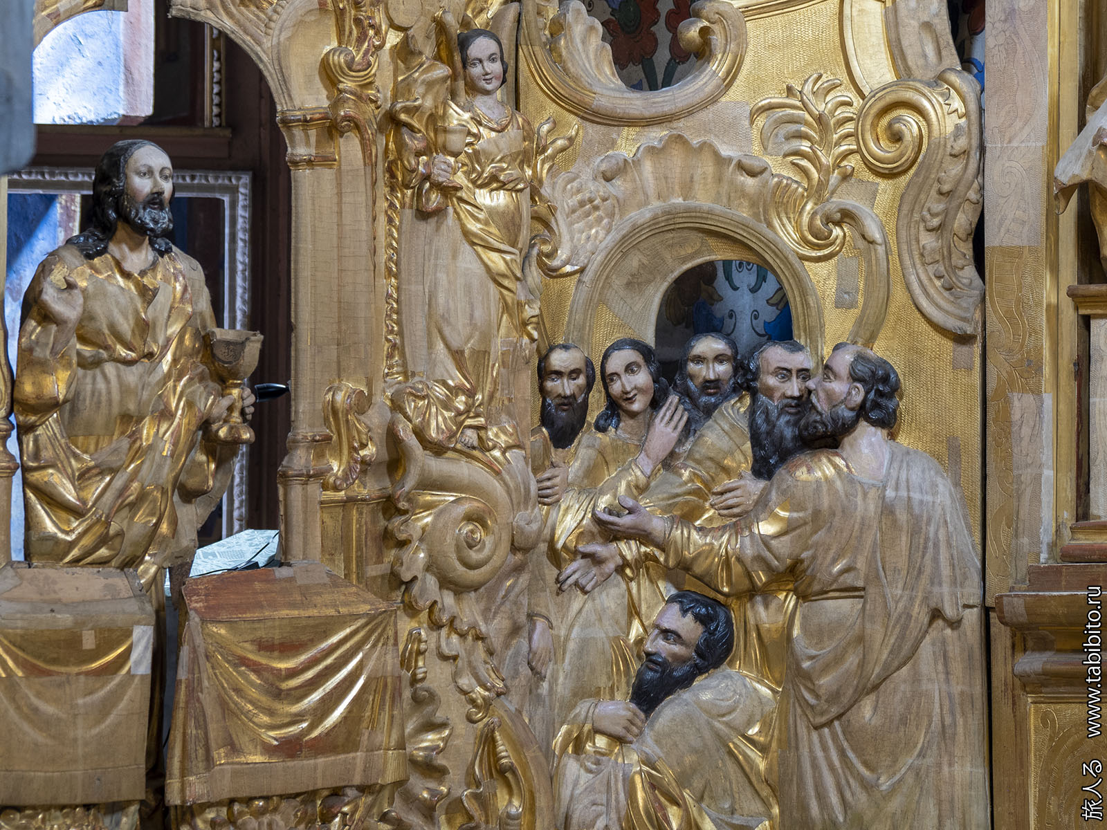 Внутри есть золоченый барочный иконостас (1751) со скульптурами.