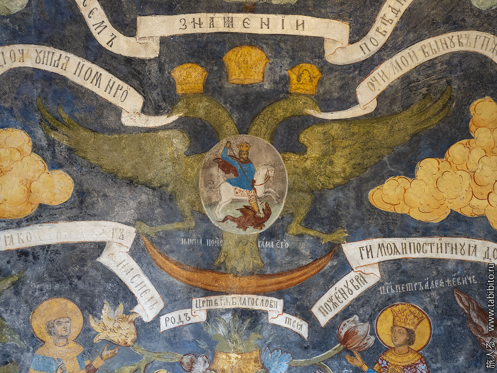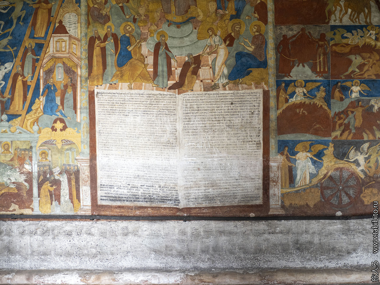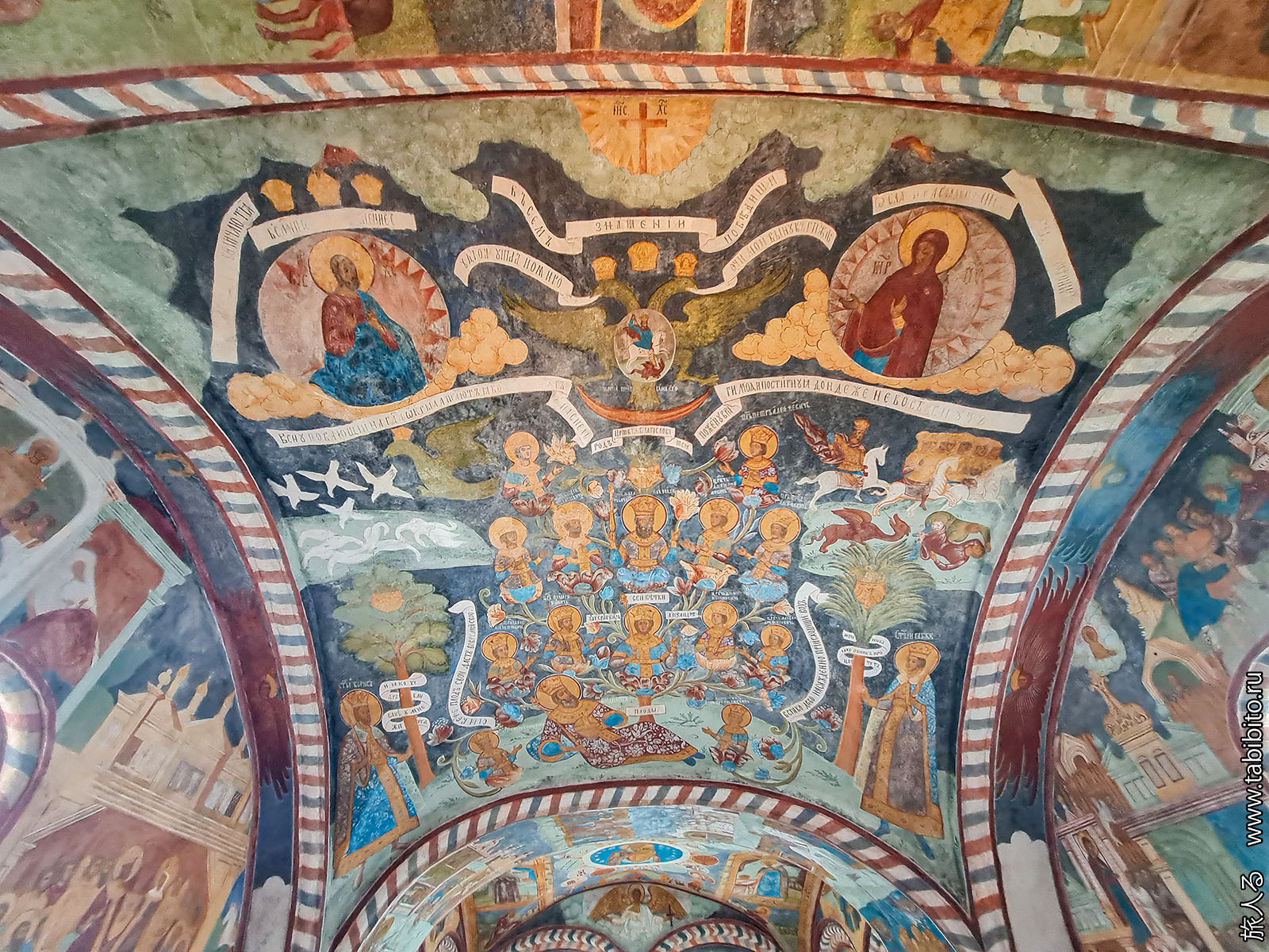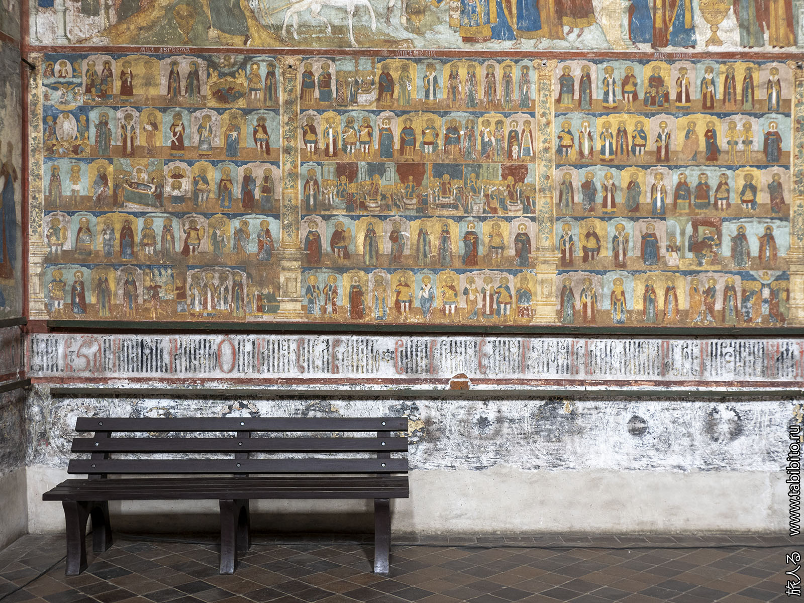 Росписи были сделаны в 1640-х годах, но сильно поновлены в XIX веке.