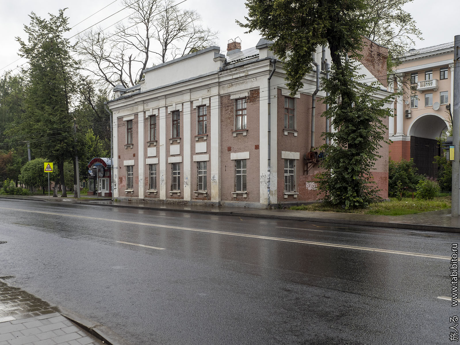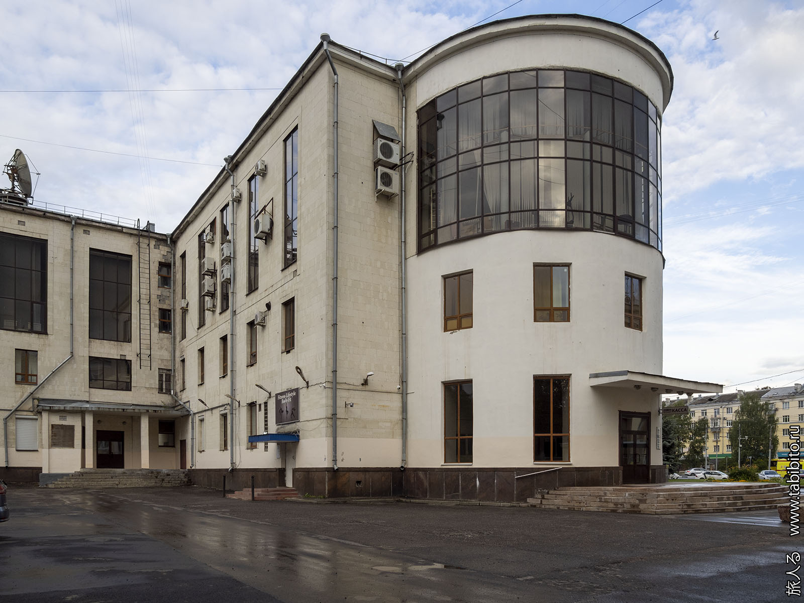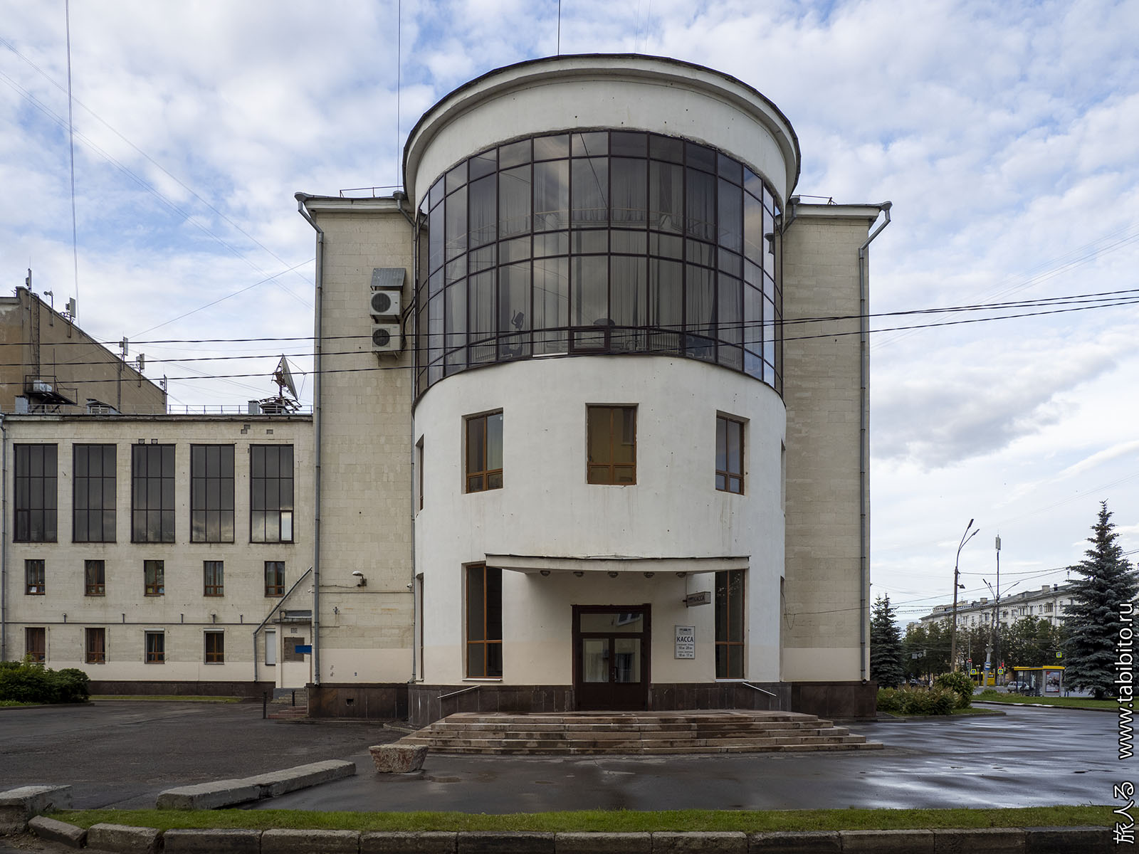 ДК Добрынина. Сначала можно решить, что это конструктивизм, но на самом деле это сталинка, которую начали строить в 1956 году по «облегченному проекту», и переоблицевали в 1980-х годах.