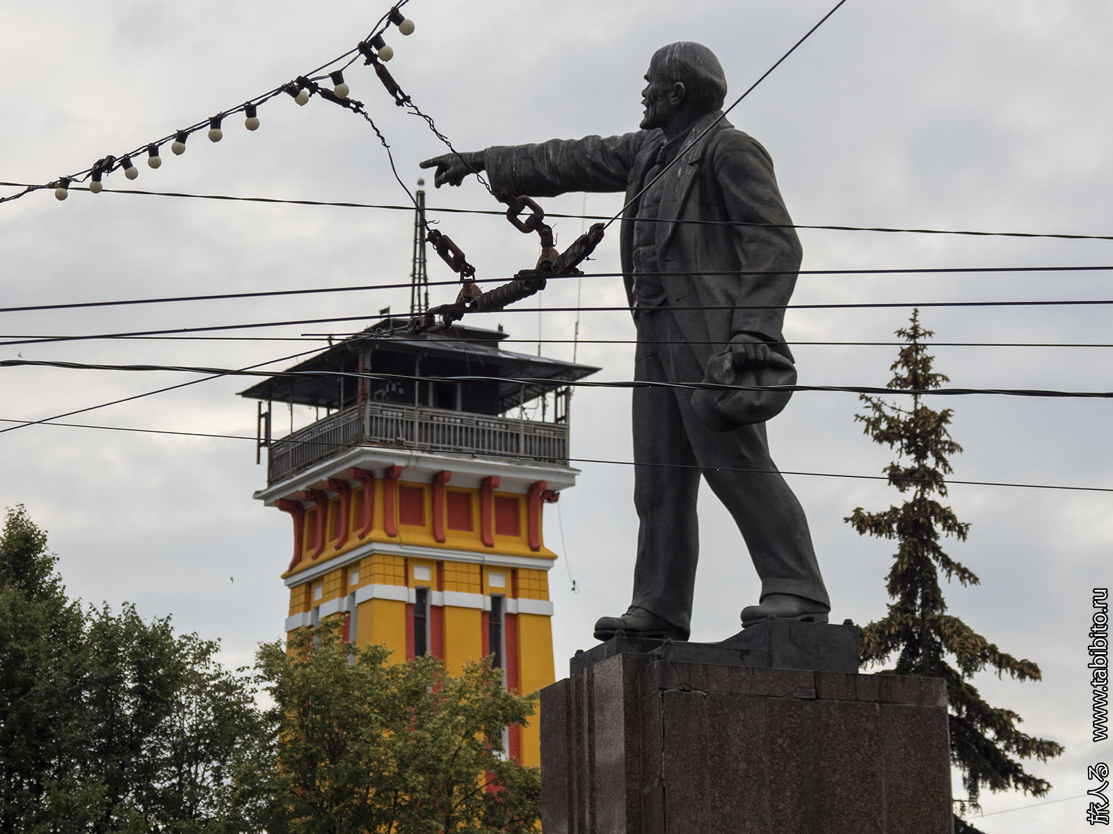 Ленин трогает чайку на шпиле каланчи.