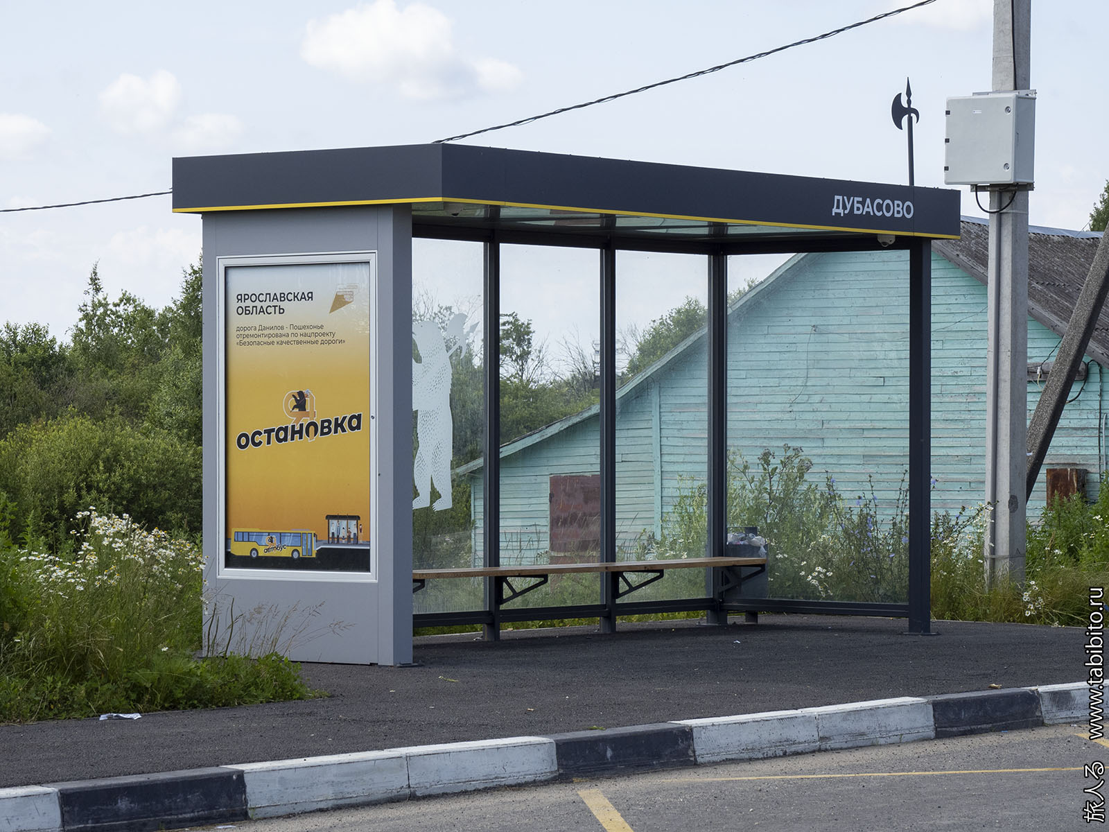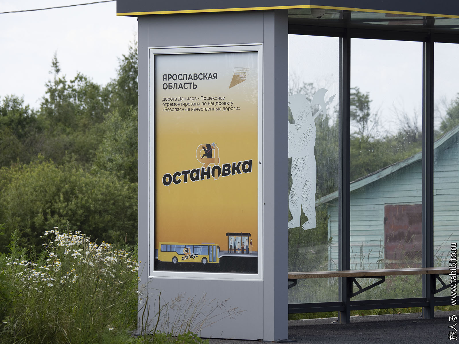 Это уже не Ярославль, но везде по области ставят унифицированные автобусные остановки с надписью «Я остановка» и топориком.