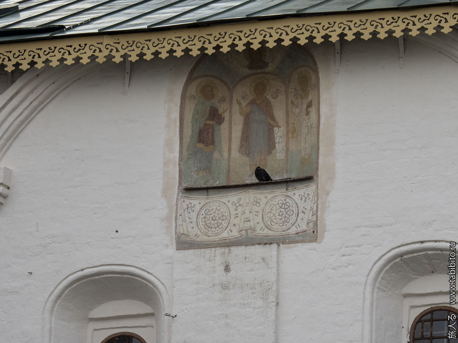 Но не беда, есть храмы-музеи с росписями. Сначала — Церковь Николы Надеина (1622) во дворе сталинок у набережной. Первый каменный храм ярославского посада.