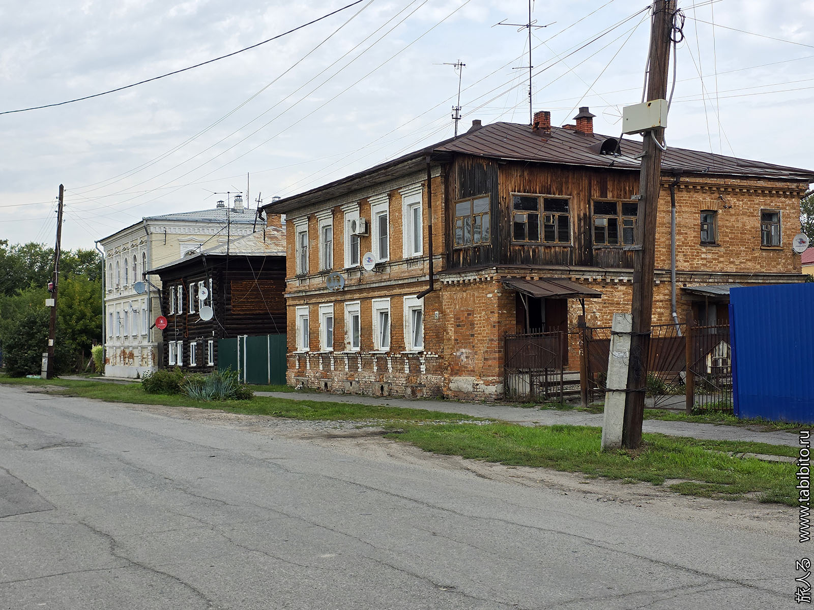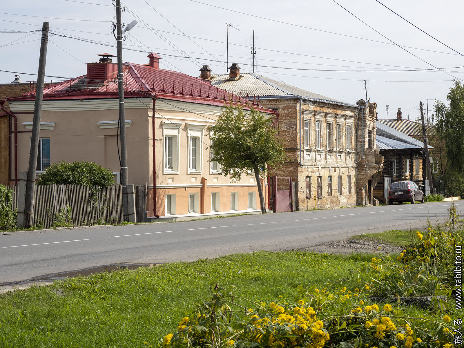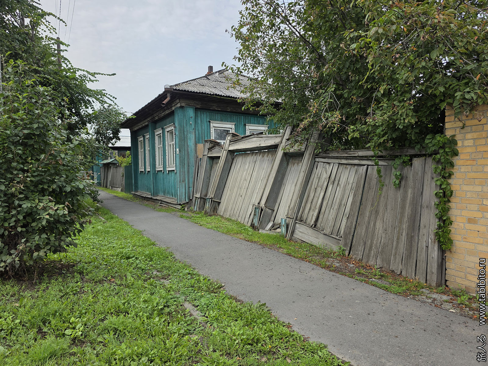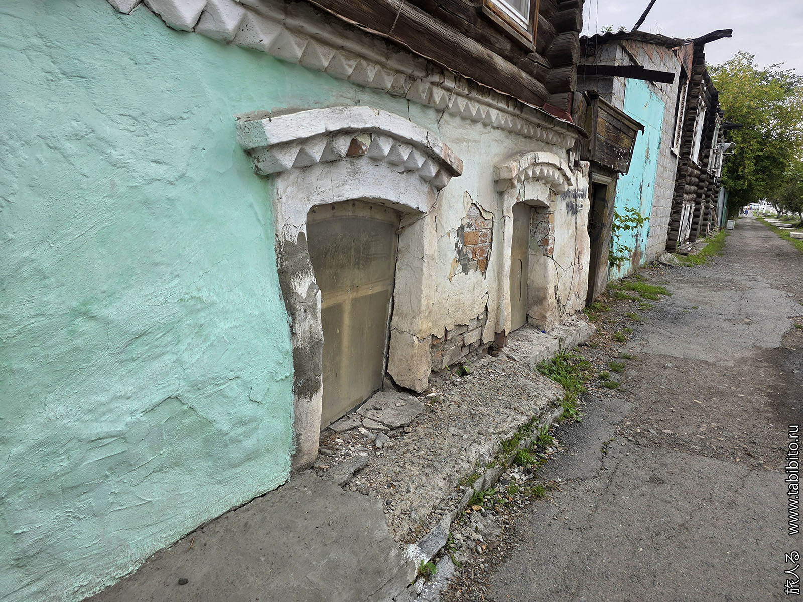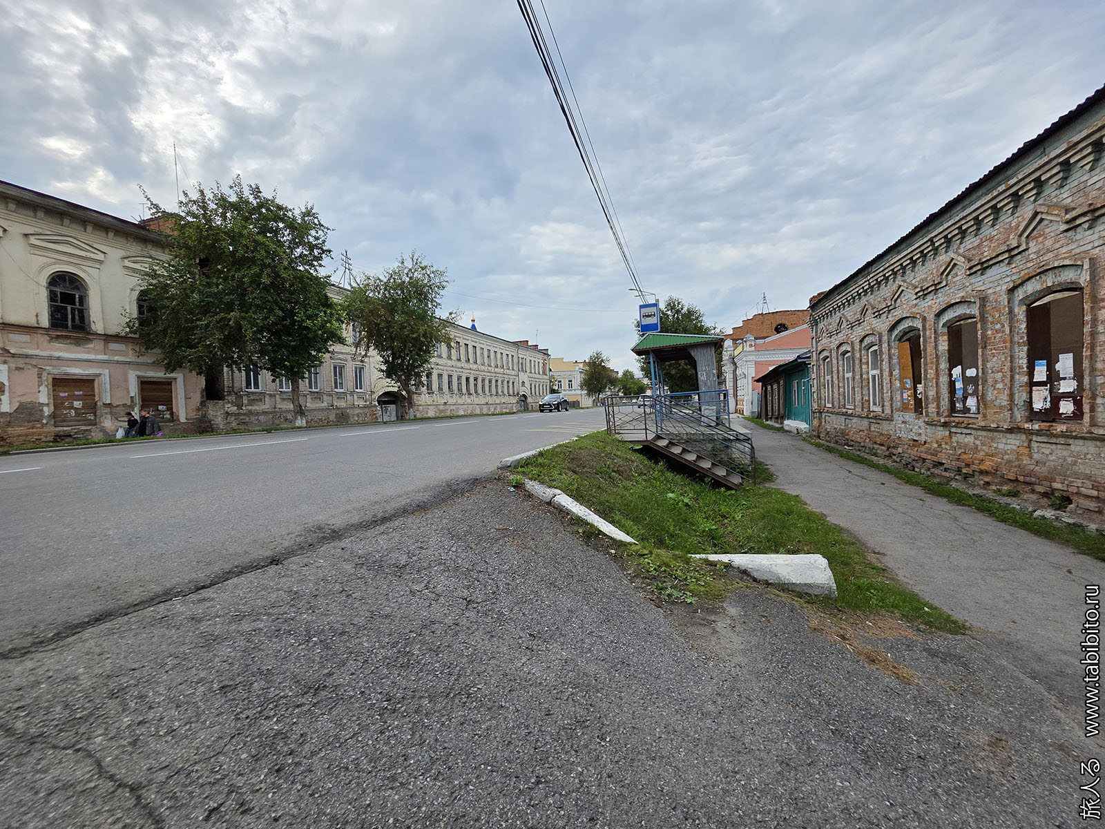 Обращает на себя внимание то, что уровень проезжей части выше того, на котором стоят дома. Судя по старым фотографиям на pastvu, к строительству дорожного покрытия в Ирбите подходили очень серьезно еще в XIX веке.