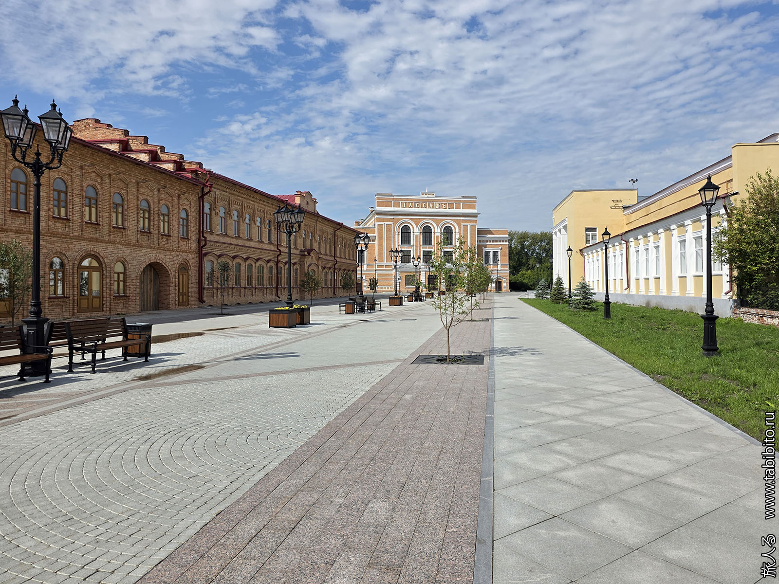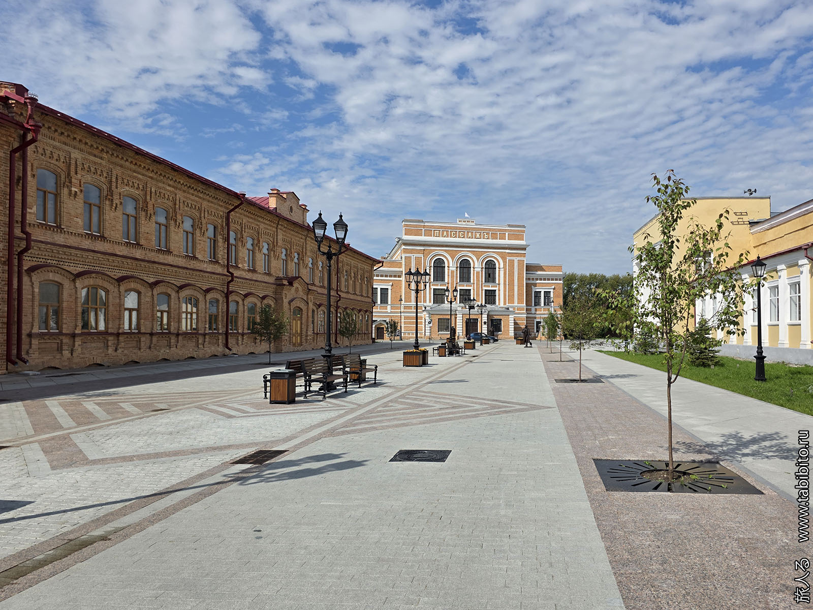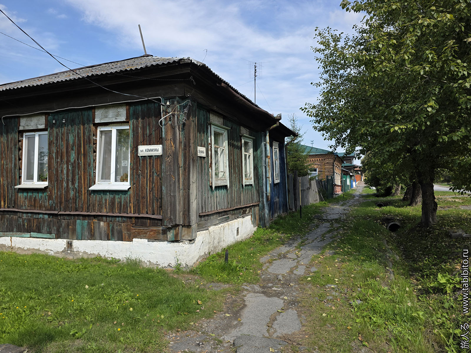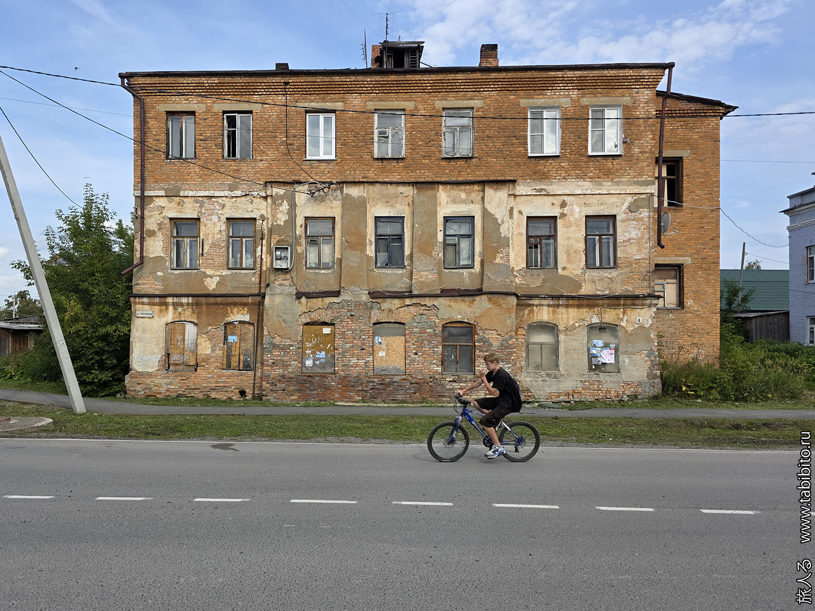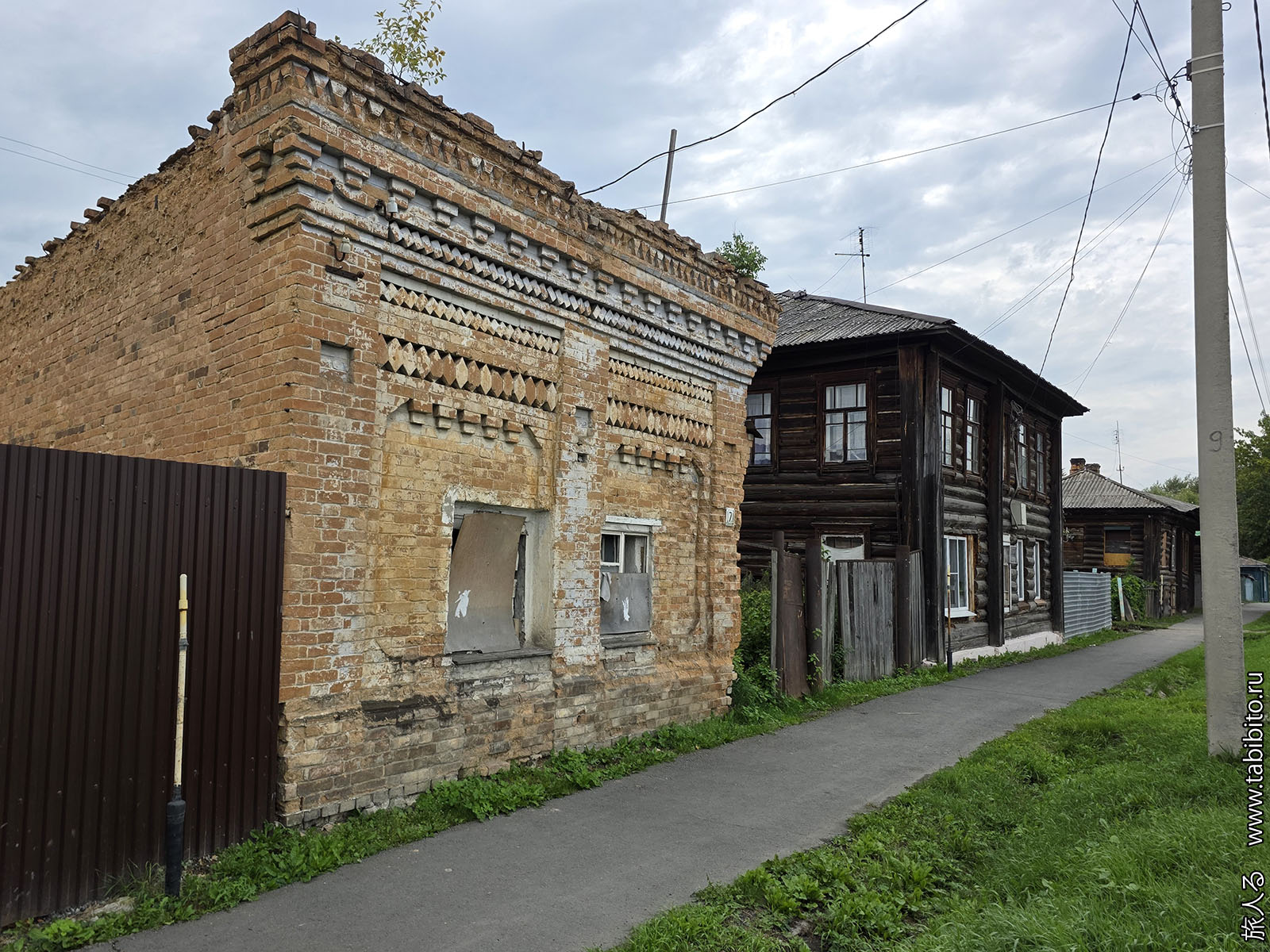 Обращает на себя внимание то, что уровень проезжей части выше того, на котором стоят дома. Судя по старым фотографиям на pastvu, к строительству дорожного покрытия в Ирбите подходили очень серьезно еще в XIX веке.