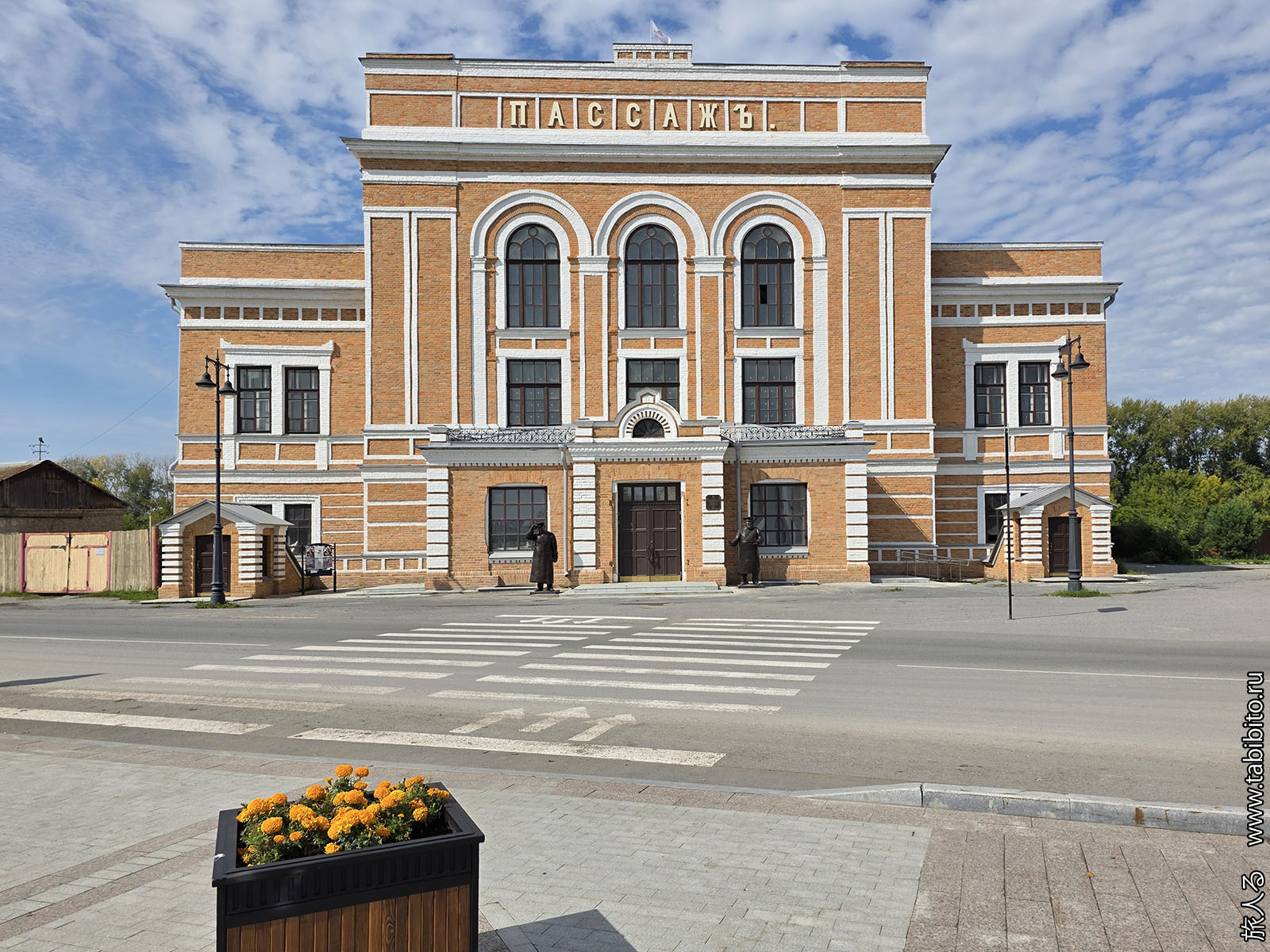 В наши дни сюда добираться крайне неудобно, но до появления железных дорог Ирбит был главным торговым центром Урала. Местная ярмарка была самой большой в России после Нижегородской. В плане города все основные улицы сходятся к бывшей торговой площади и главному ярмарочному зданию — Пассажу (1864). Точка в названии на фасаде выглядит максимально странно, но сделали именно так, как было в XIX веке.
