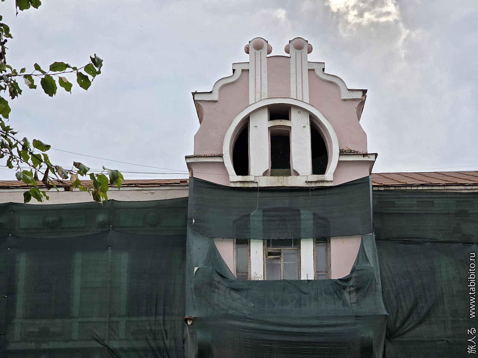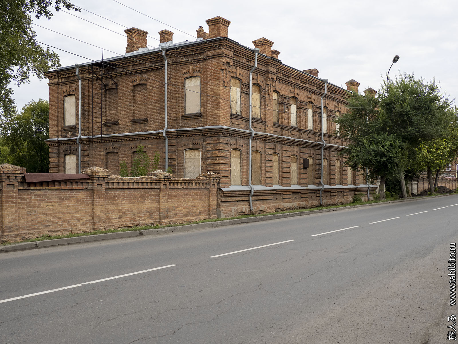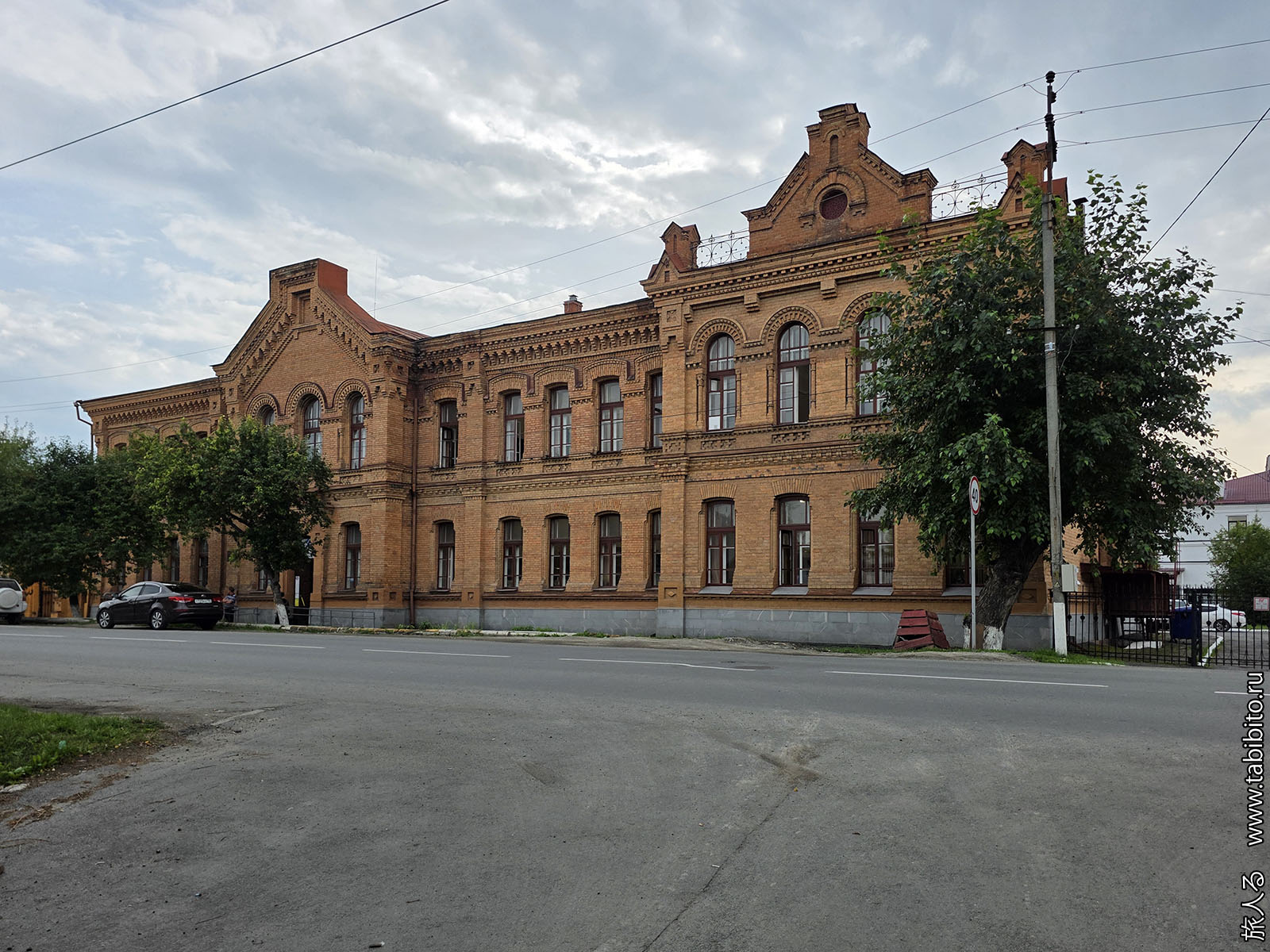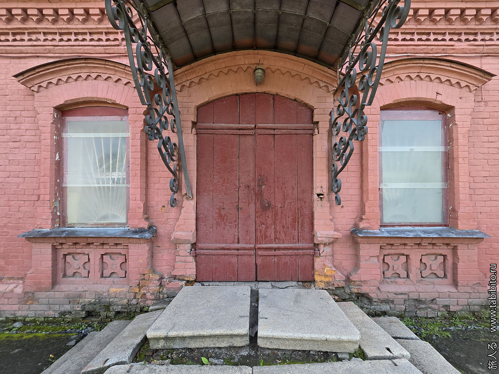 Здание бывшей женской гимназии (1882) на той же улице с симпатичными воротами.
