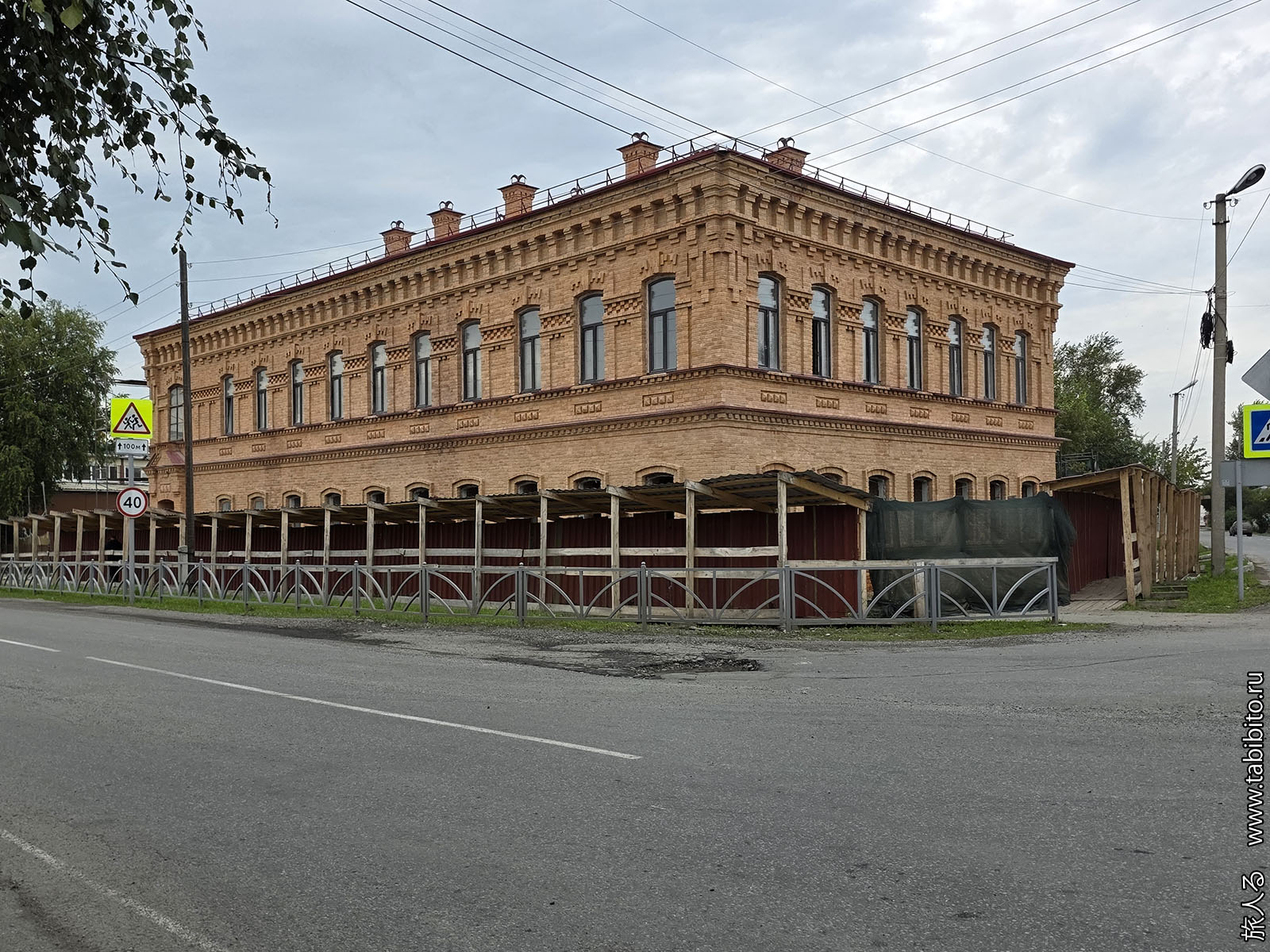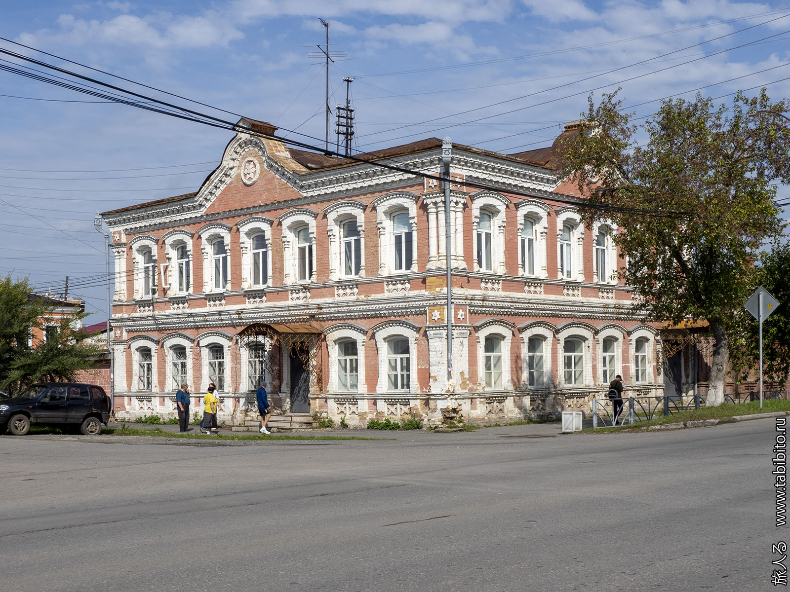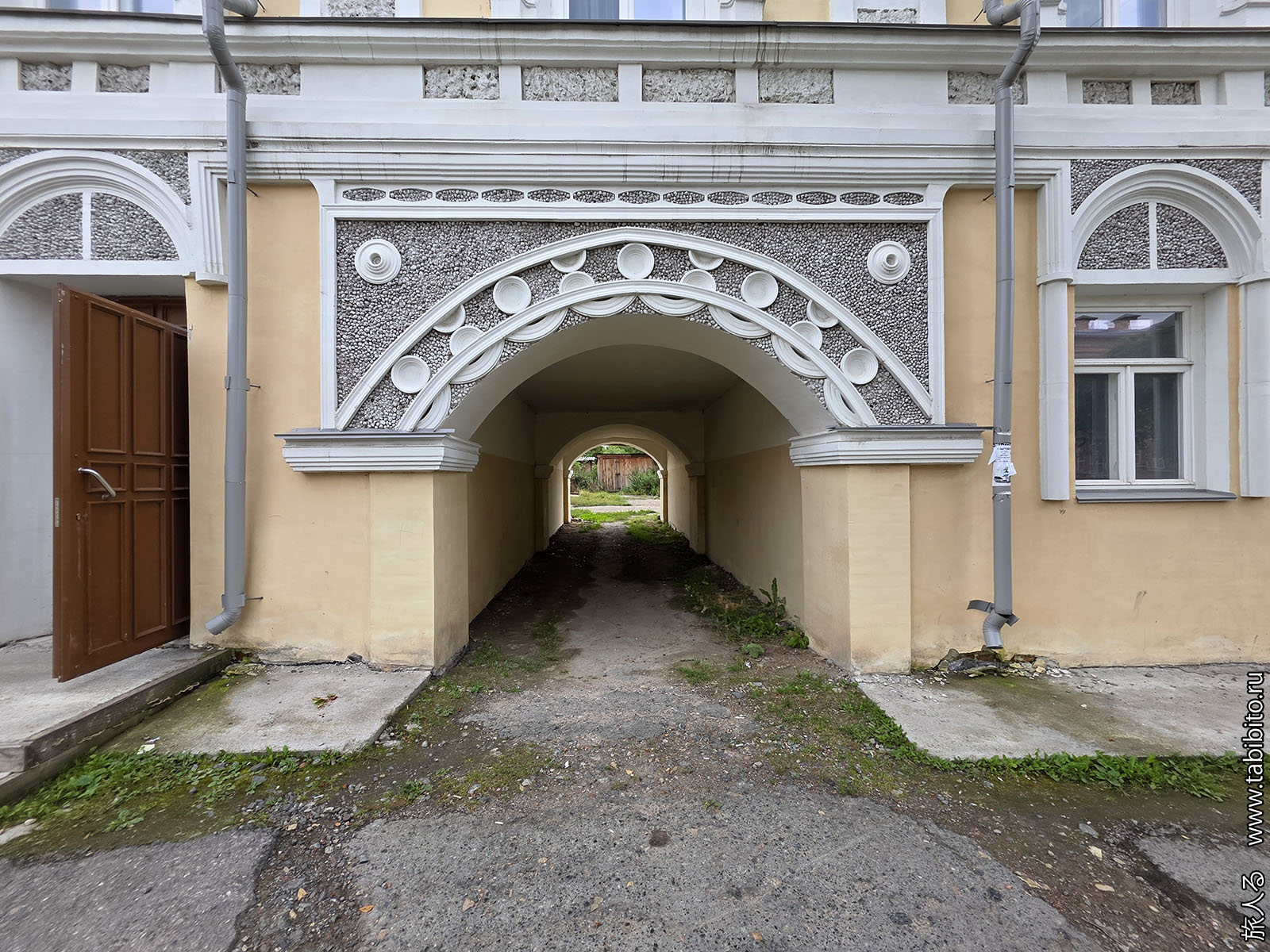 Дом купца Дунаева (1879) в начале Советской улицы с симпатичными арками.