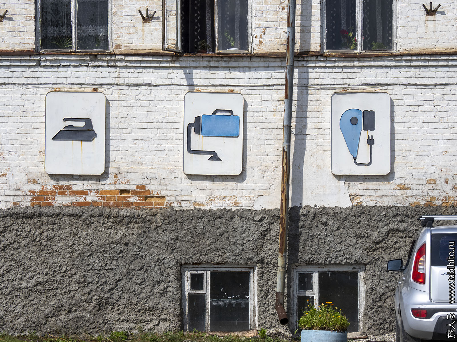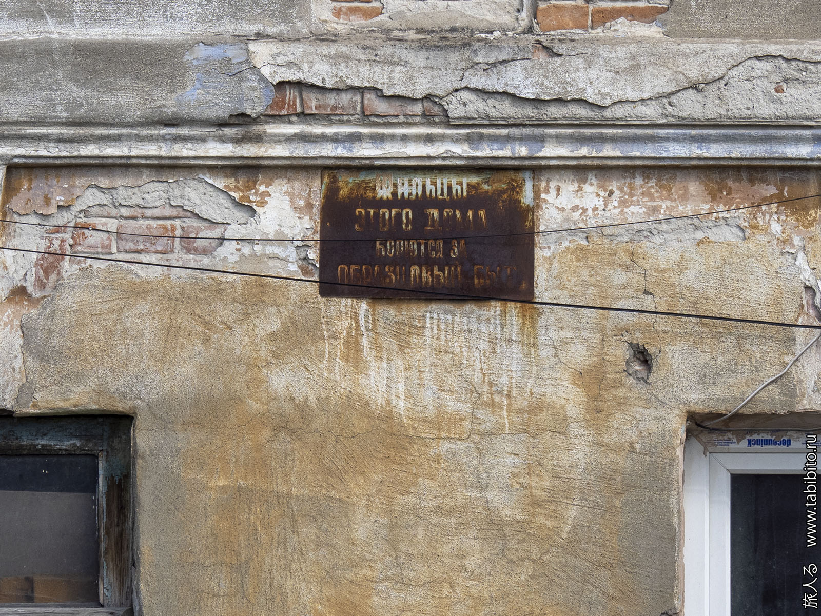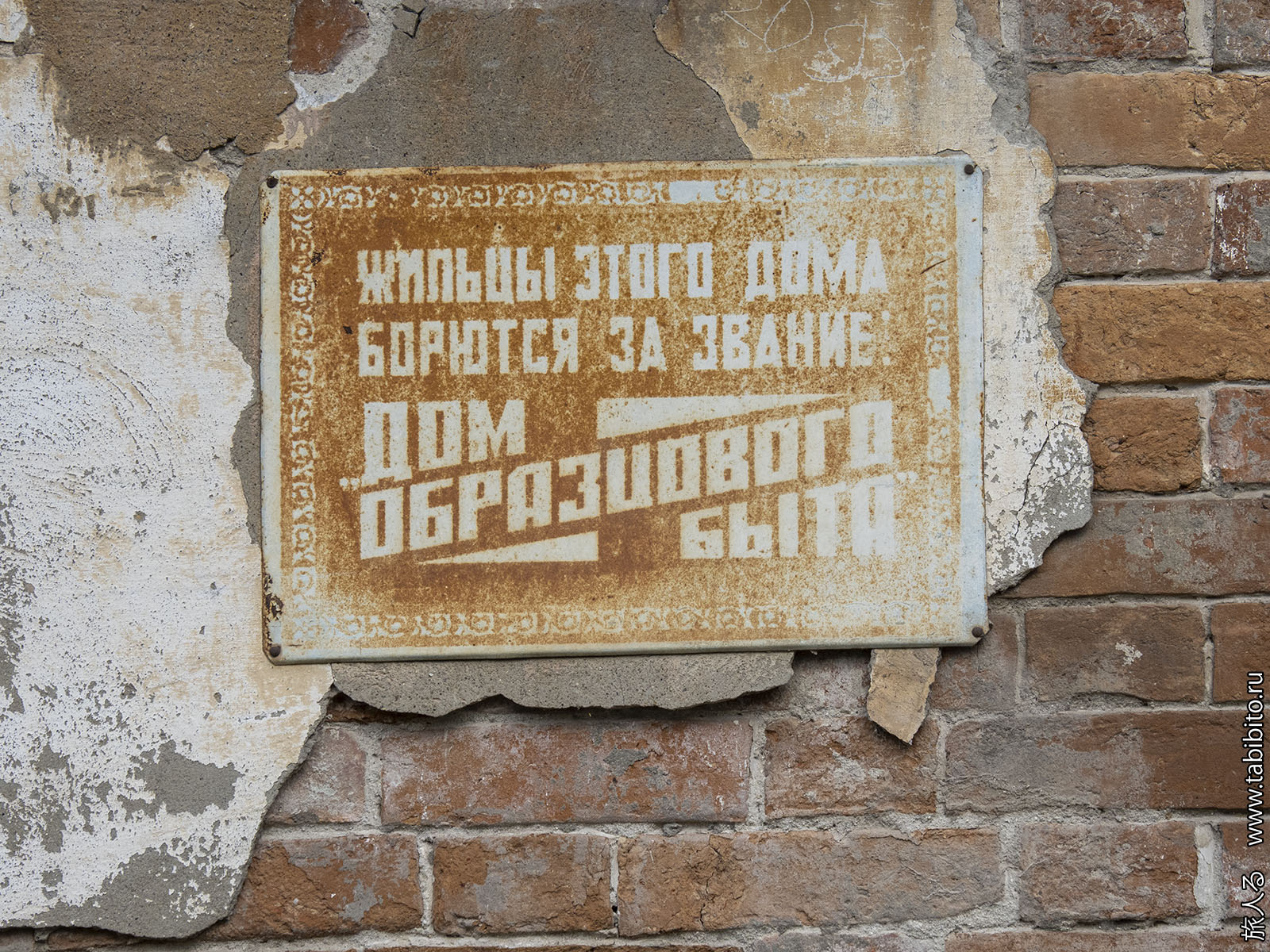 Много табличек: «Дом образцового быта» или «Жильцы этого дома борются за звание „Дом образцового быта“». К 2025 году бытование всех этих домов уже оставляет желать лучшего.
