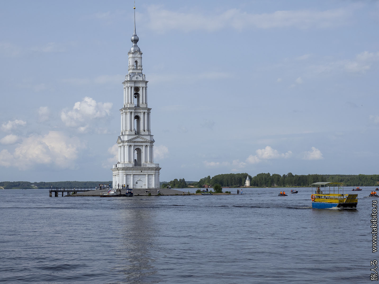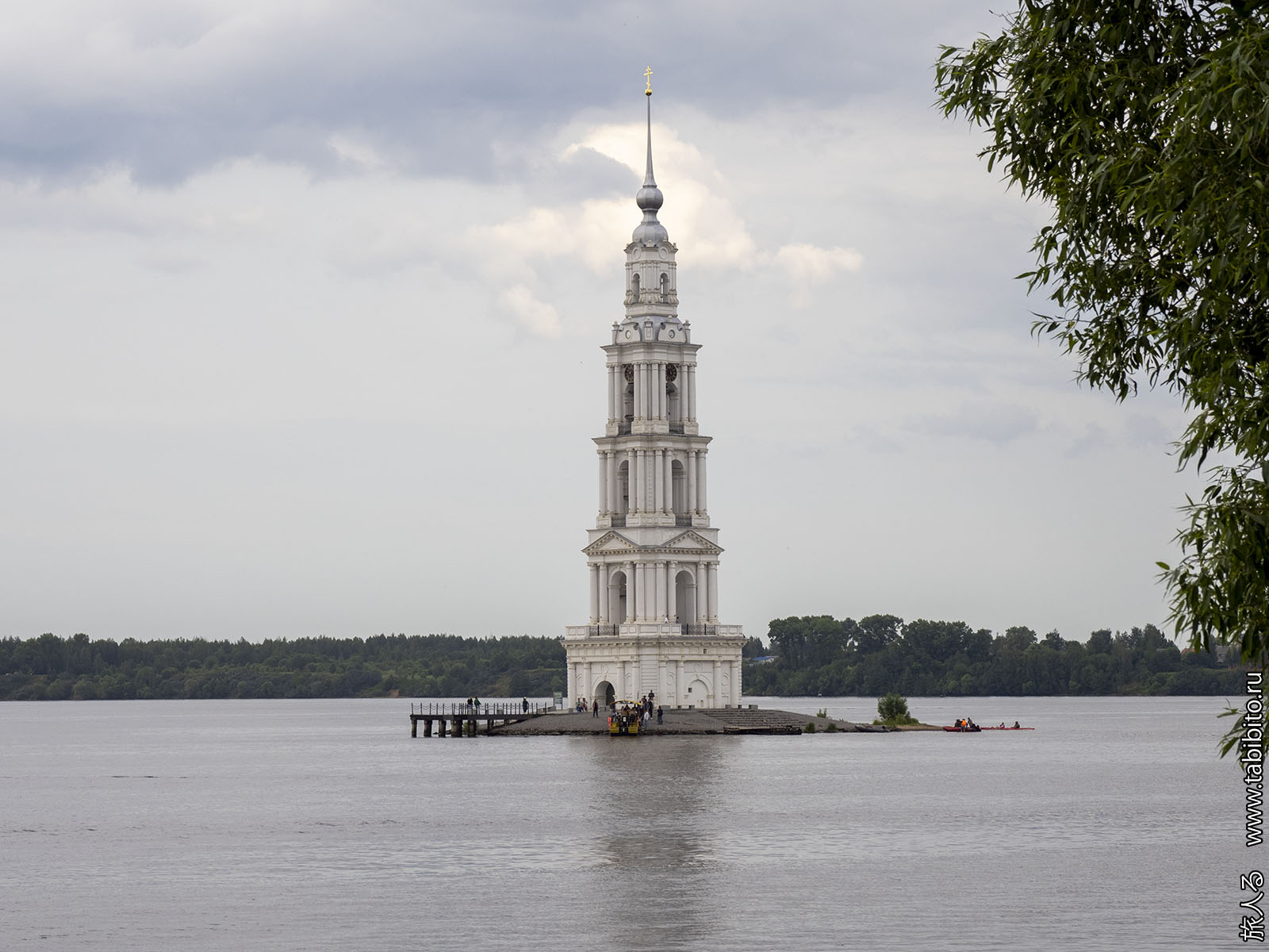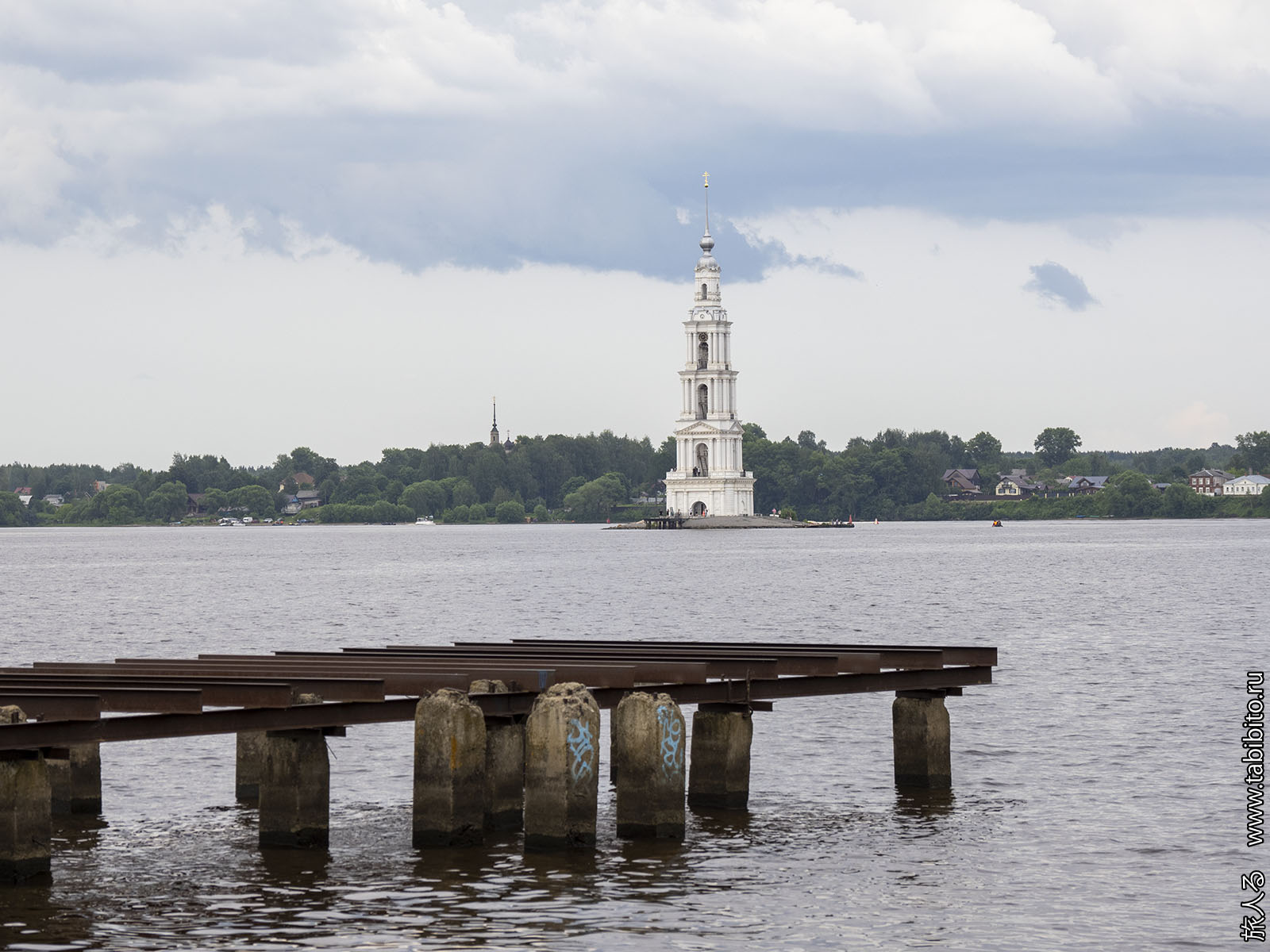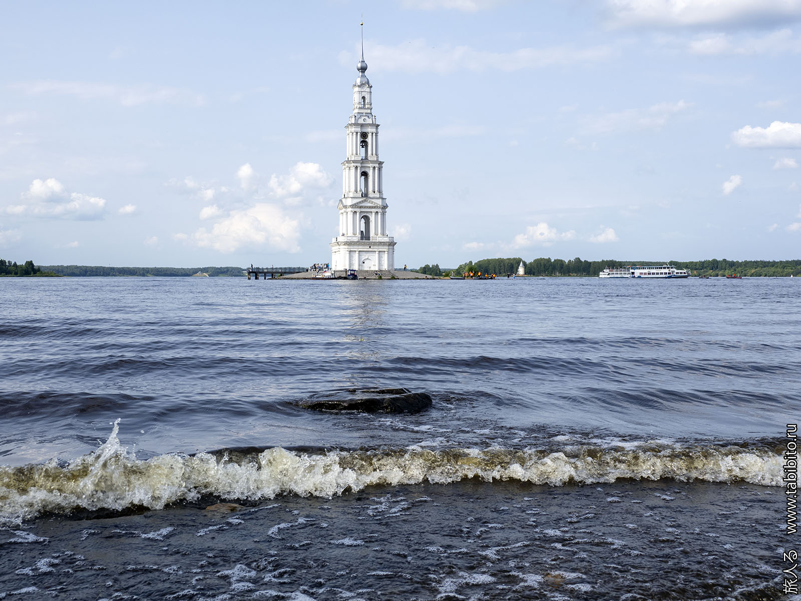 Еще раз взглянем на торчащую из воды колокольню и едем дальше.