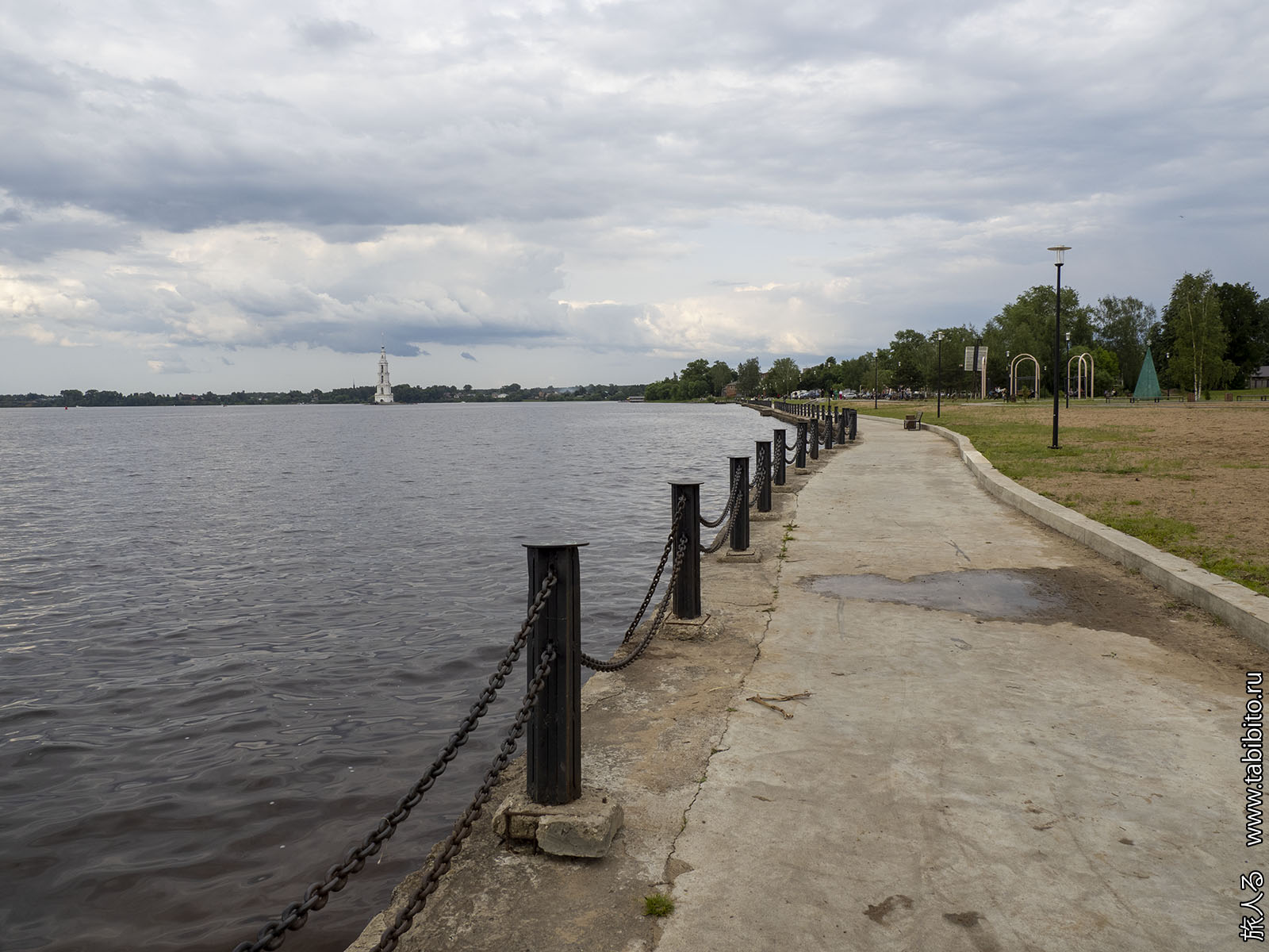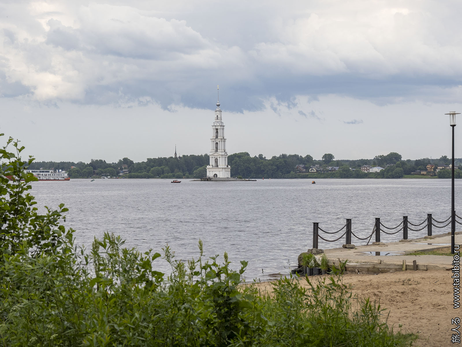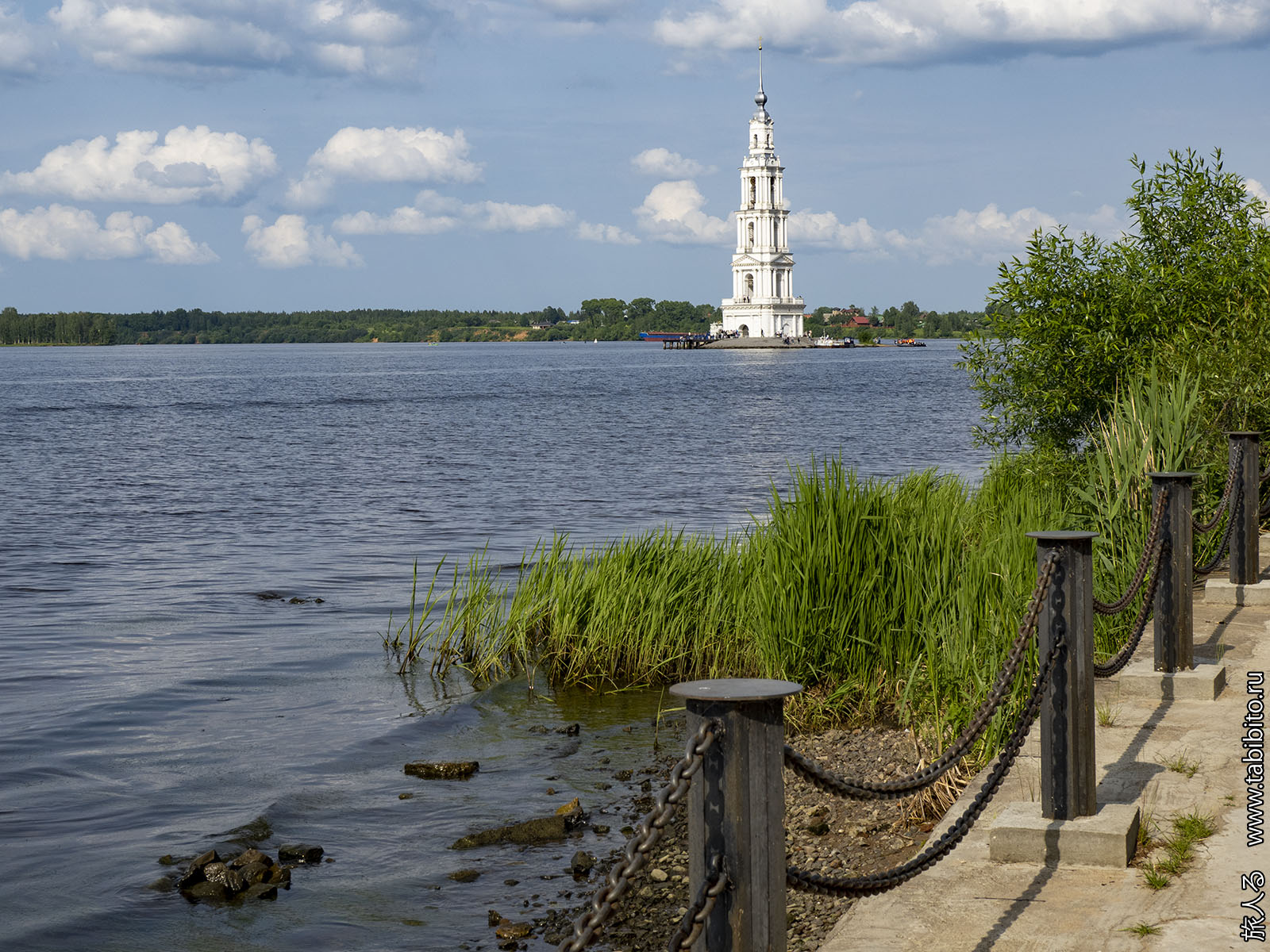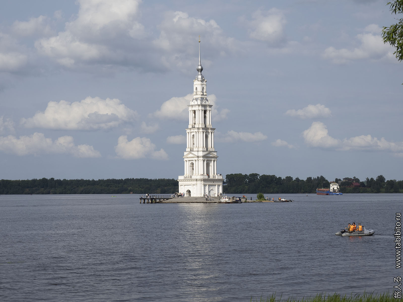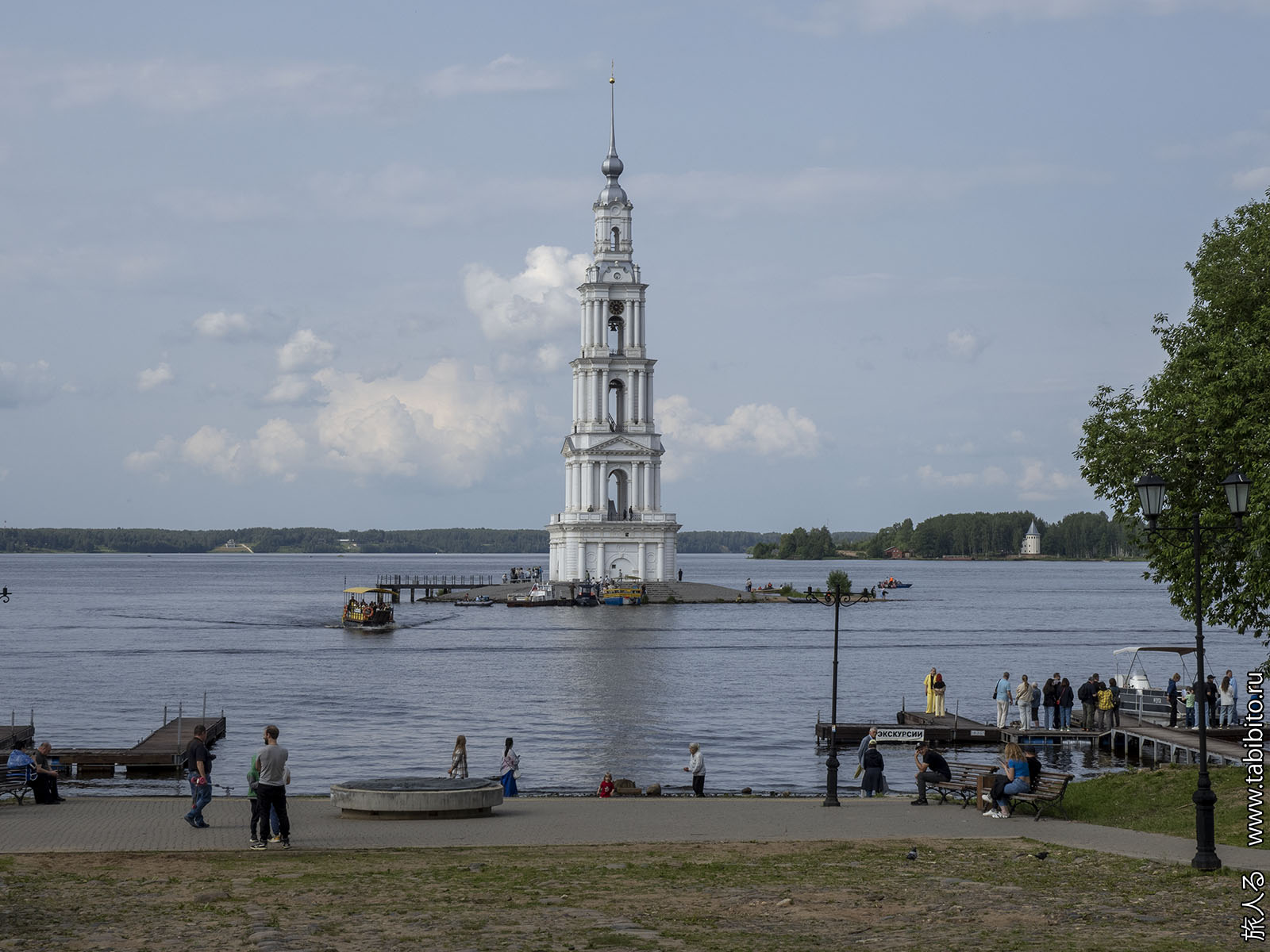 Еще раз взглянем на торчащую из воды колокольню и едем дальше.