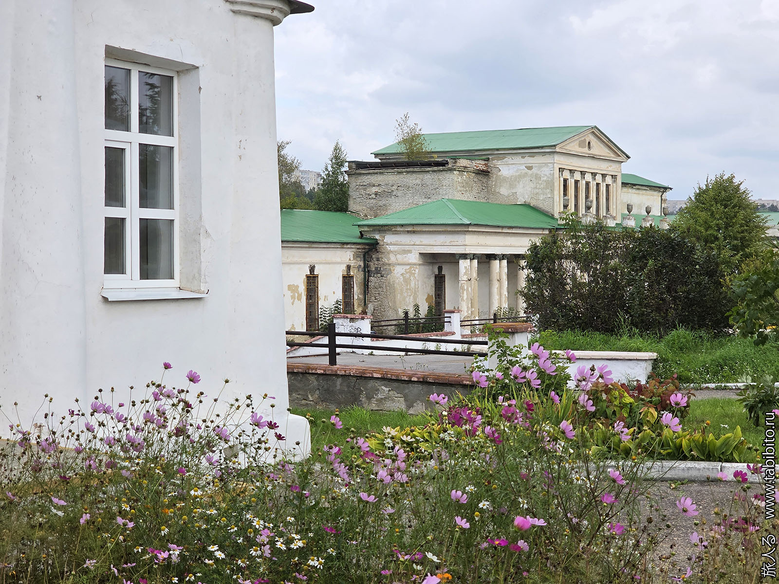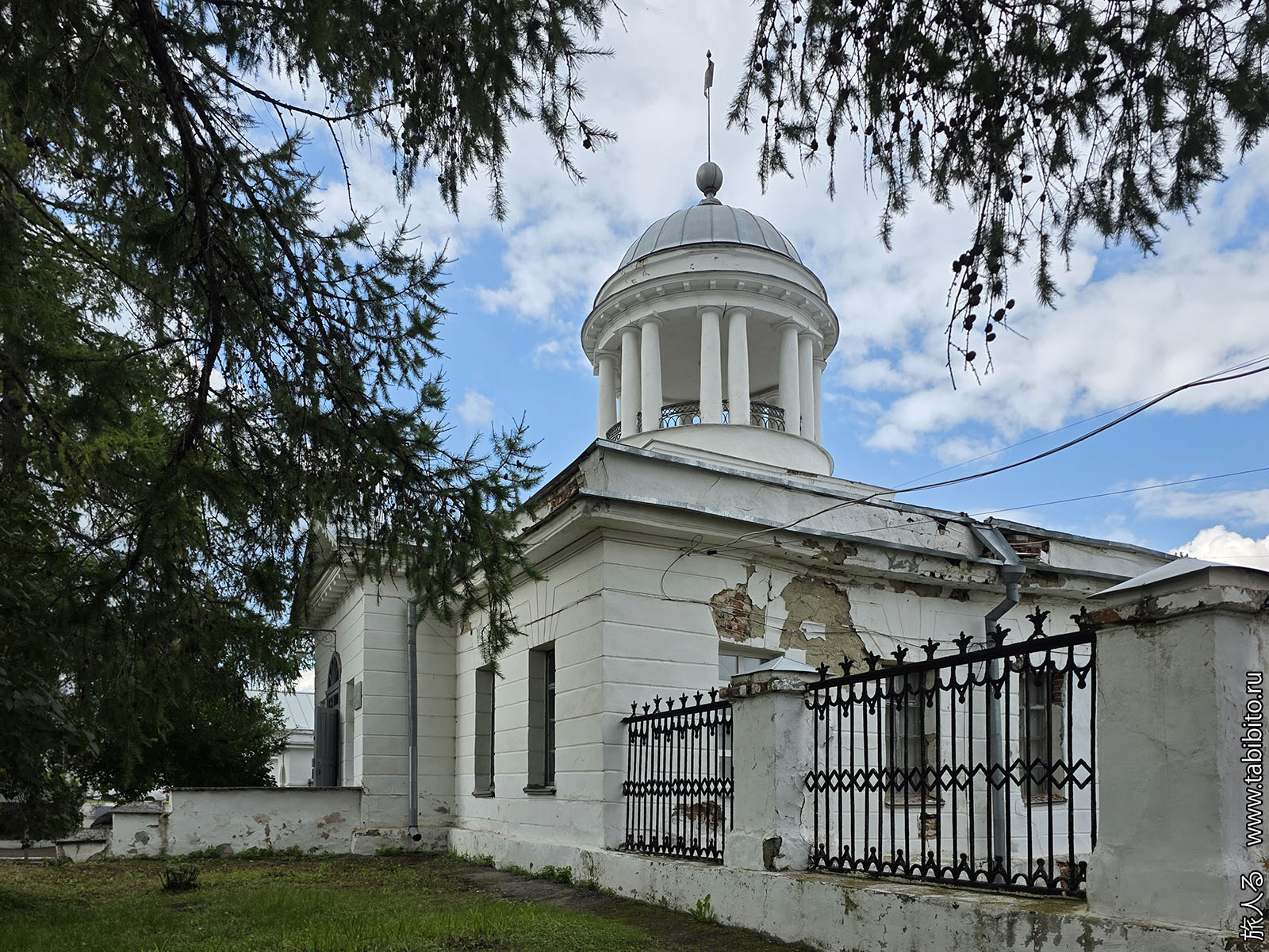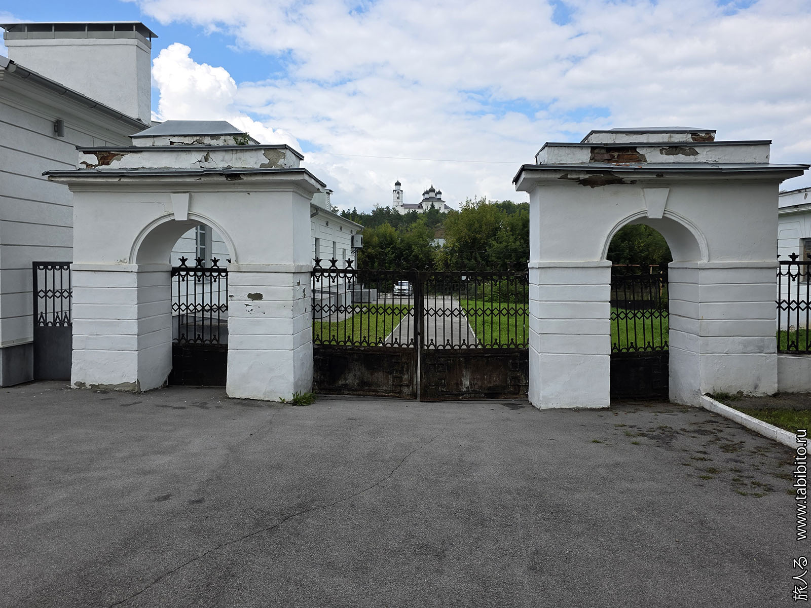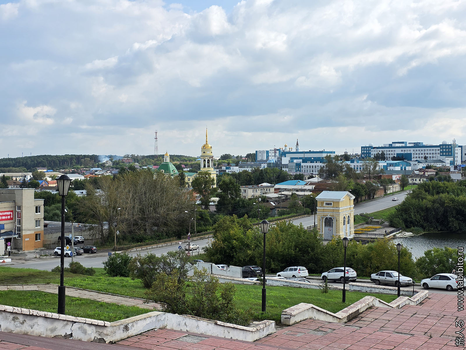 Из центра на горе виден храм Спасо-Преображенского монастыря (1861). Верхние ярусы колокольни и главки восстановлены, но в целом соответствуют тому, что было раньше.