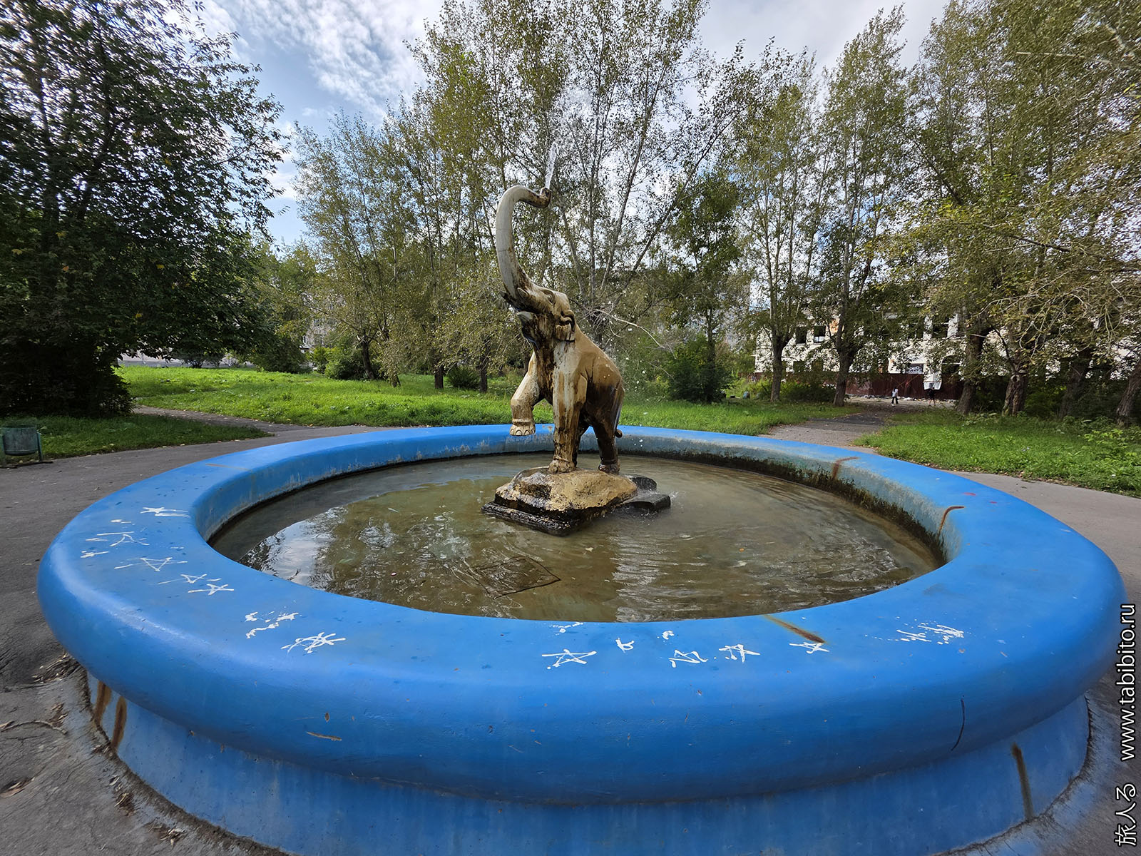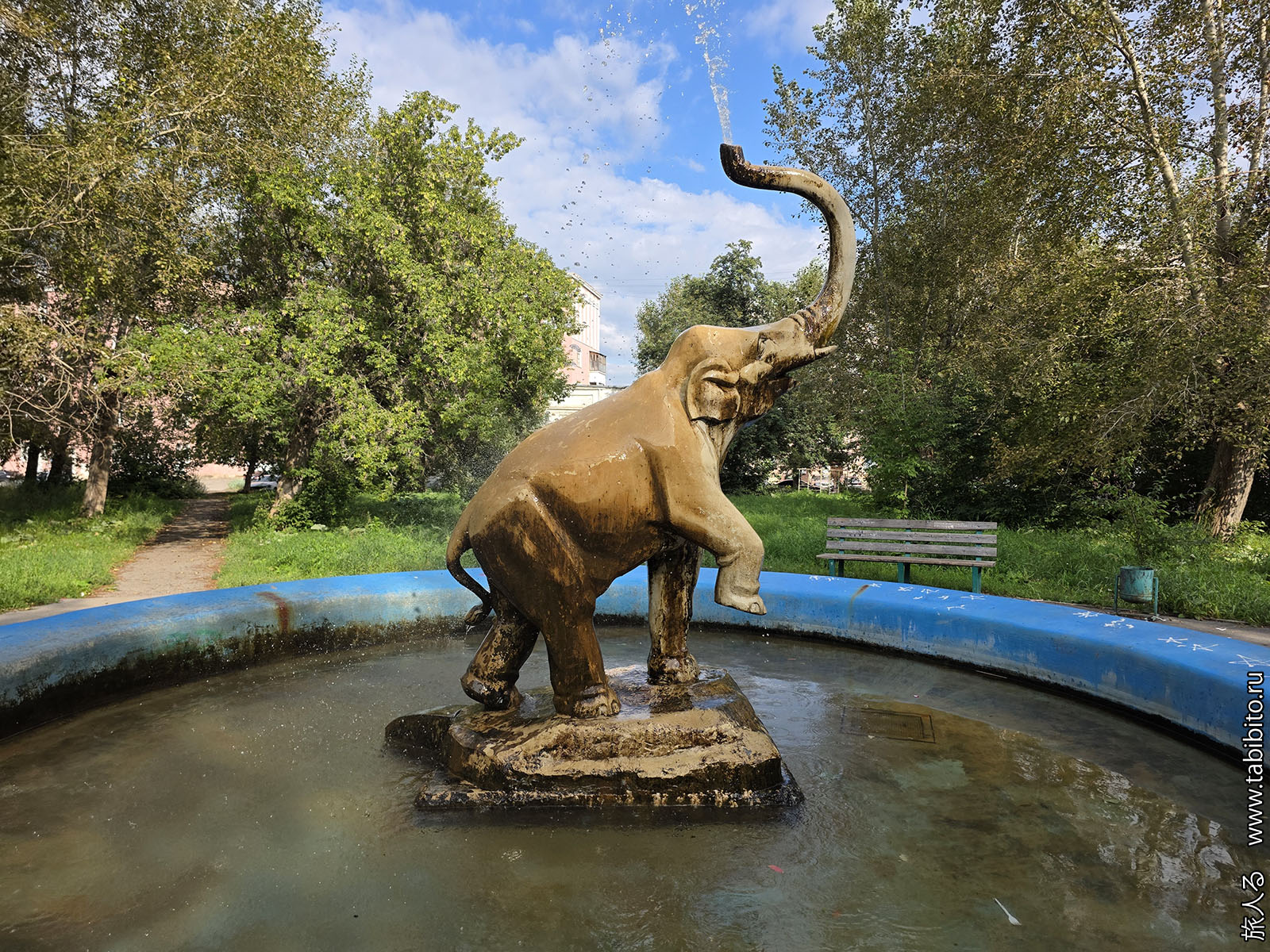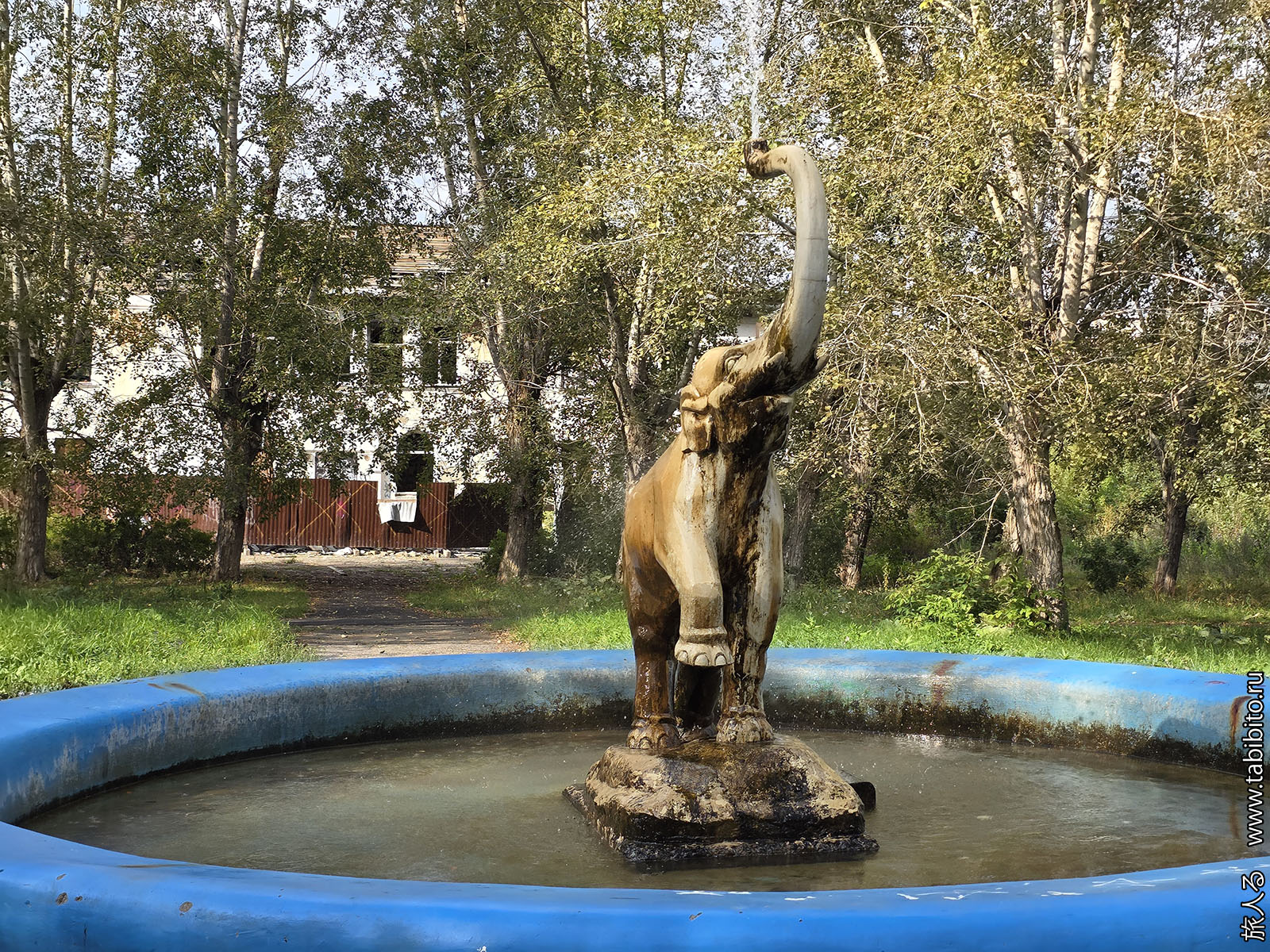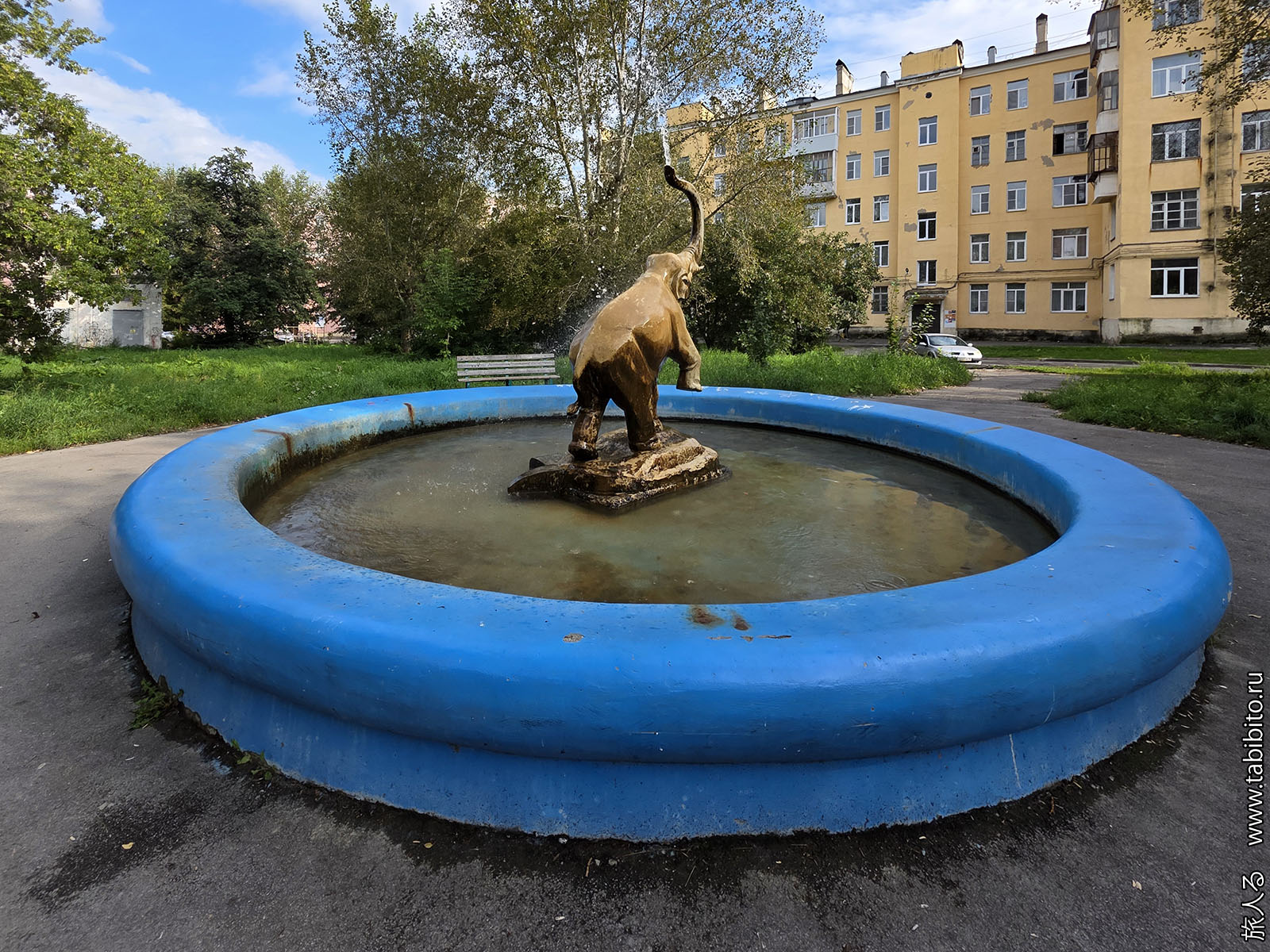 Во дворе дома 10 по улице Строителей был обнаружен чудесным образом сохранившийся и даже работающий фонтан в виде слона.