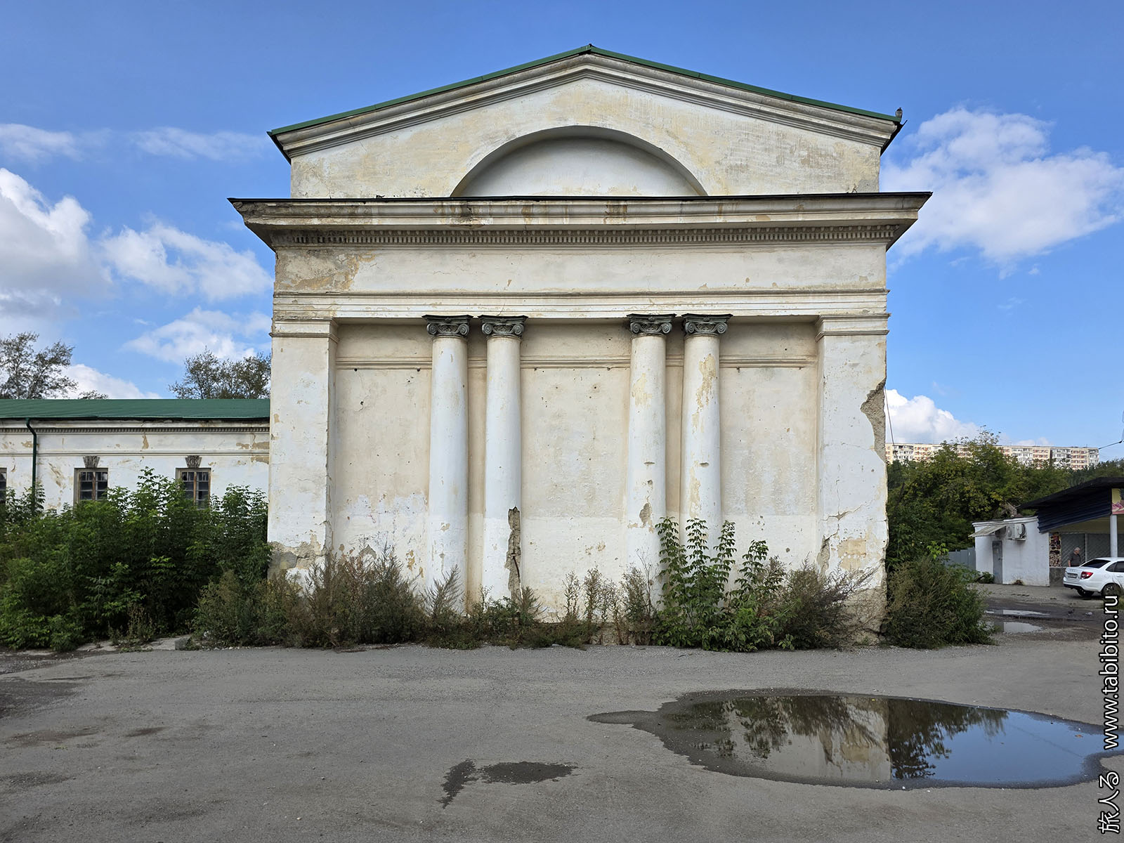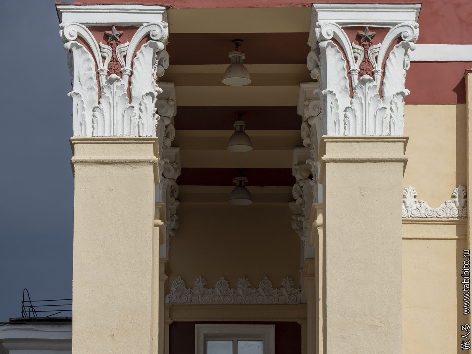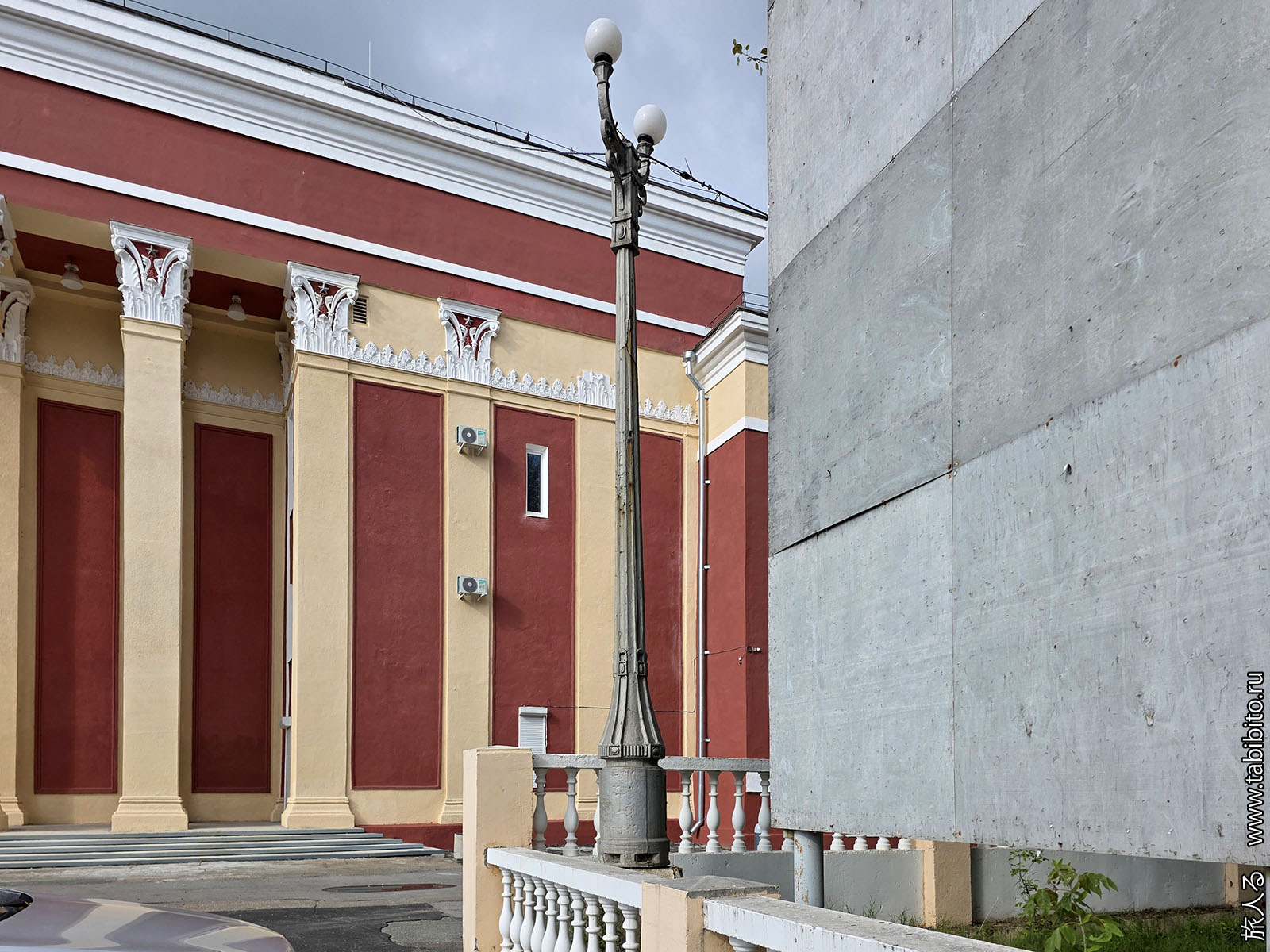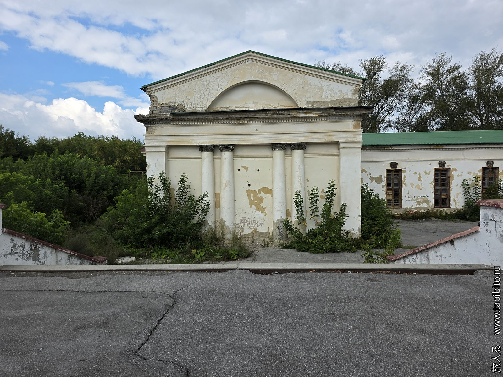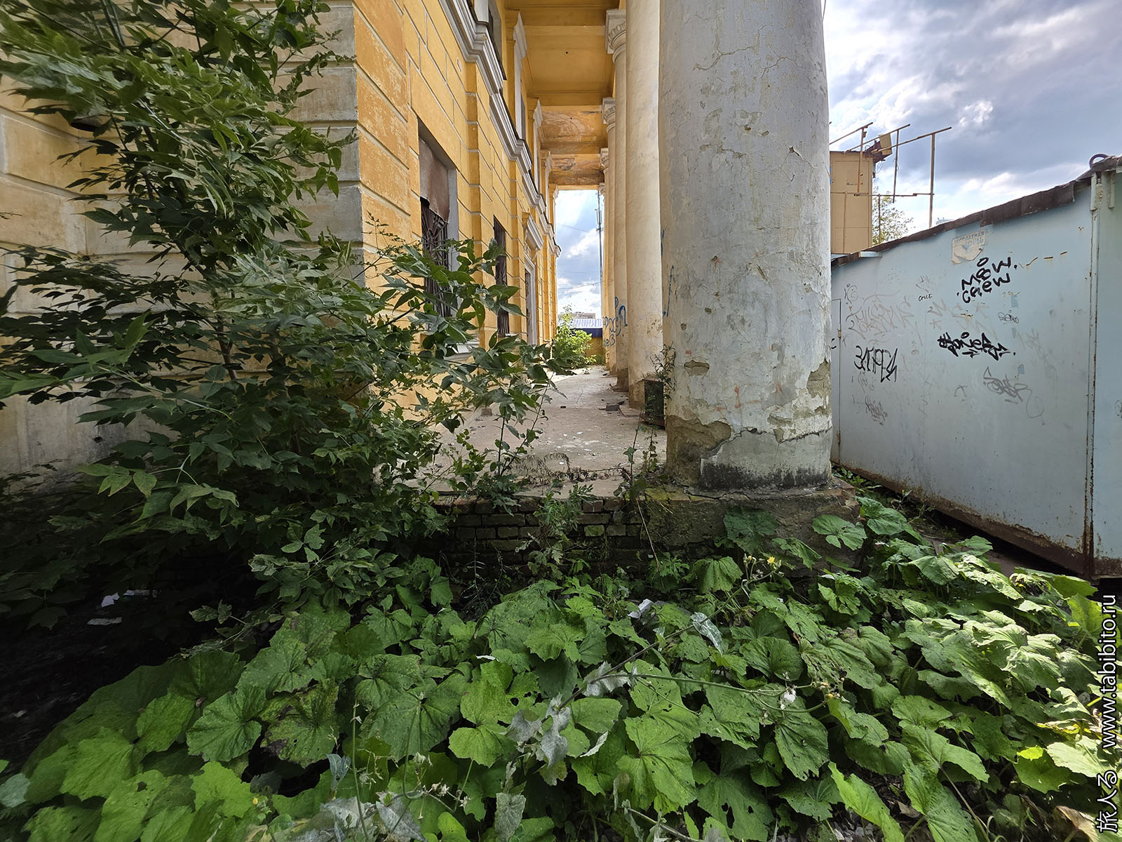 Во-вторых — помпезное здание складов. До начала 2000-х годов внутри работал драмтеатр, сейчас они пустуют.