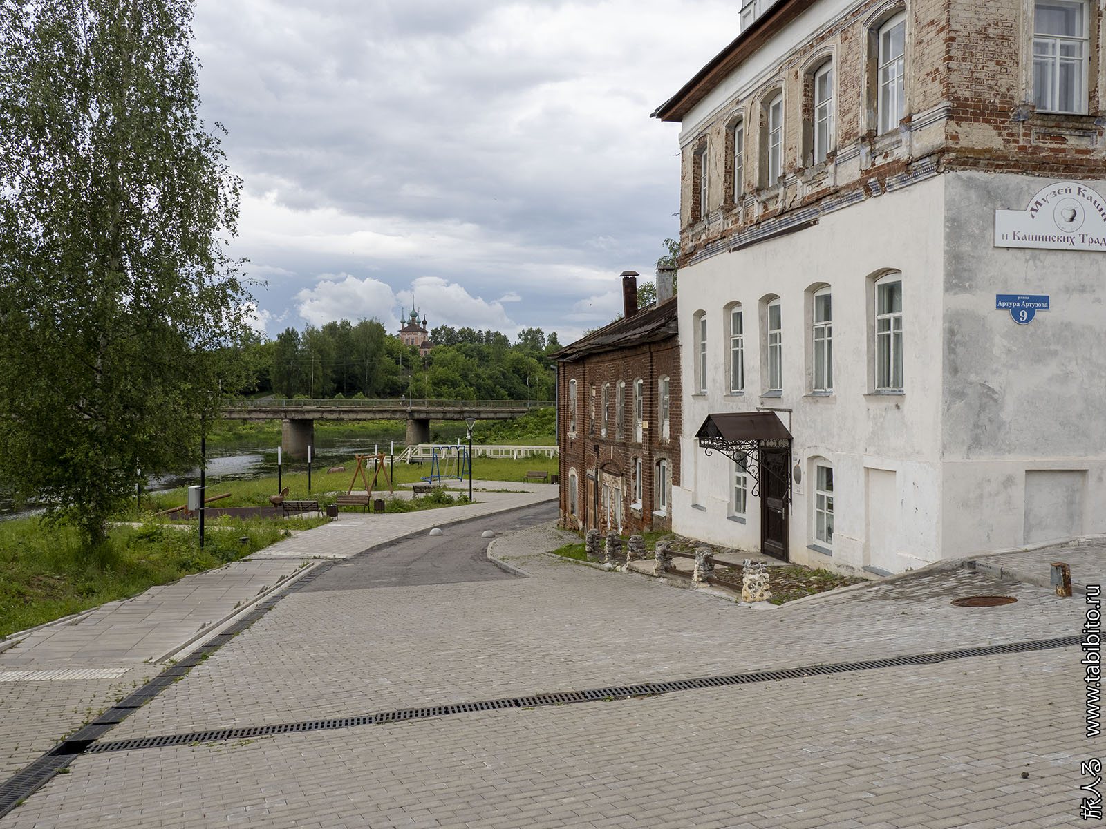 В 2022 г. за 50 миллионов рублей в Кашине произошло благоустройство небольшого участка берега реки Кашинки и Пролетарской площади. Спустя три года благоустройство успело устать, газон на берегу — вернуться к первобытному состоянию, а деревянные объекты — развандалиться.