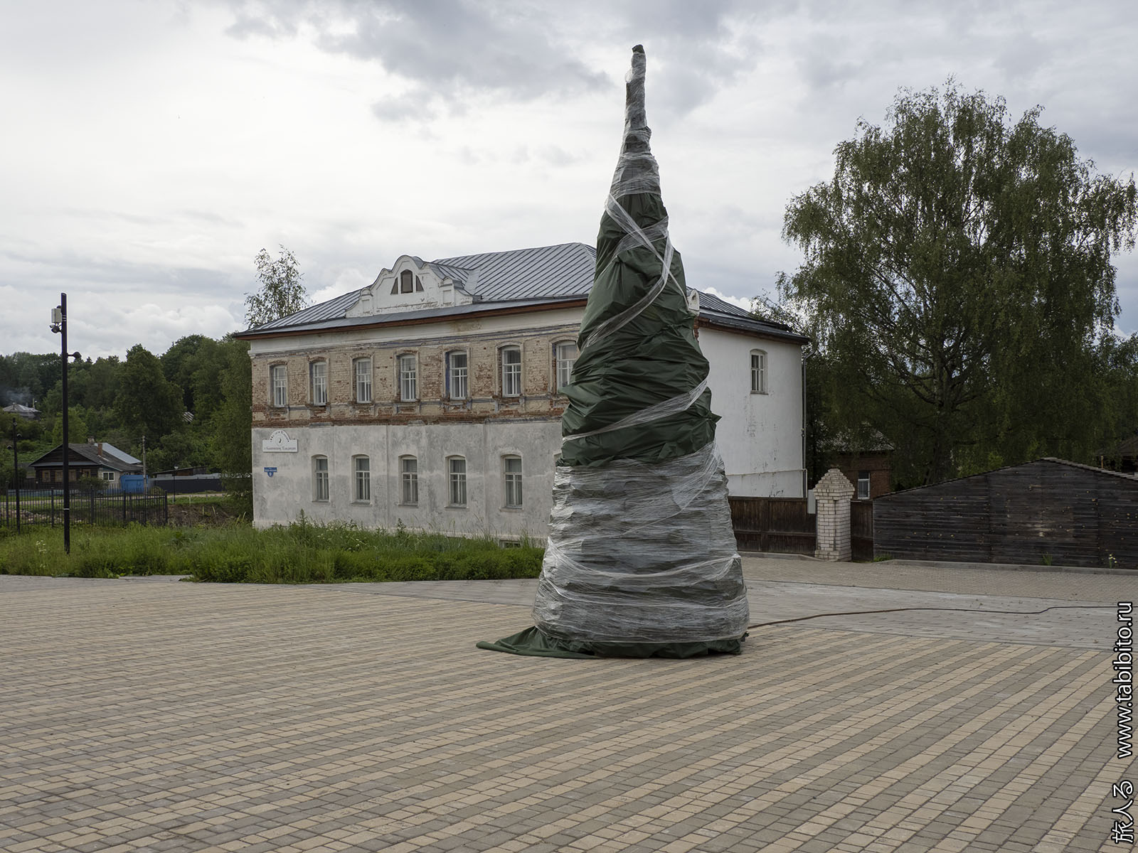 Елку на Пролетарской площади на лето прячут в пленку. Не убирать же ее, в самом-то деле.