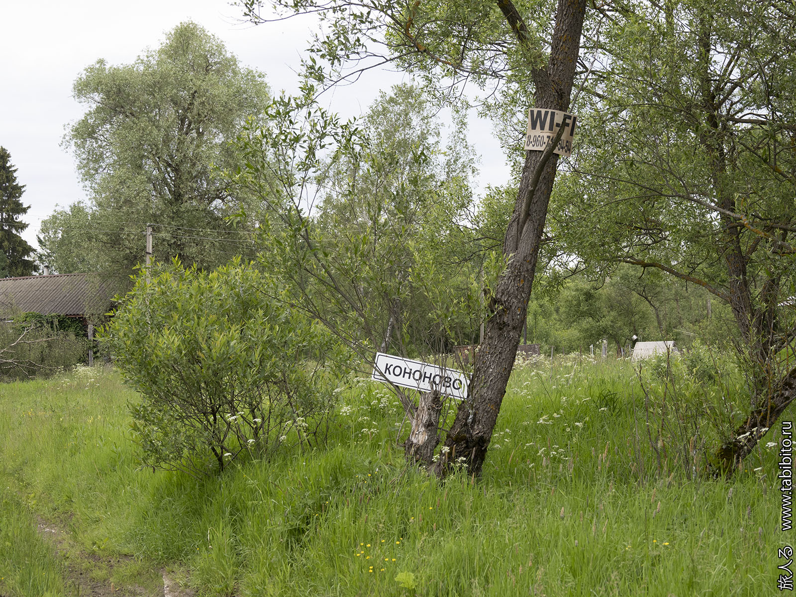 Деревня в Кашинском районе Тверской области. Сотовая связь здесь ловит неуверенно. А еще украли столбик для крепления названия населенного пункта.