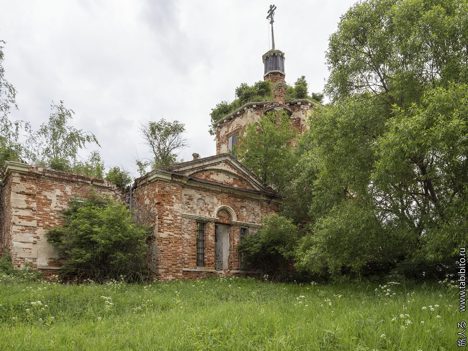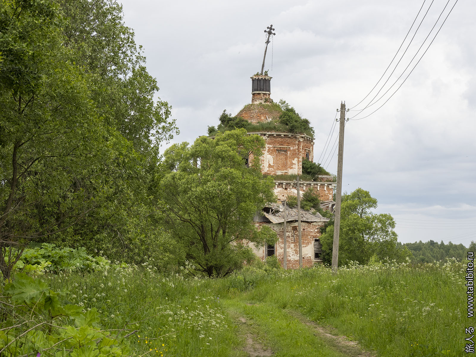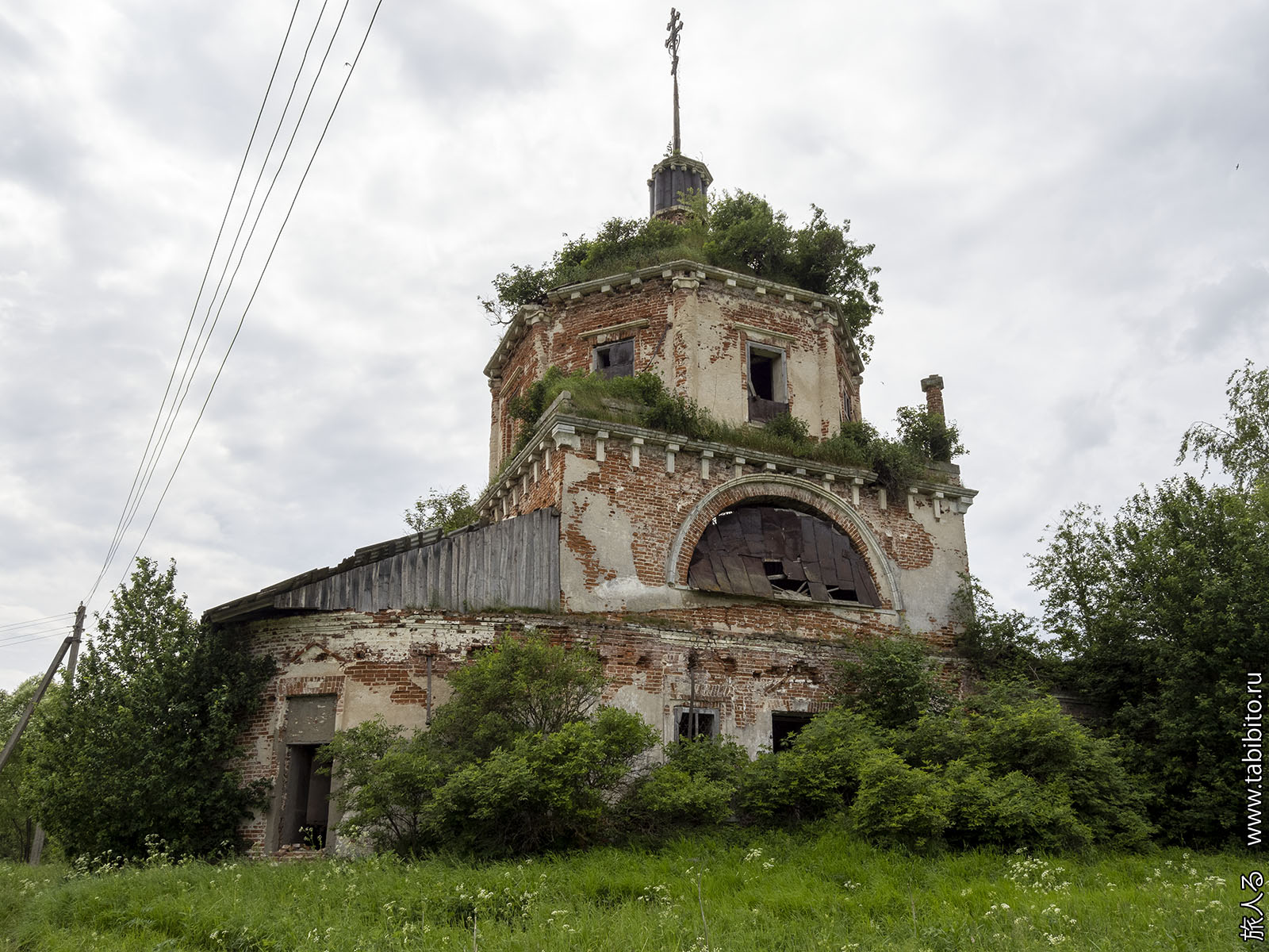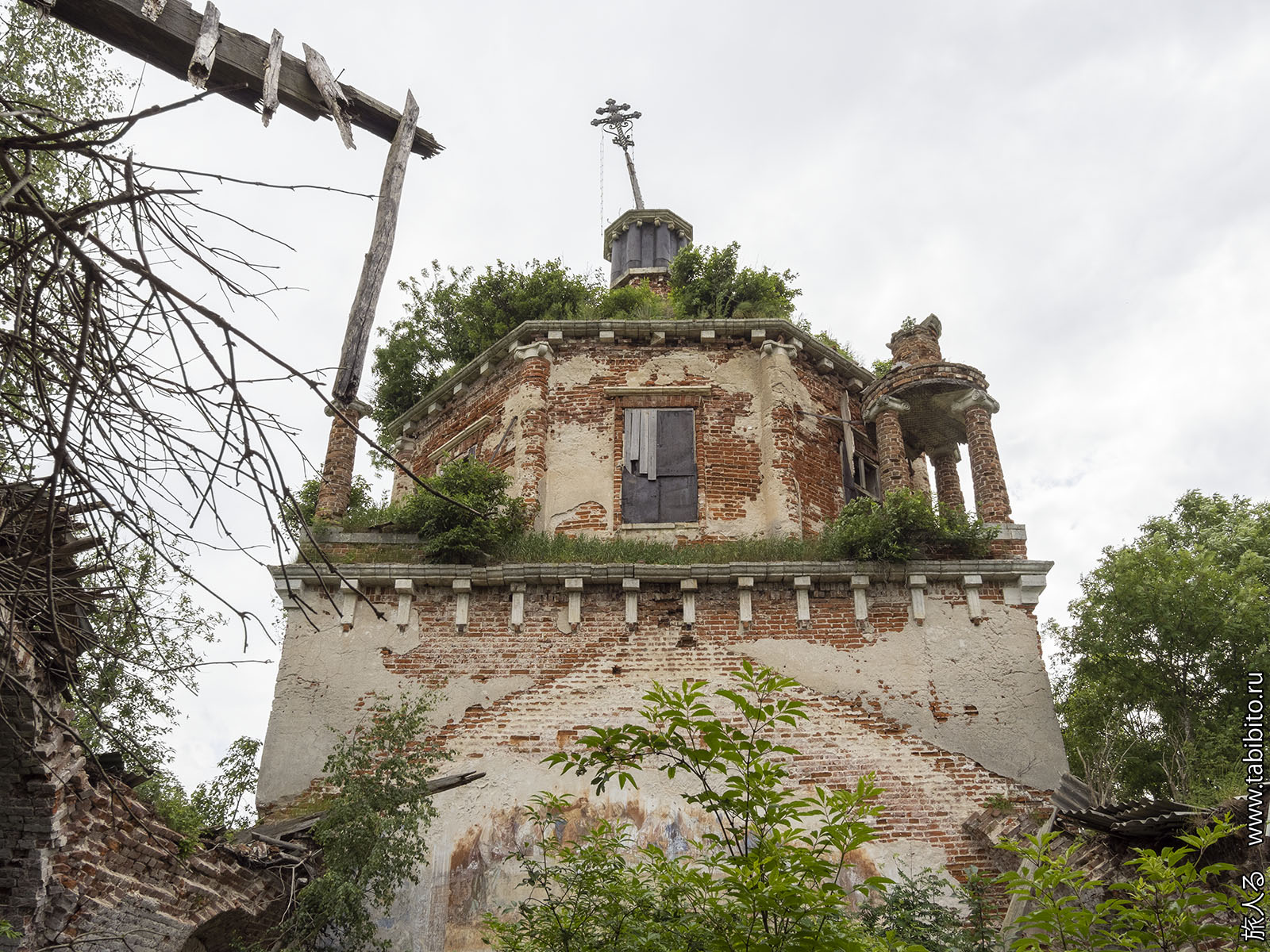 Колокольня снесена, остался только нижний ярус. В трапезную тоже лучше не соваться — крыша обрушилась несколько лет назад, можно ноги переломать.