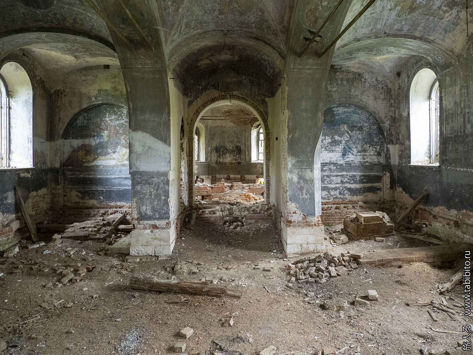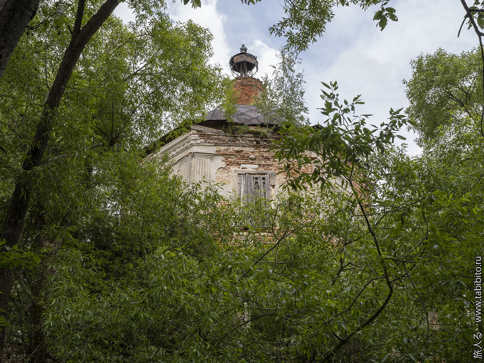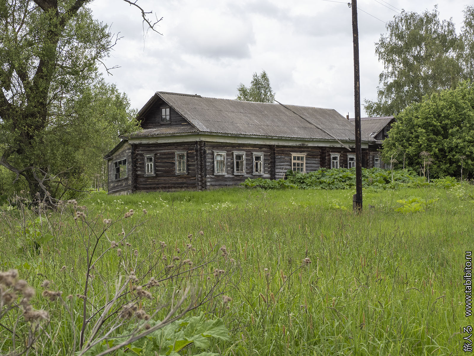 В целом деревня вполне себе обитаема, но часть ближе к храму людьми покинута.