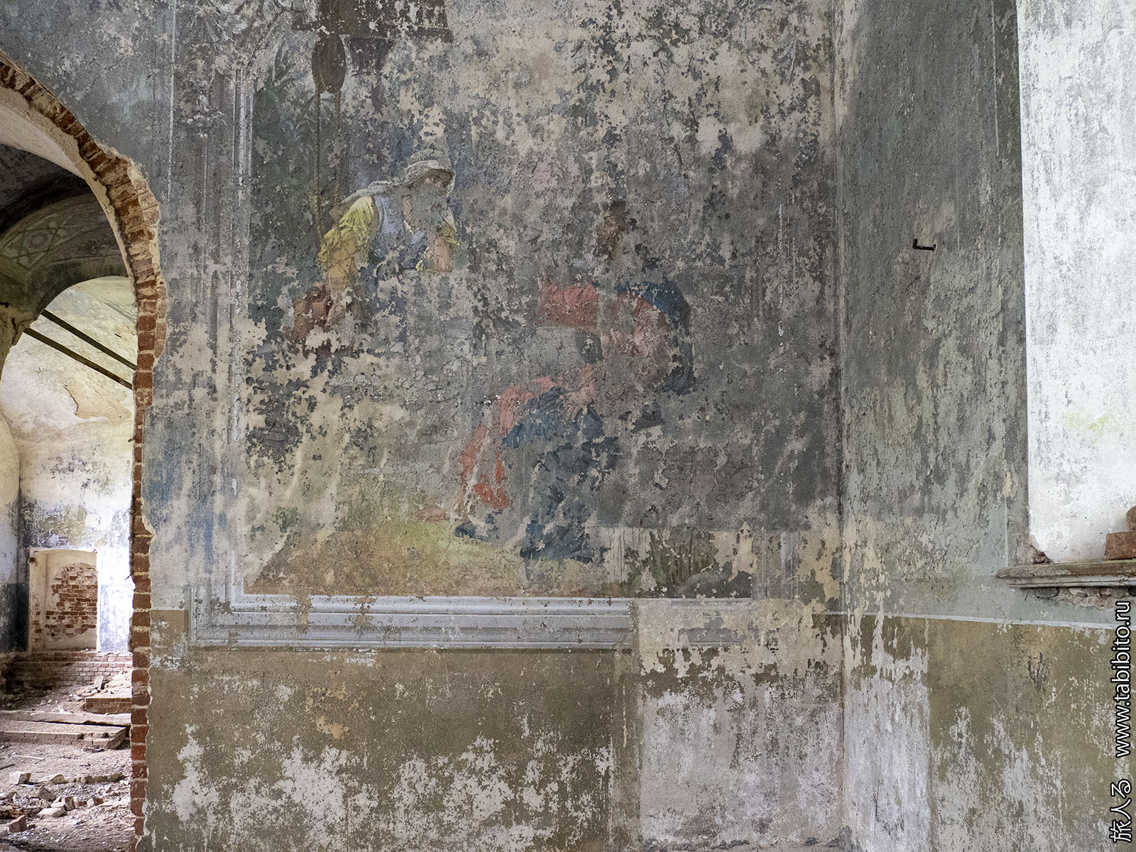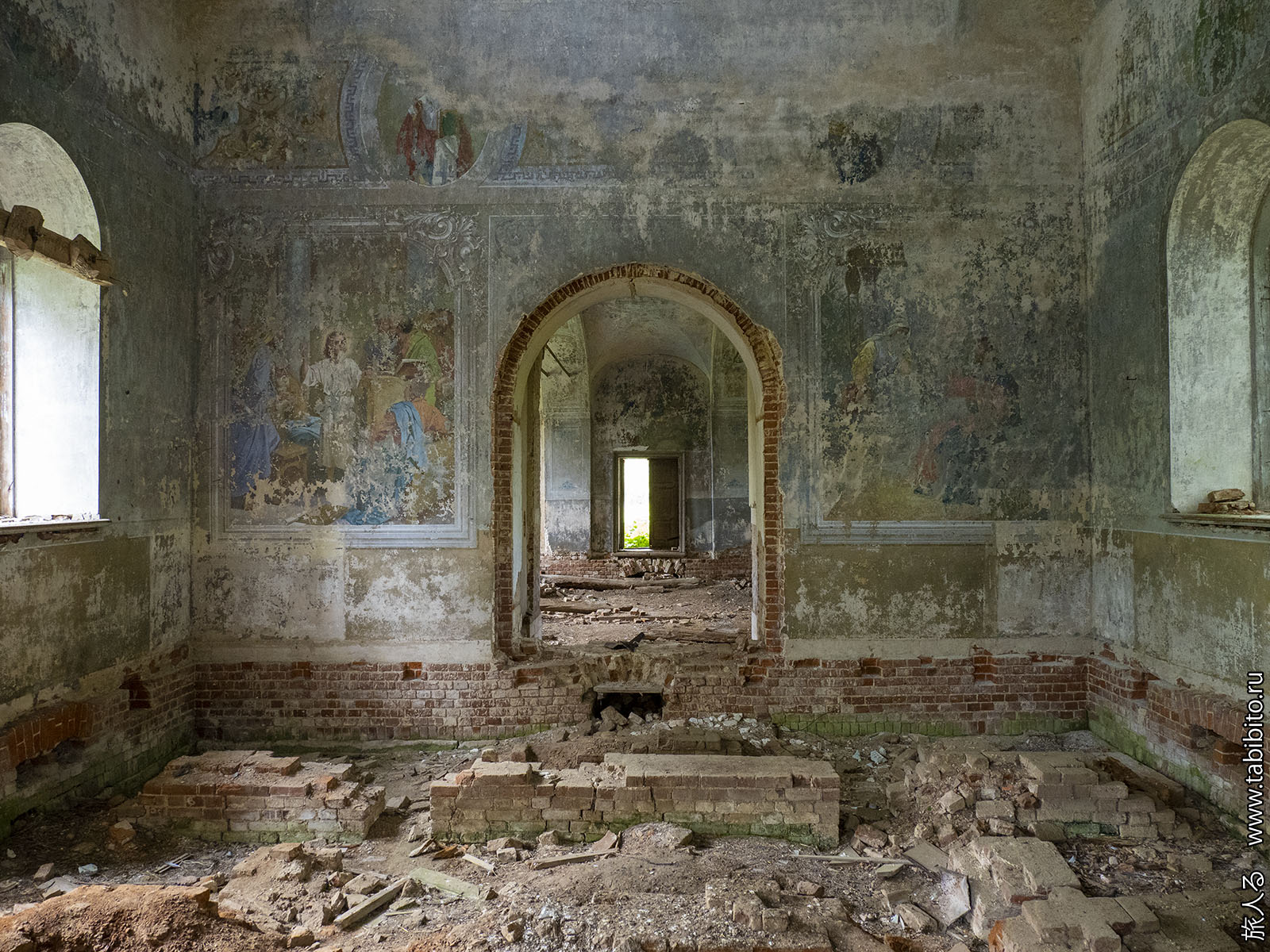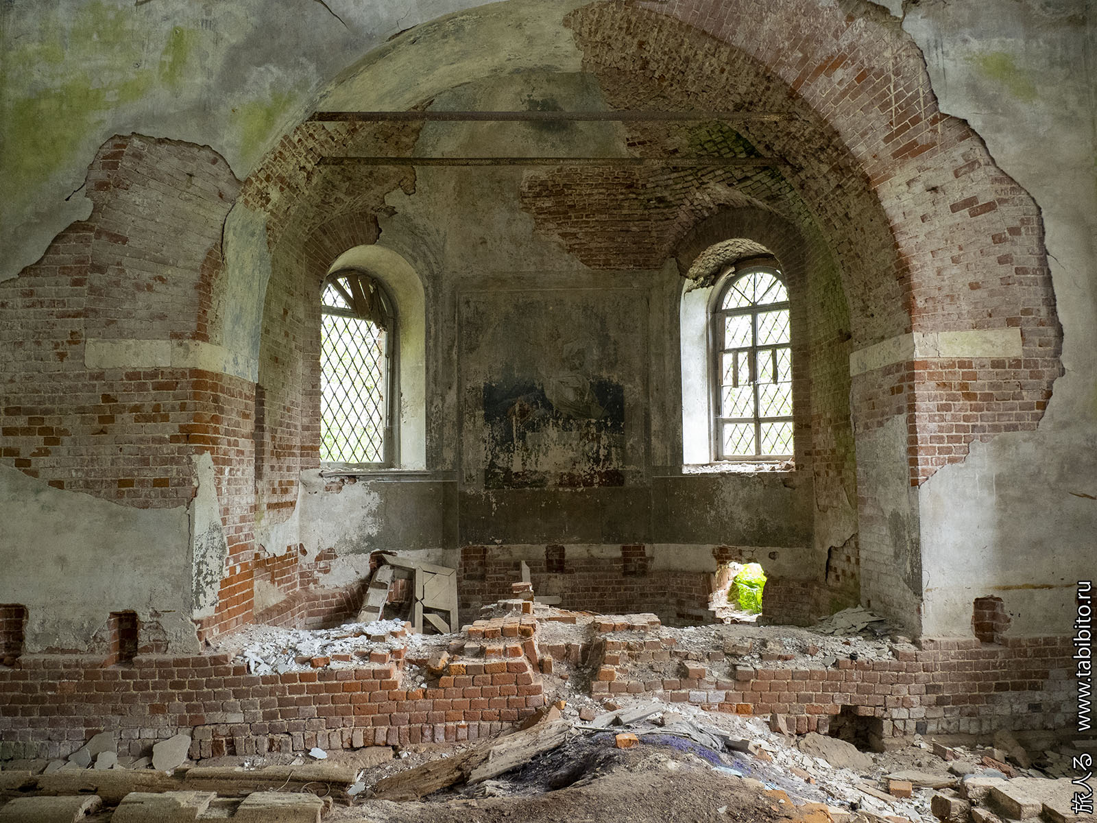 В целом деревня вполне себе обитаема, но часть ближе к храму людьми покинута.