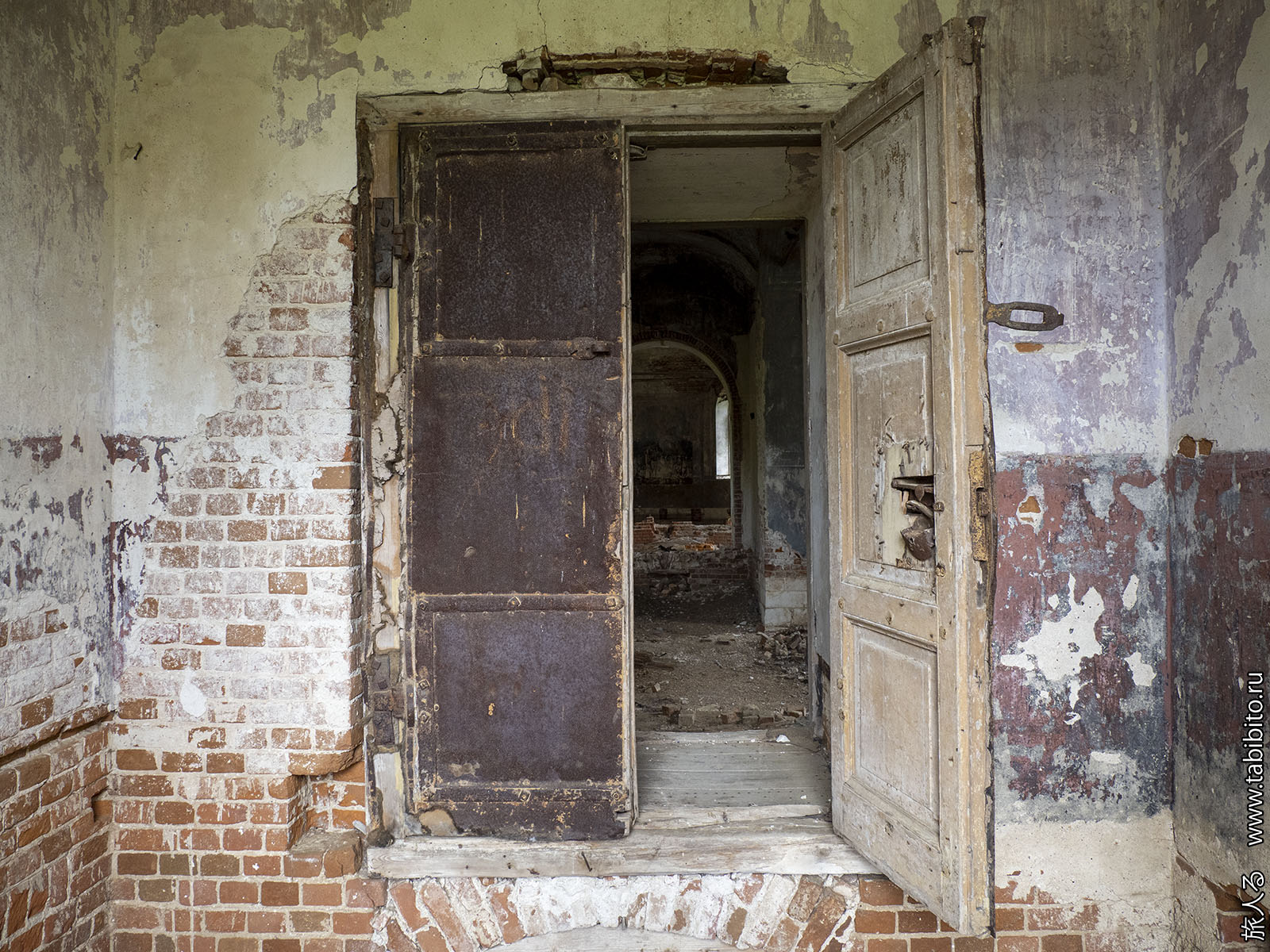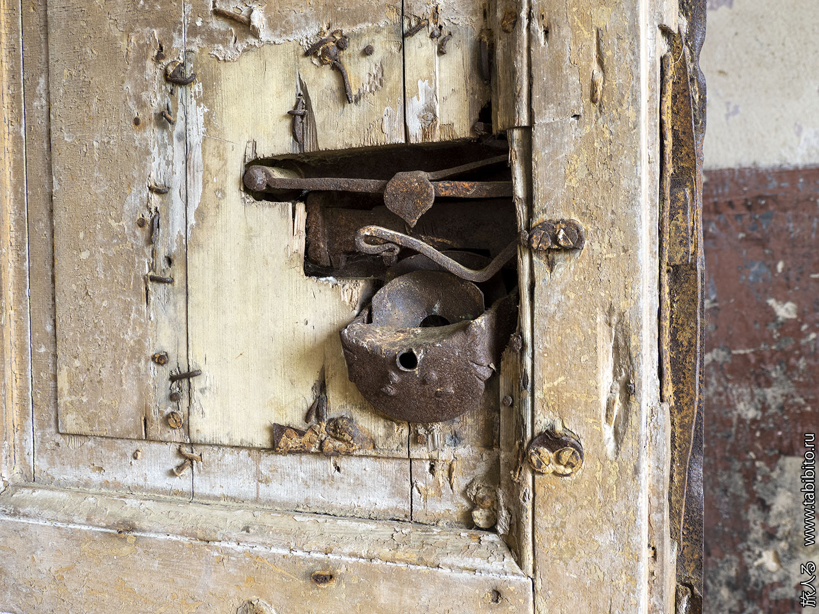 Сохранился старый механизм замка.