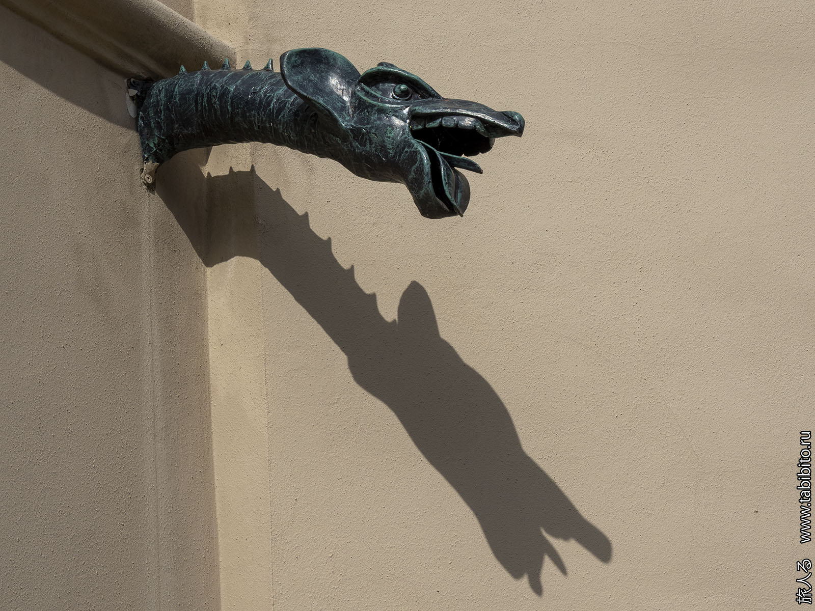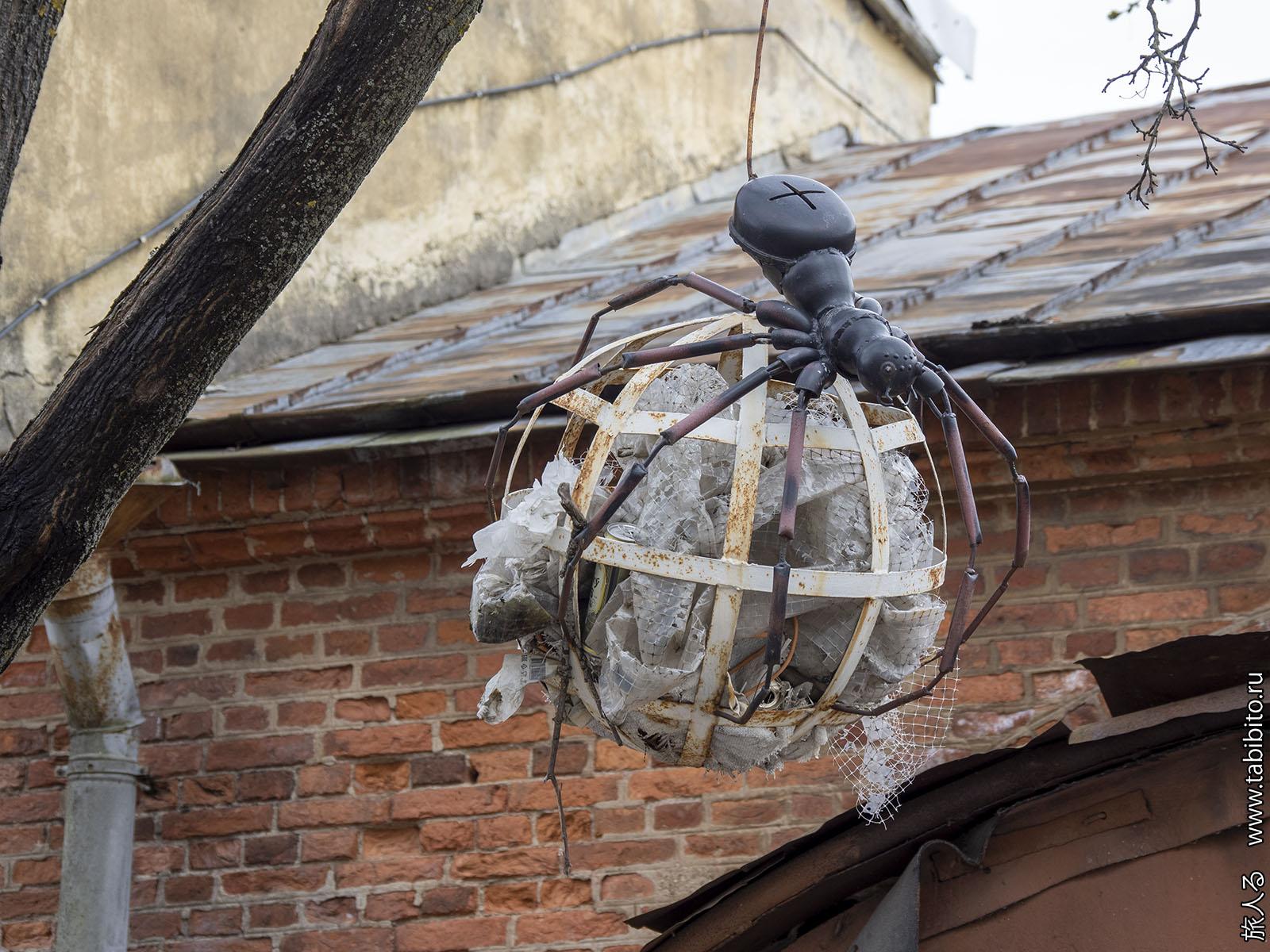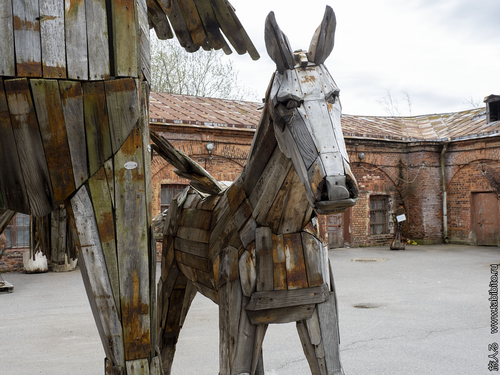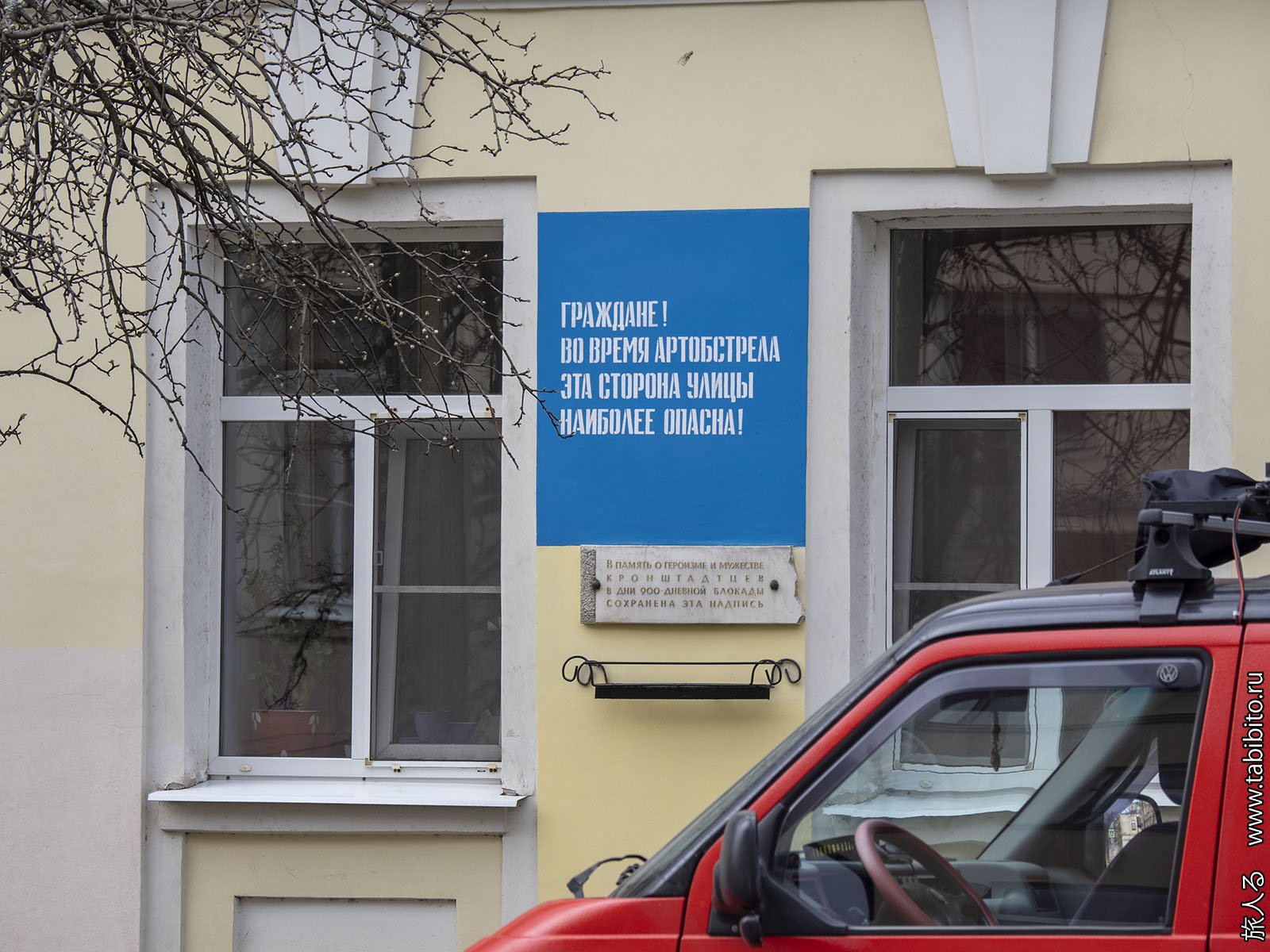 Воссозданная надпись про опасную сторону на Посадской улице.