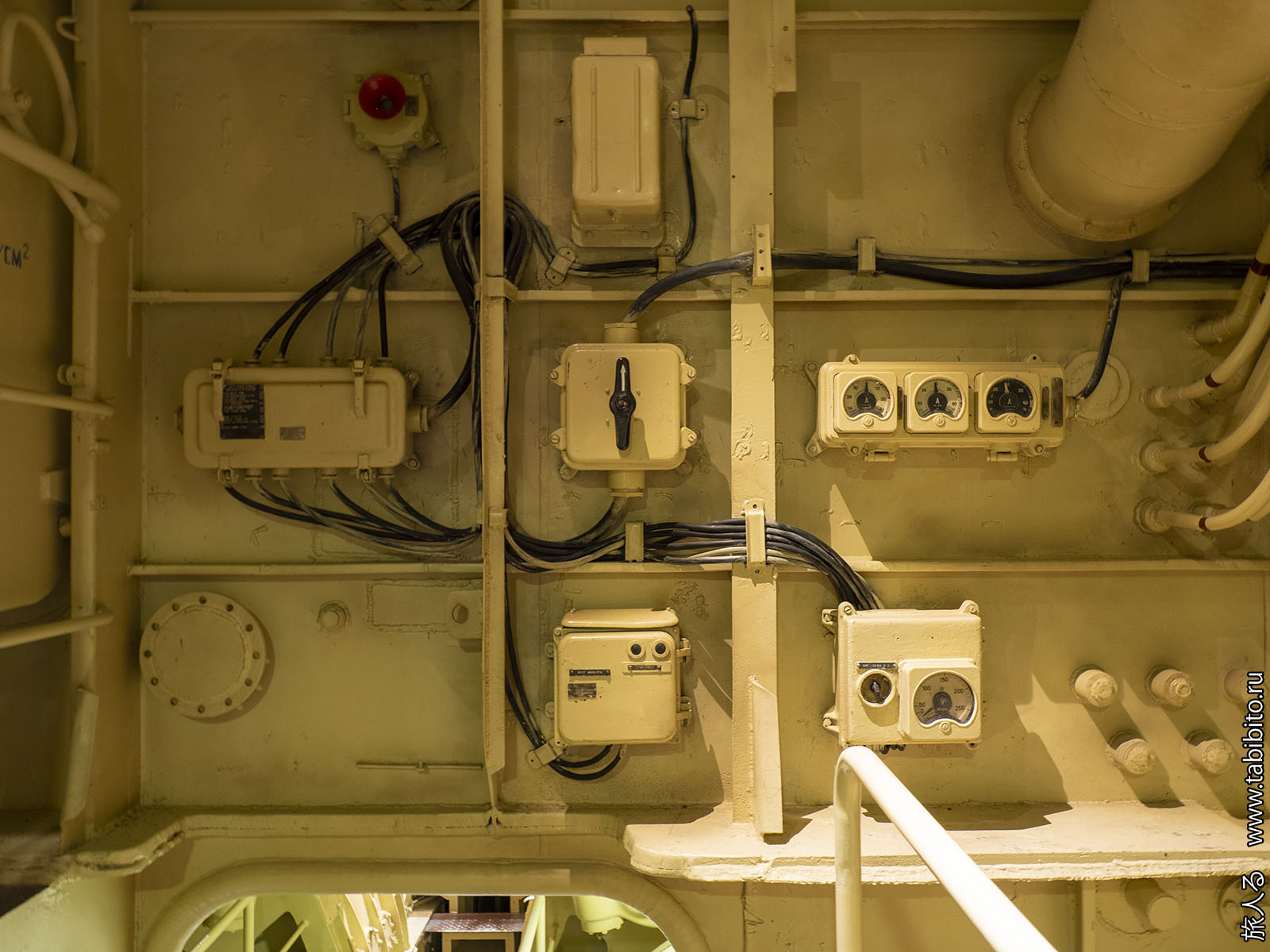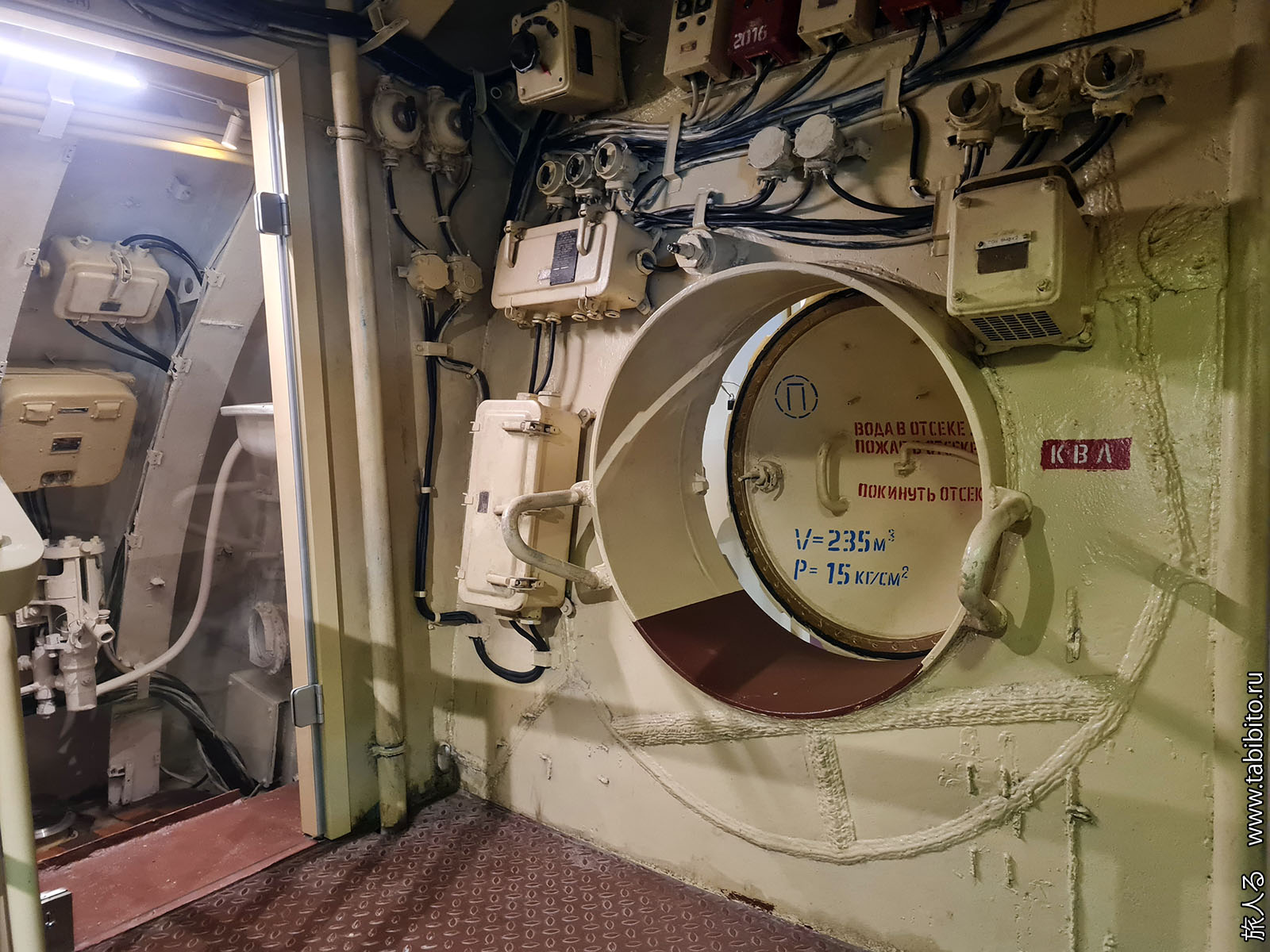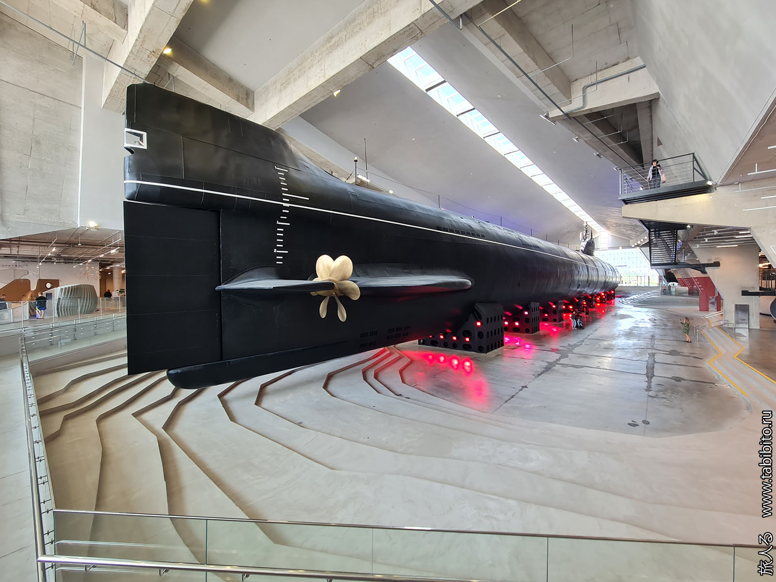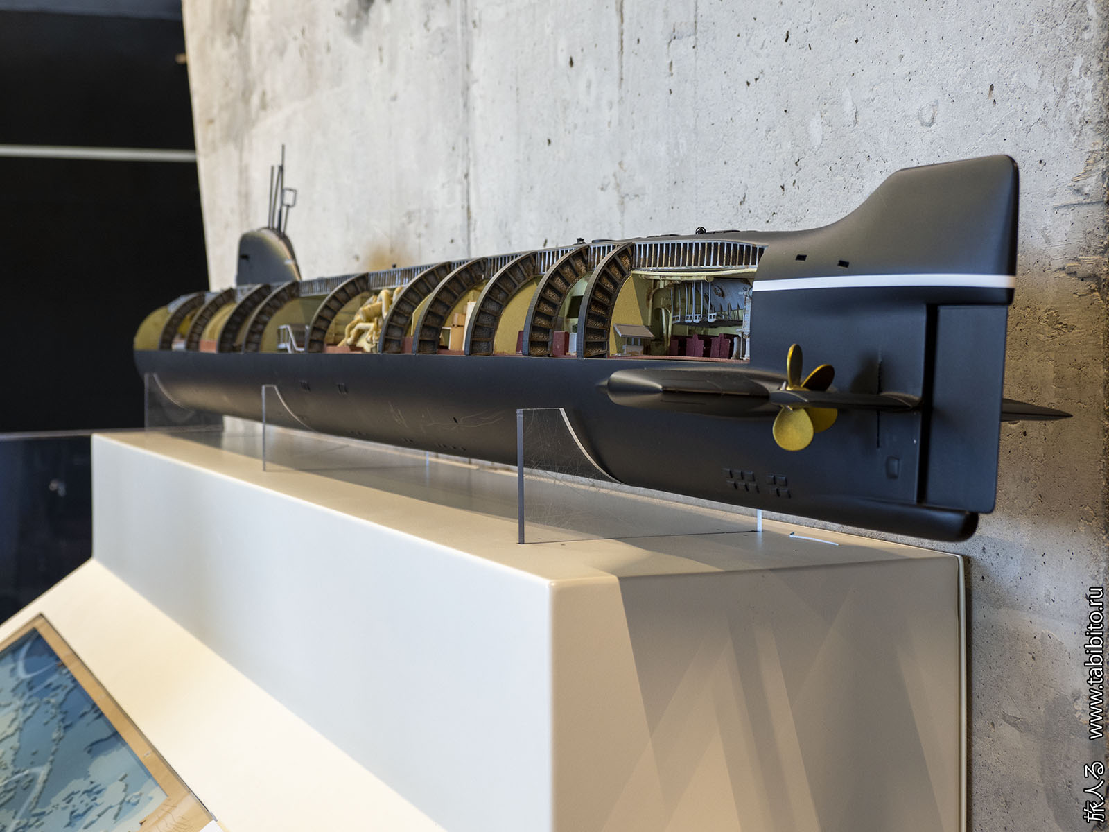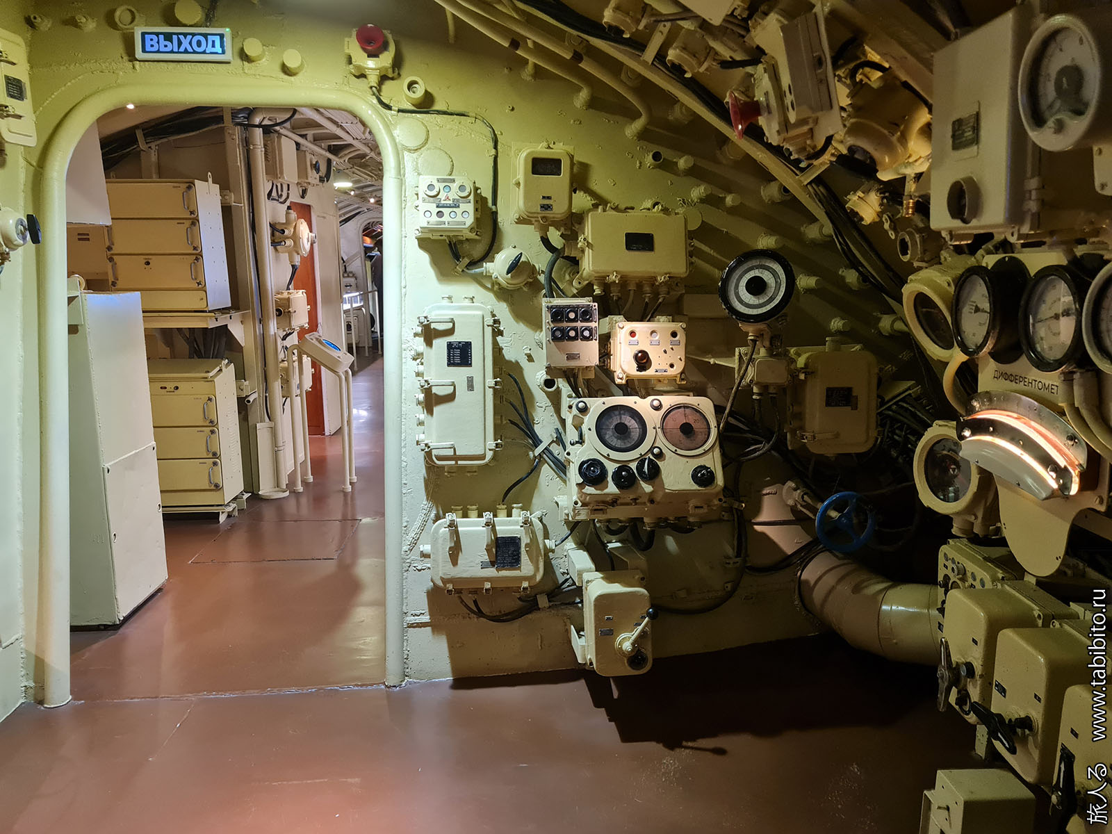 Посещение организуется маленькими экскурсиованными группами. Запускают в отсеки по очереди, рассказ идет по записи из динамиков. Гид только смотрит, чтобы никто никуда не убежал и шею не сломал. Ощущается, что на большое количество народа вентиляция не рассчитана, поэтому запись за месяц — не прихоть. Ну зато все можно сфотографировать без людей в кадре.