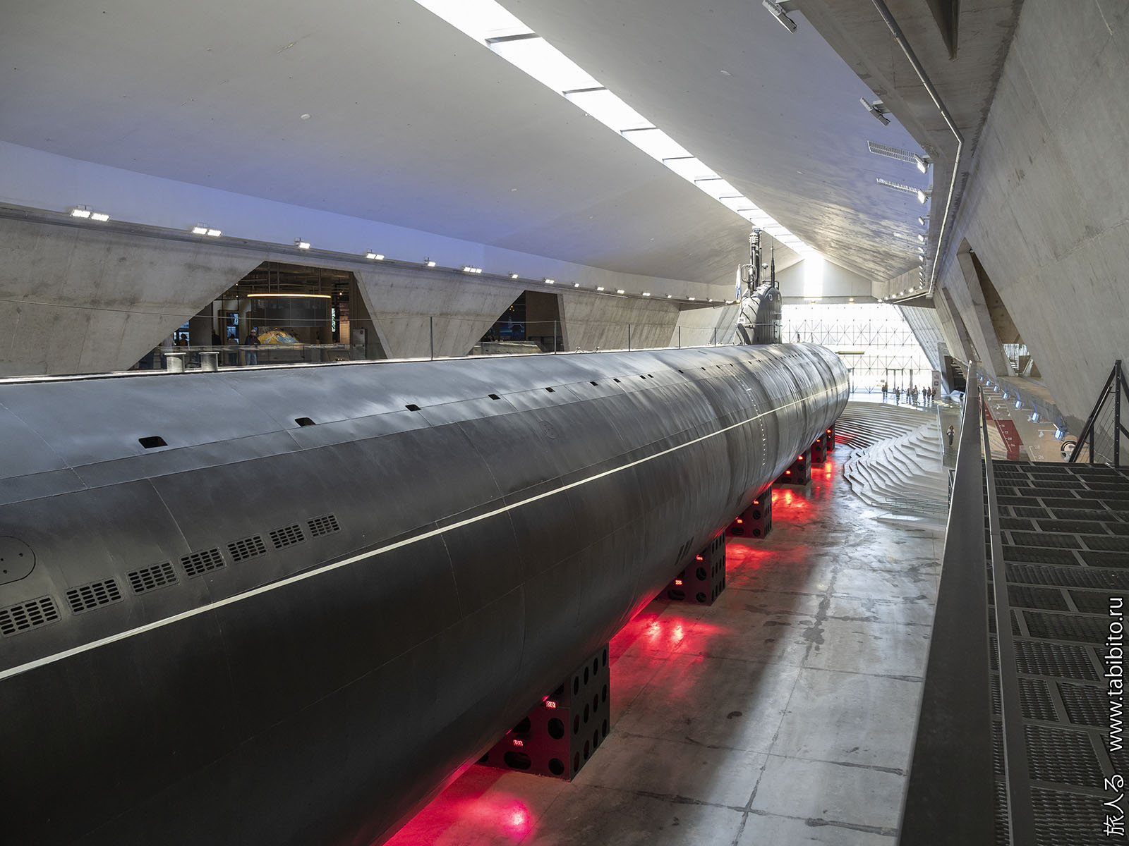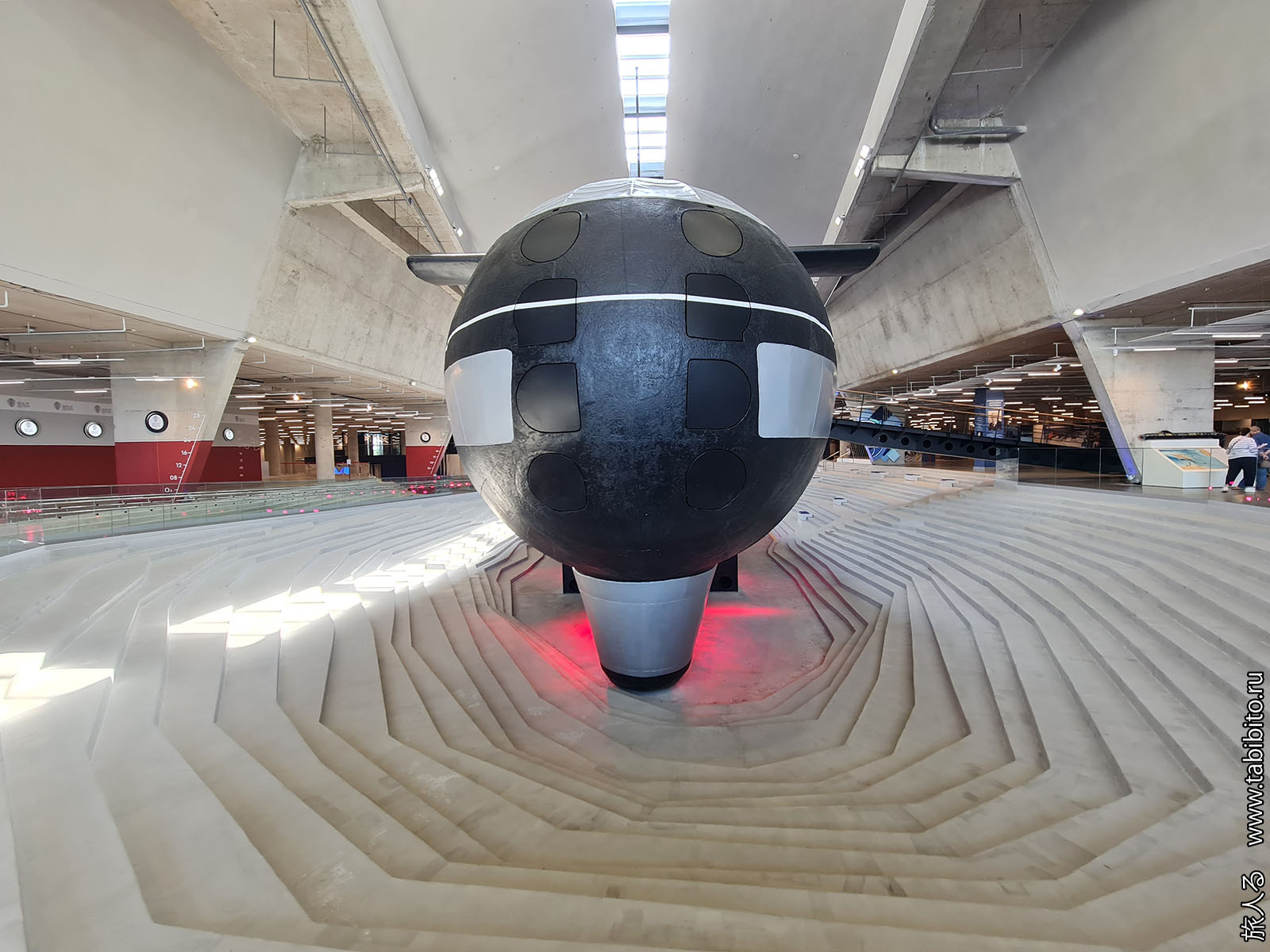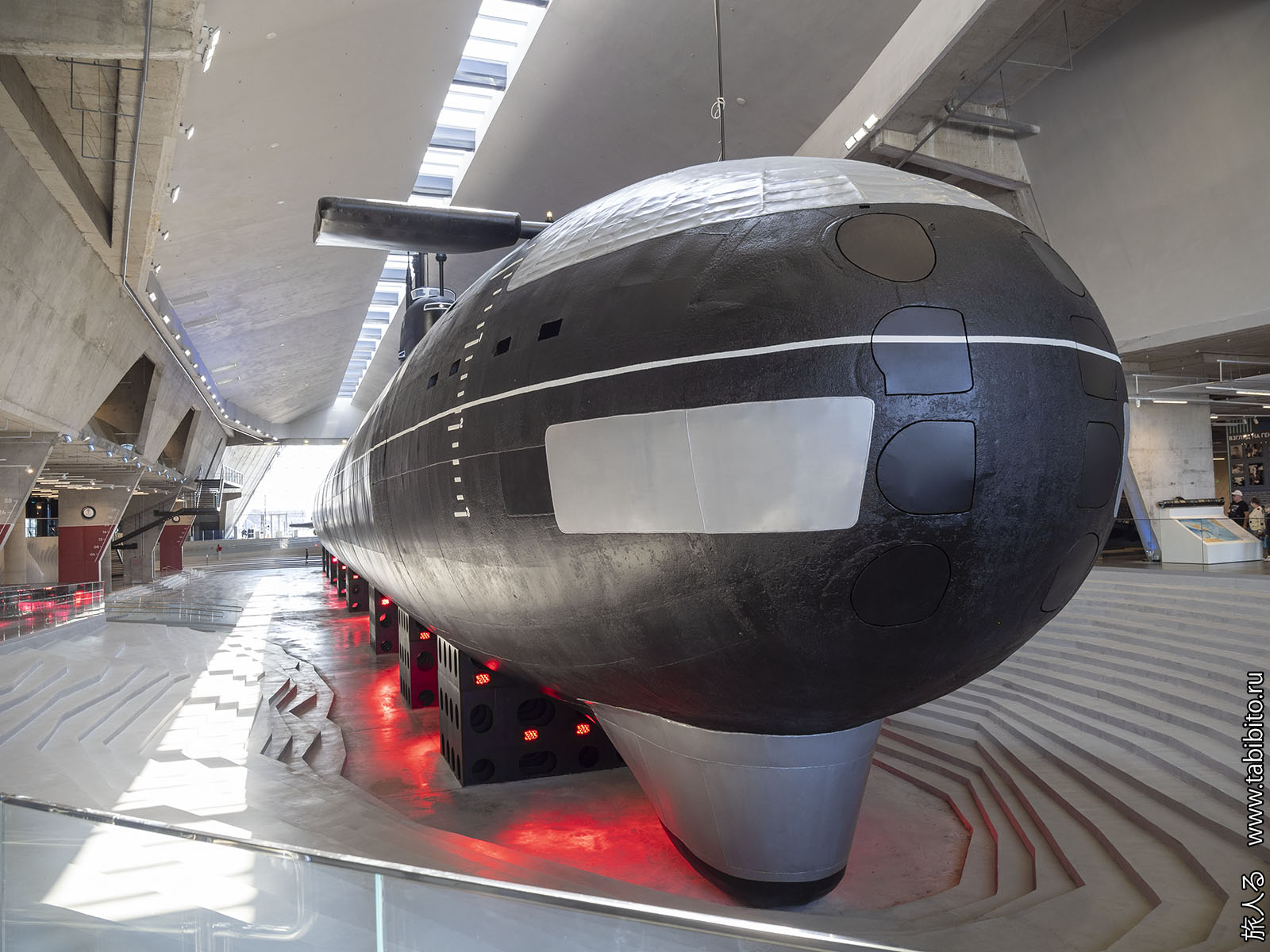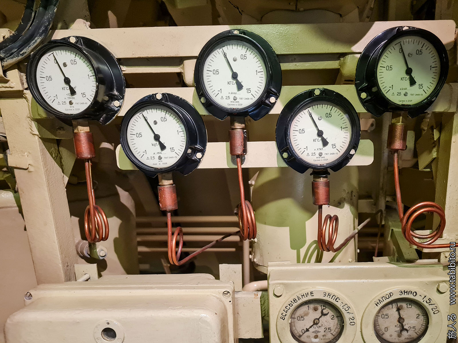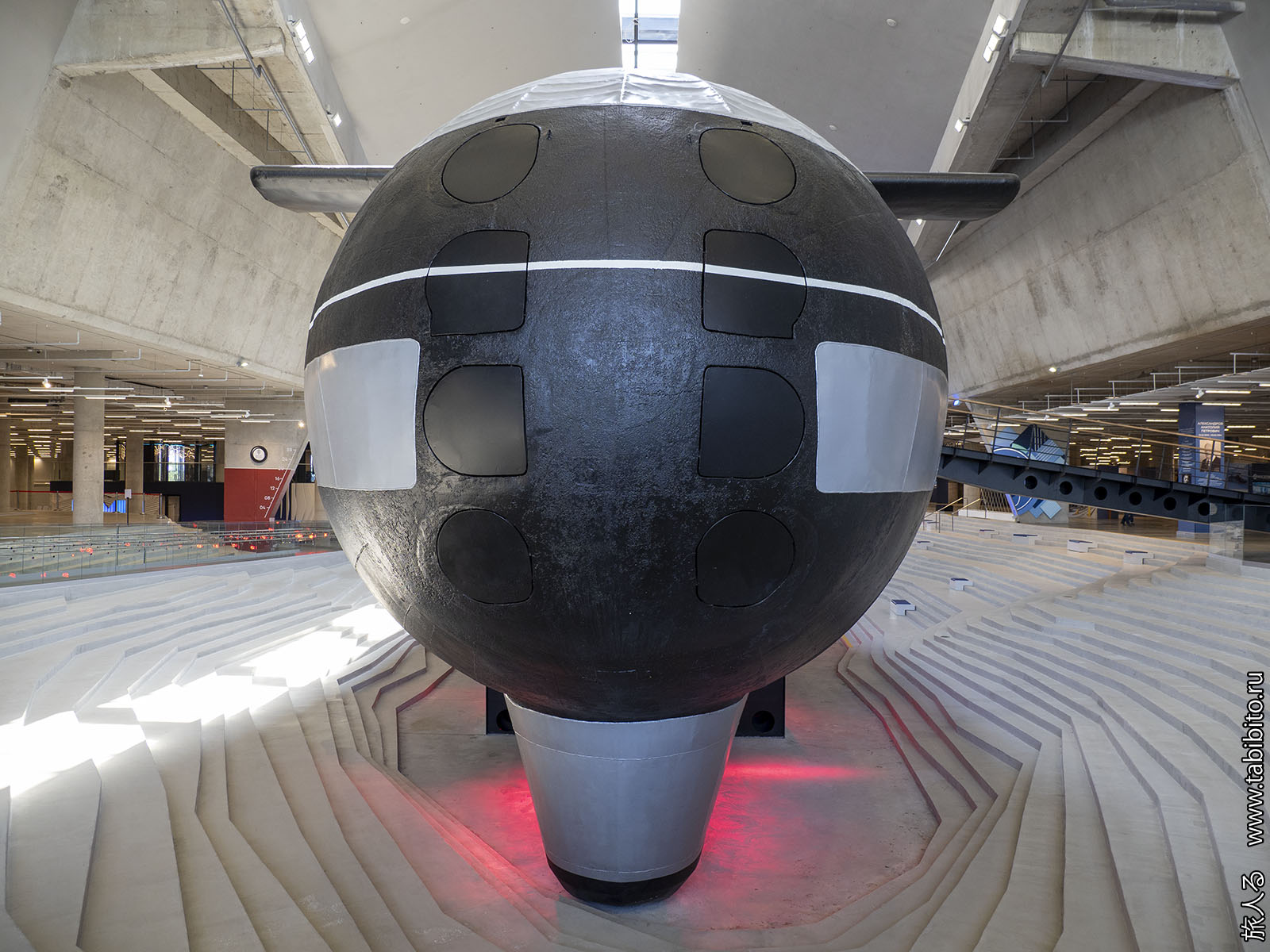 Посещение организуется маленькими экскурсиованными группами. Запускают в отсеки по очереди, рассказ идет по записи из динамиков. Гид только смотрит, чтобы никто никуда не убежал и шею не сломал. Ощущается, что на большое количество народа вентиляция не рассчитана, поэтому запись за месяц — не прихоть. Ну зато все можно сфотографировать без людей в кадре.