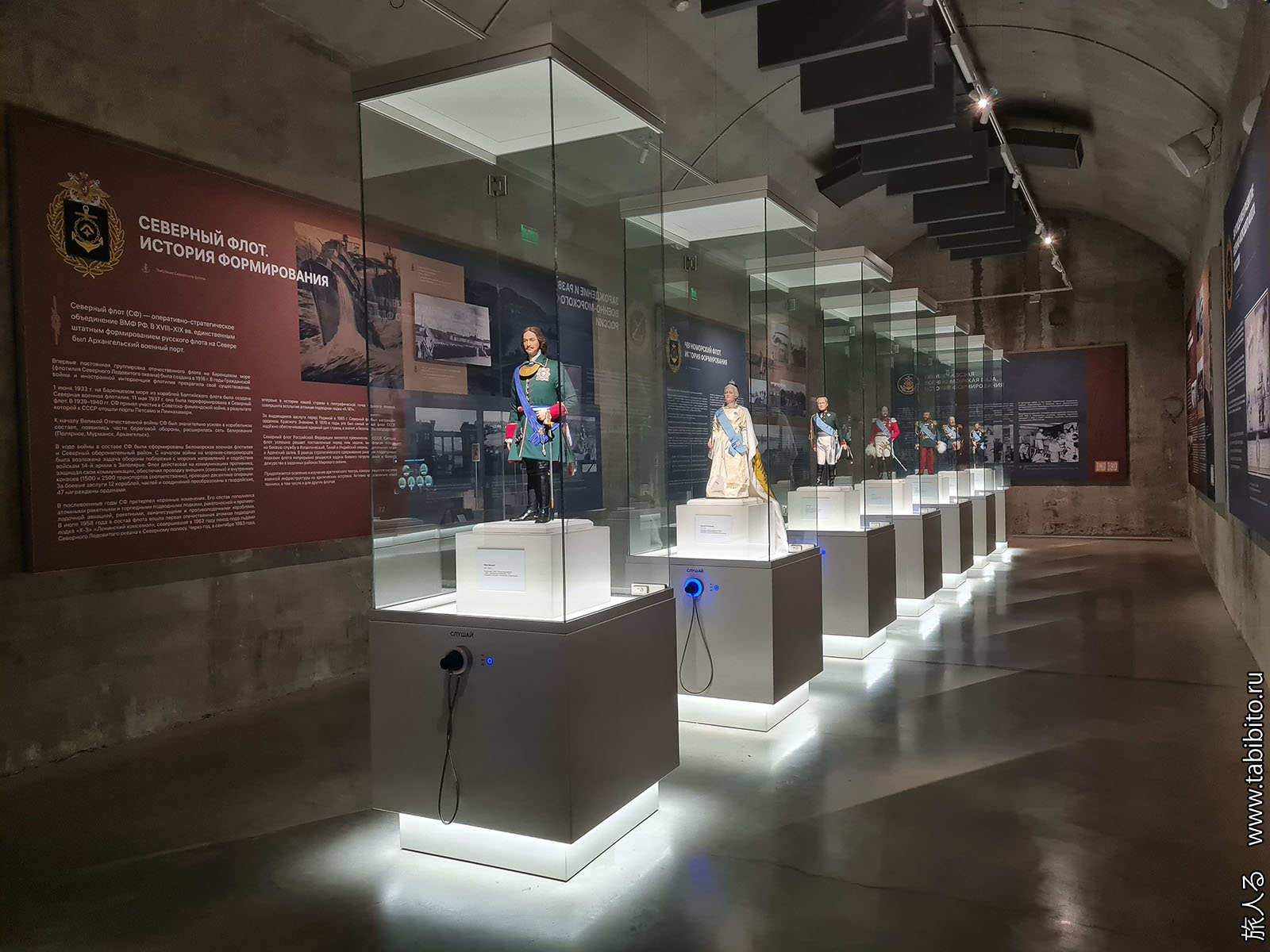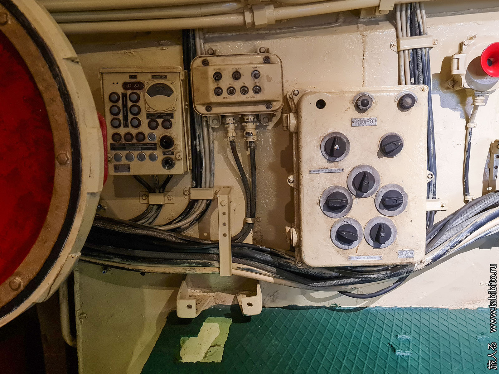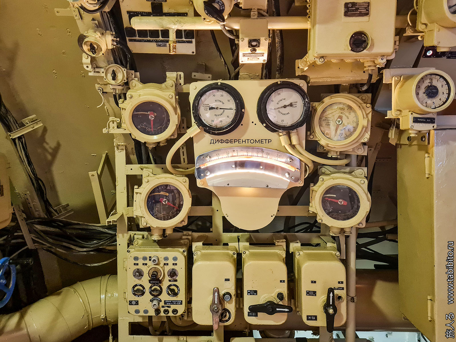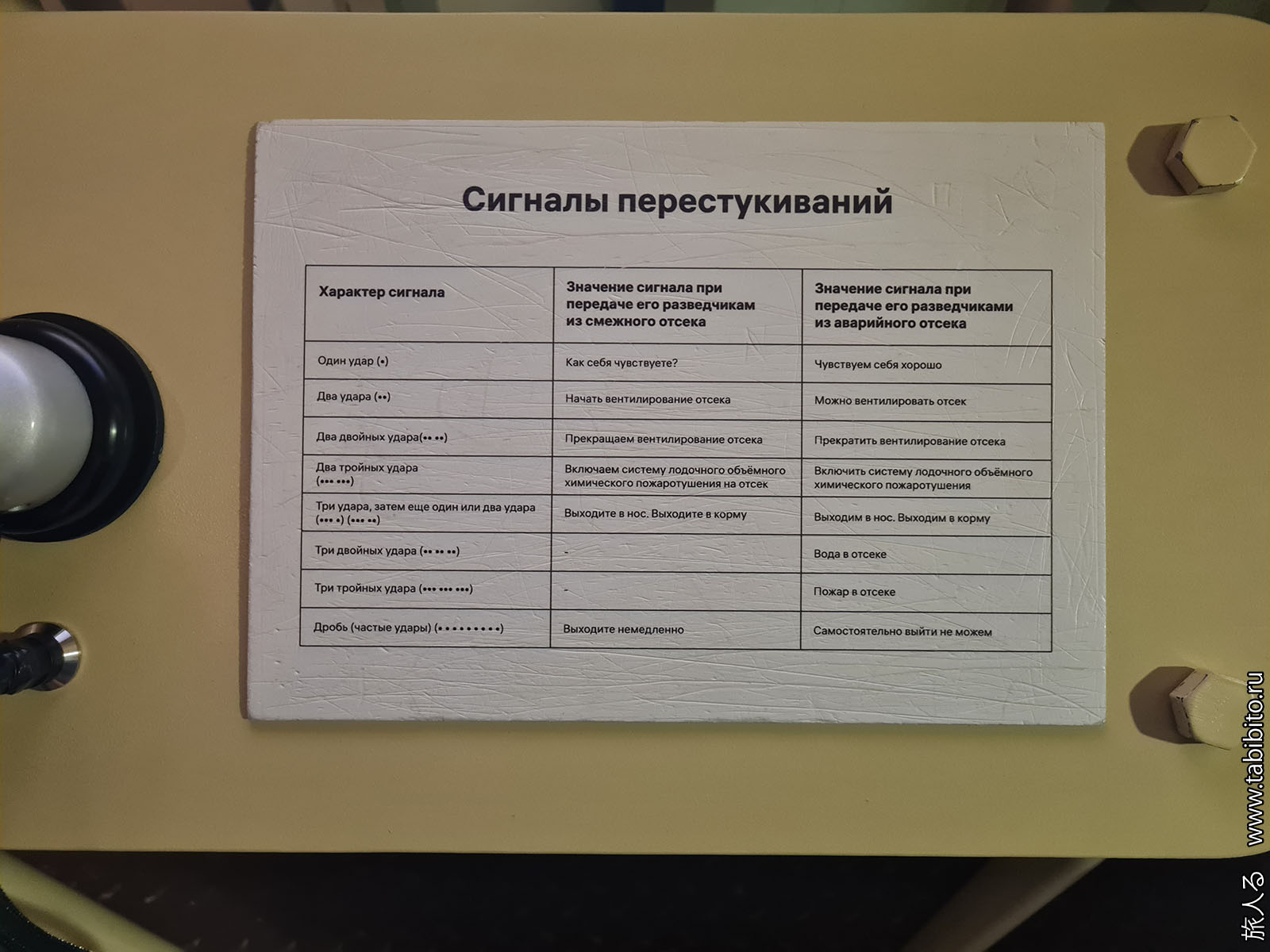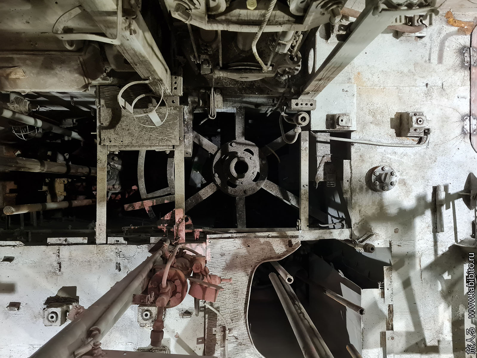 Посещение организуется маленькими экскурсиованными группами. Запускают в отсеки по очереди, рассказ идет по записи из динамиков. Гид только смотрит, чтобы никто никуда не убежал и шею не сломал. Ощущается, что на большое количество народа вентиляция не рассчитана, поэтому запись за месяц — не прихоть. Ну зато все можно сфотографировать без людей в кадре.