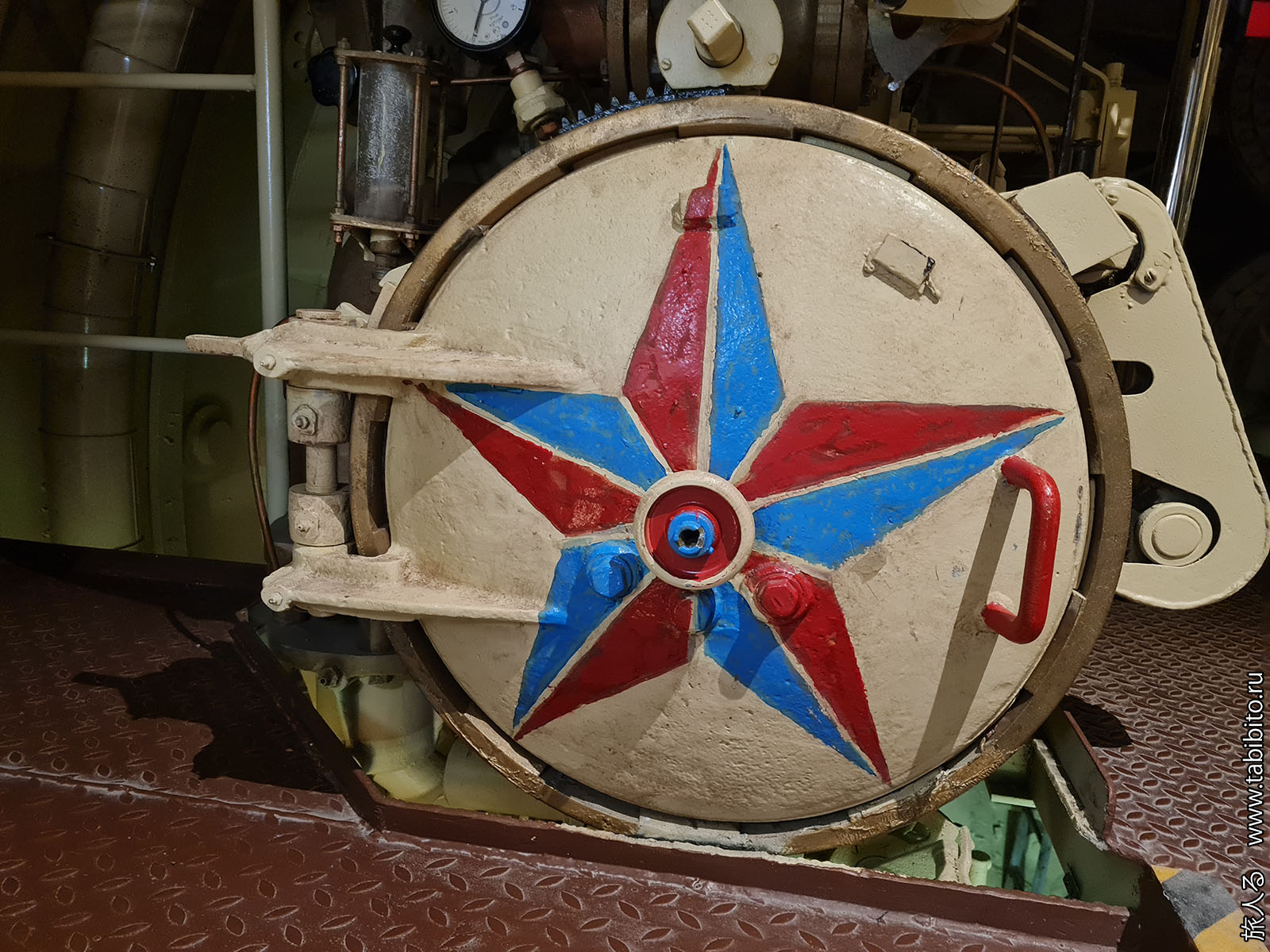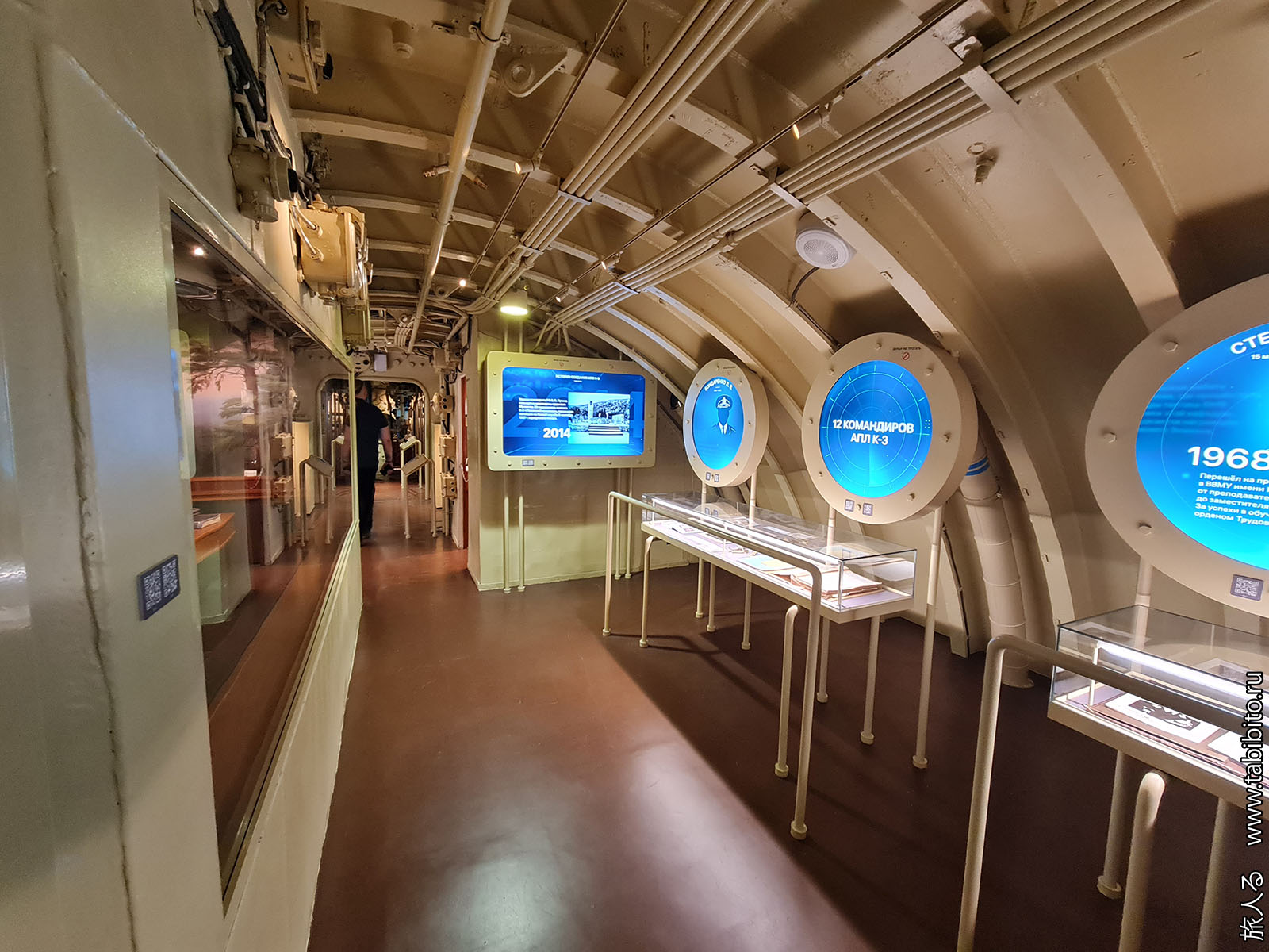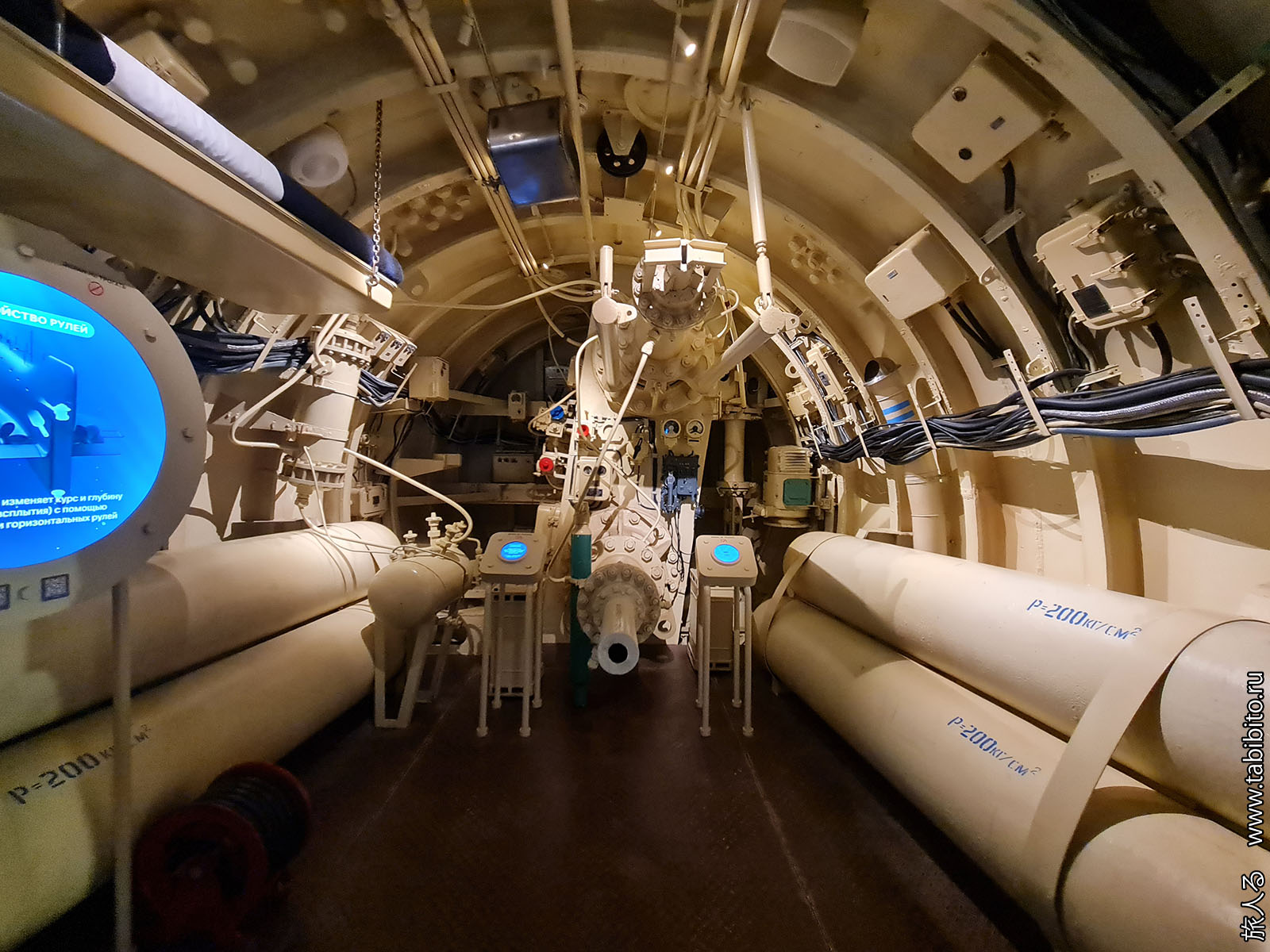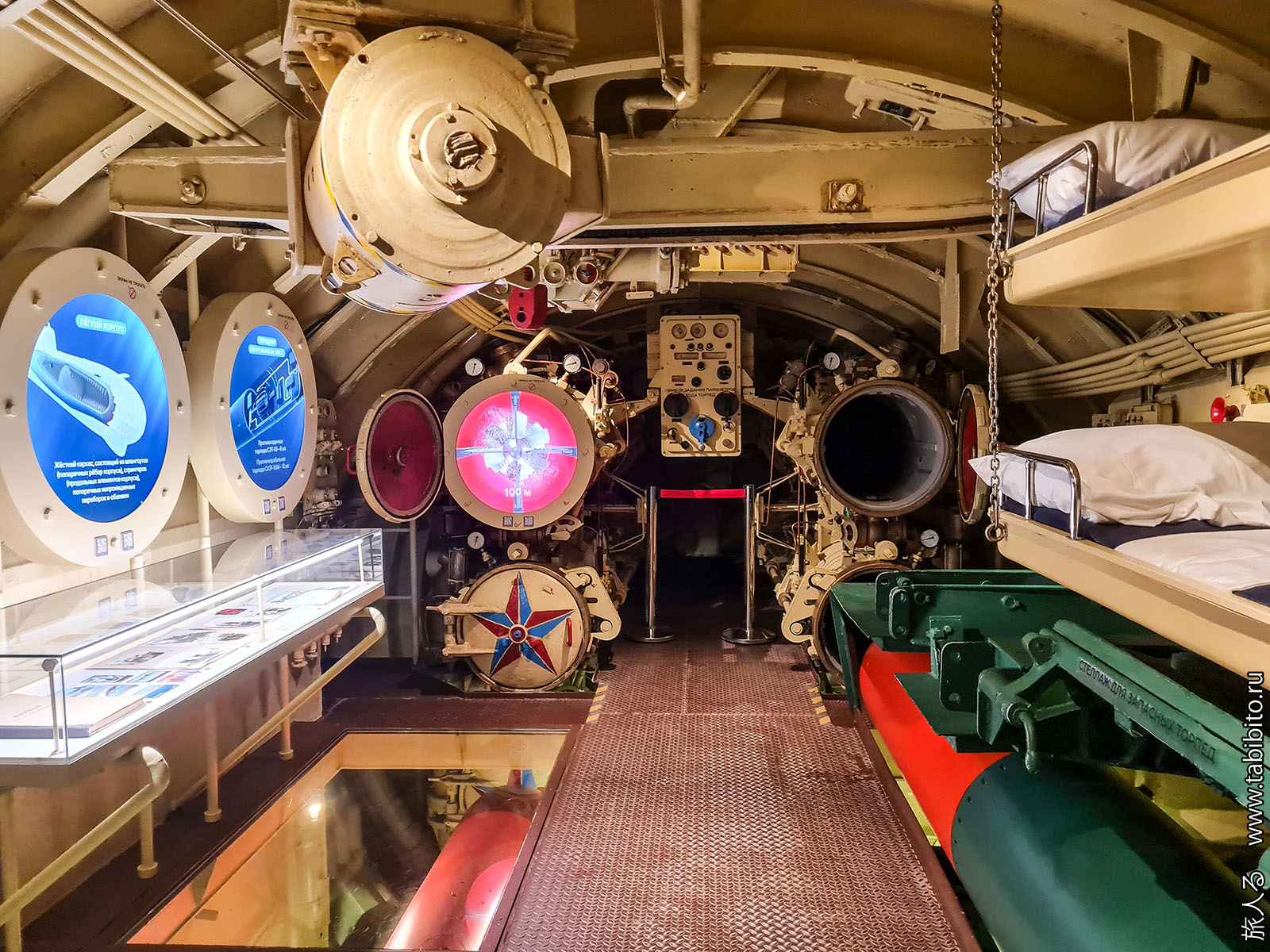 Особой «аутентичности» внутри можно не ожидать: корабль был опытным, несколько раз потрошился с заменой реакторного отсека и всего оборудования, а к моменту передачи в музей почти 30 лет ржавел в отстое. Но вот торпедные аппараты со звездами — настоящие.