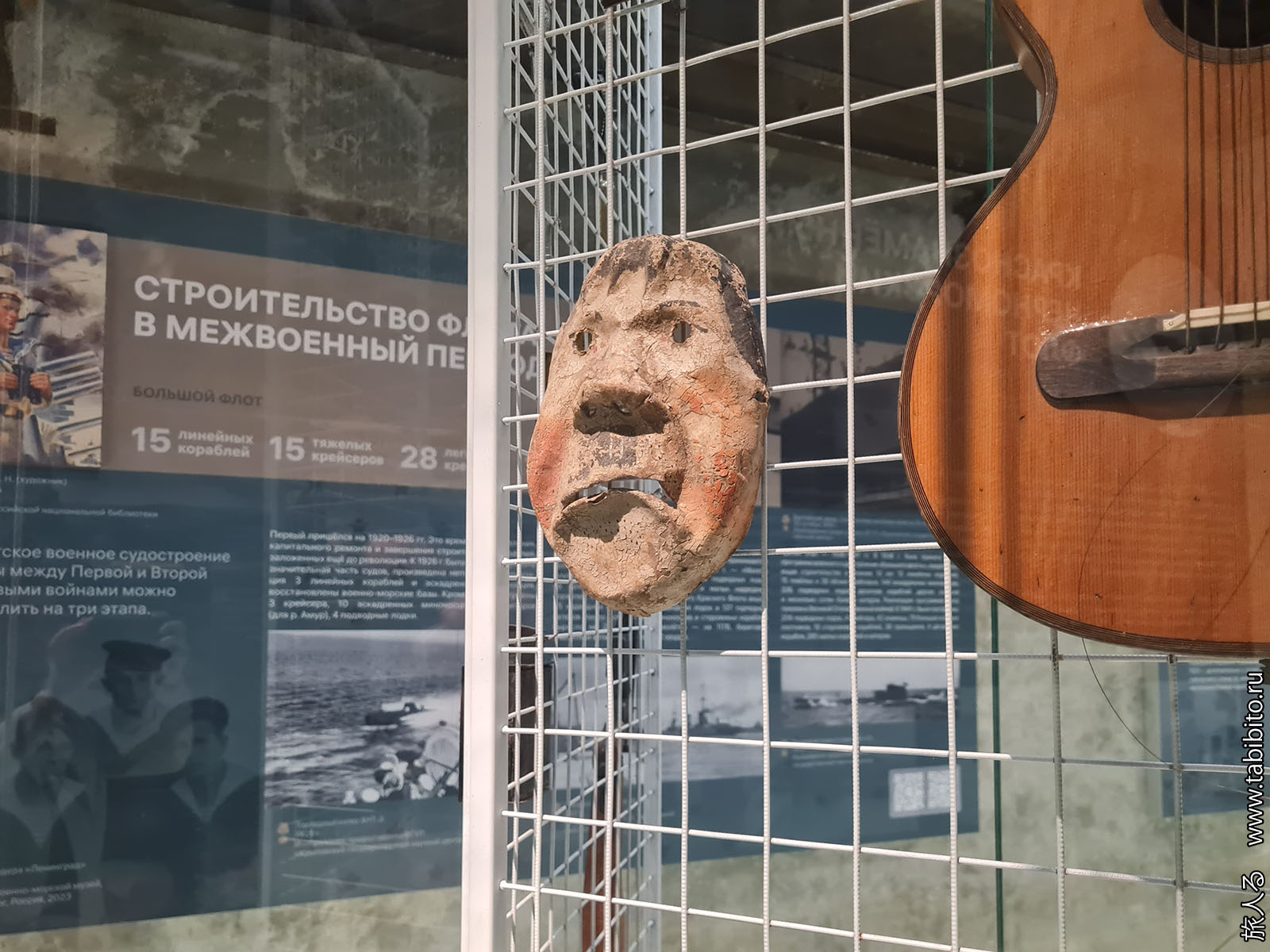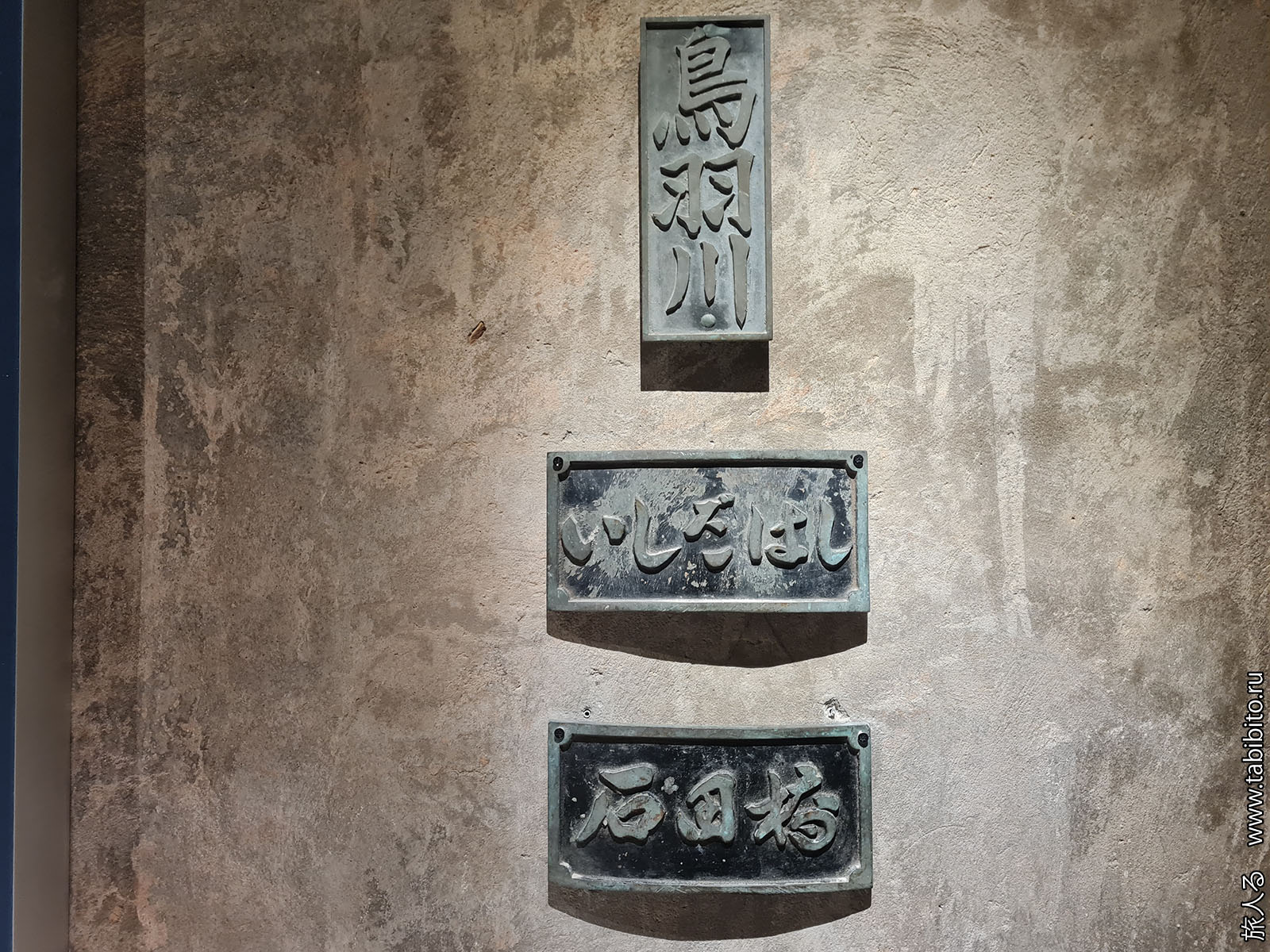 А русско-японская война 1904-1905 годами проиллюстрирована вот такими табличками. На верхней написано "Река Тоба" (Тобагава), на двух нижних — "Мост Исида" (Исида-баси). Река Тоба течет на острове Хонсю и точно не имеет никакого отношения к событиям начала XX века и вообще к русско-японским или советско-японским войнам. Рискну предположить, что Тобагавой японцы могли назвать какую-то реку на Южном Сахалине или на Курилах, и в 1945 году эти таблички были скручены и попали в военный архив. Но пояснений к ним в зале нет.