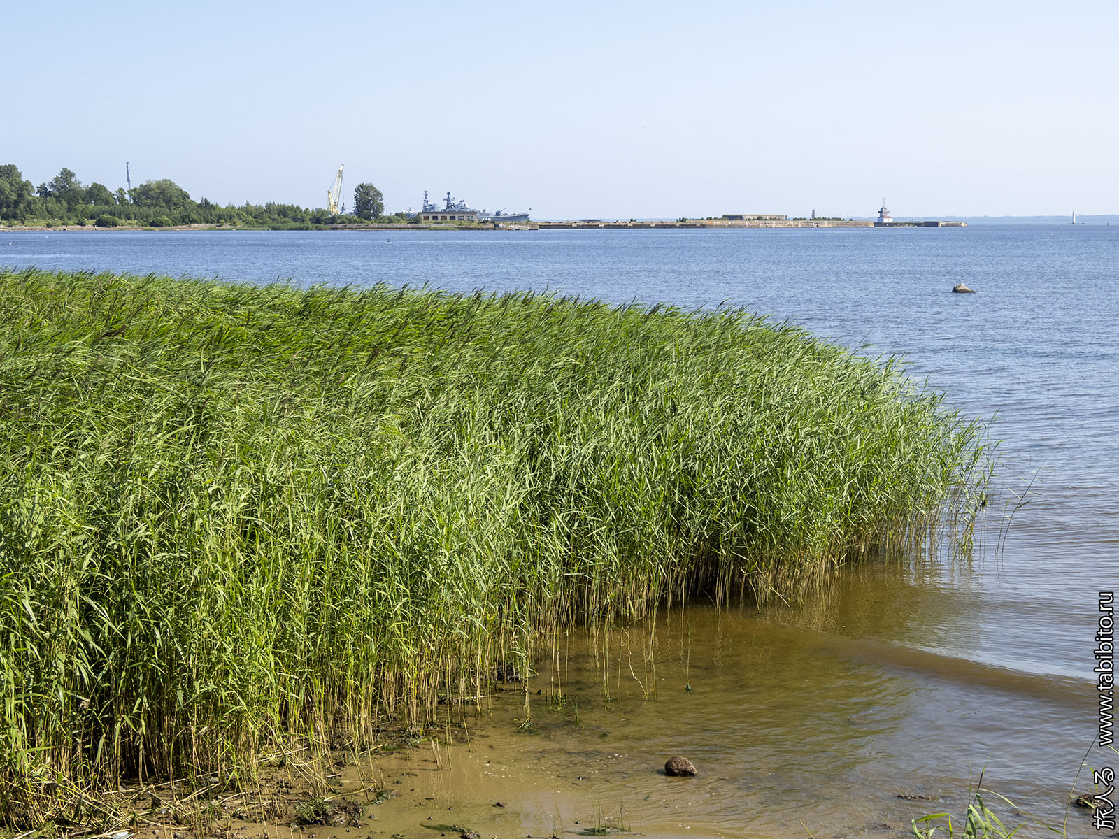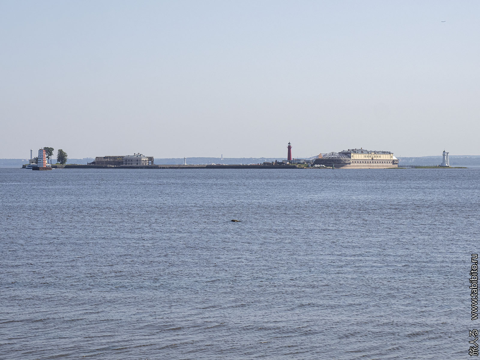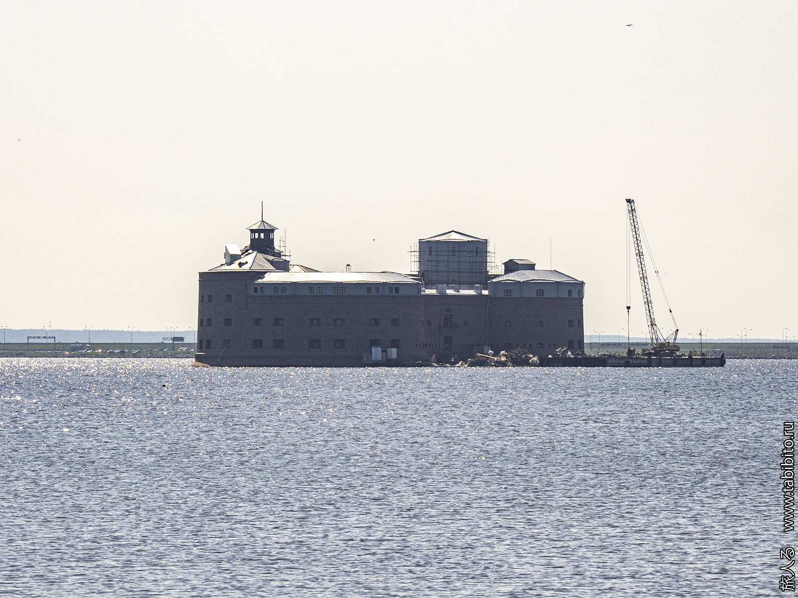 Форт «Император Петр I», к которому по дамбе продожена железная дорога.