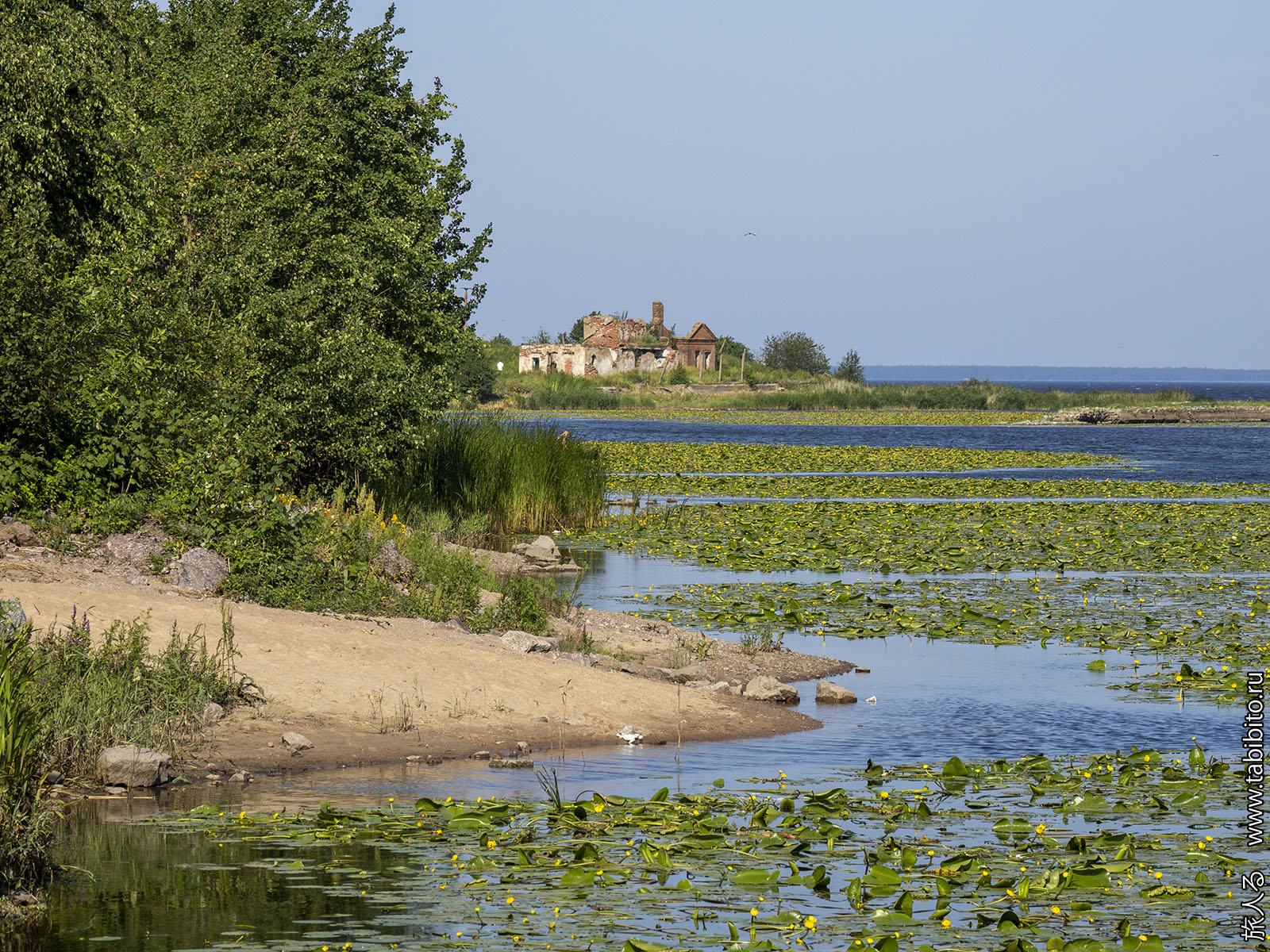 1-й Северный форт и вид с дамбы. Желтые кубышки как бы свидительствуют о том, что вода в Финском заливе практичеки пресная.