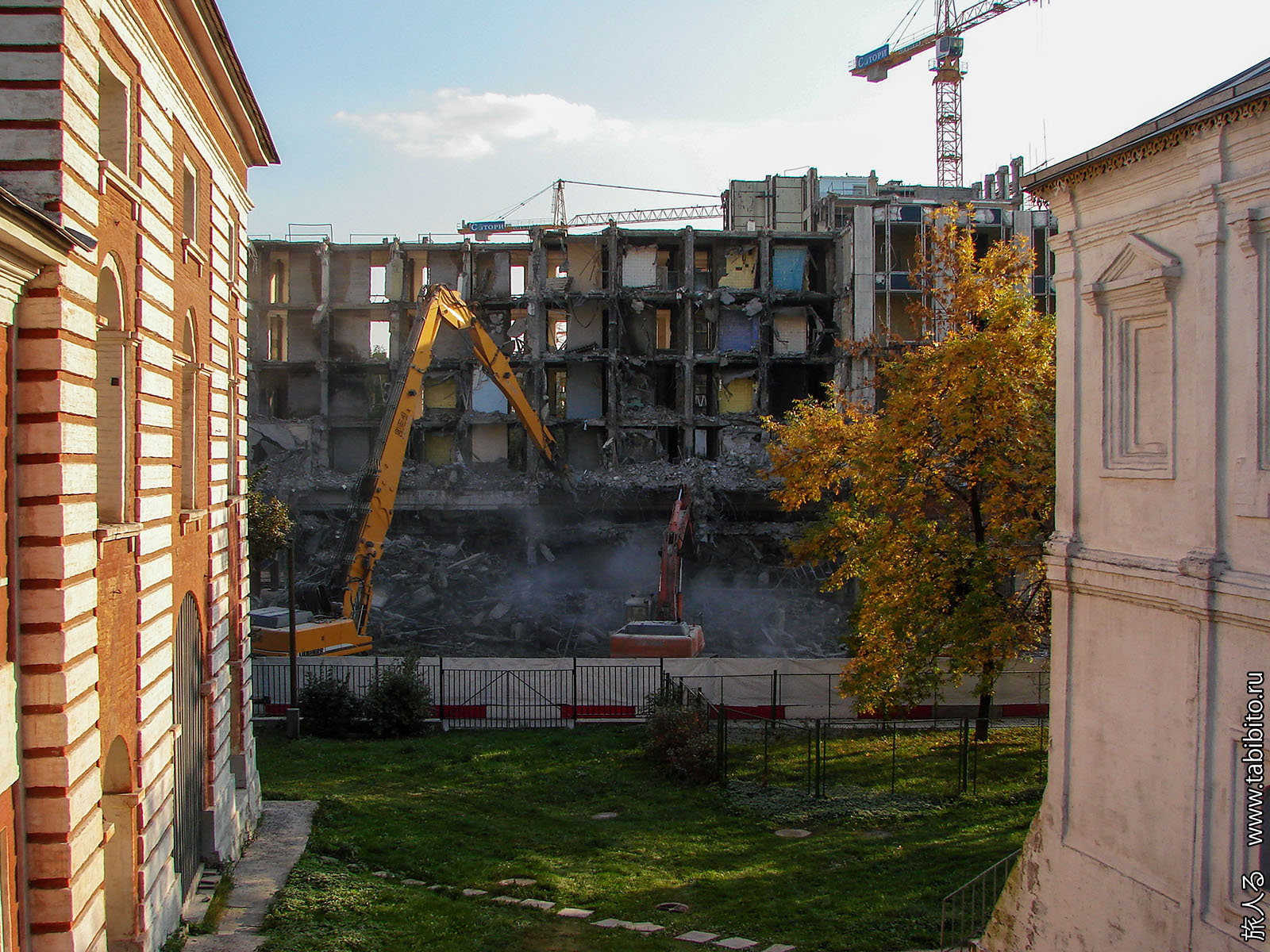 Снос гостиницы «Россия» в Зарядье. На тот момент на его месте еще планировались всякие офисы или парламентский центр, но в итоге разбили парк.