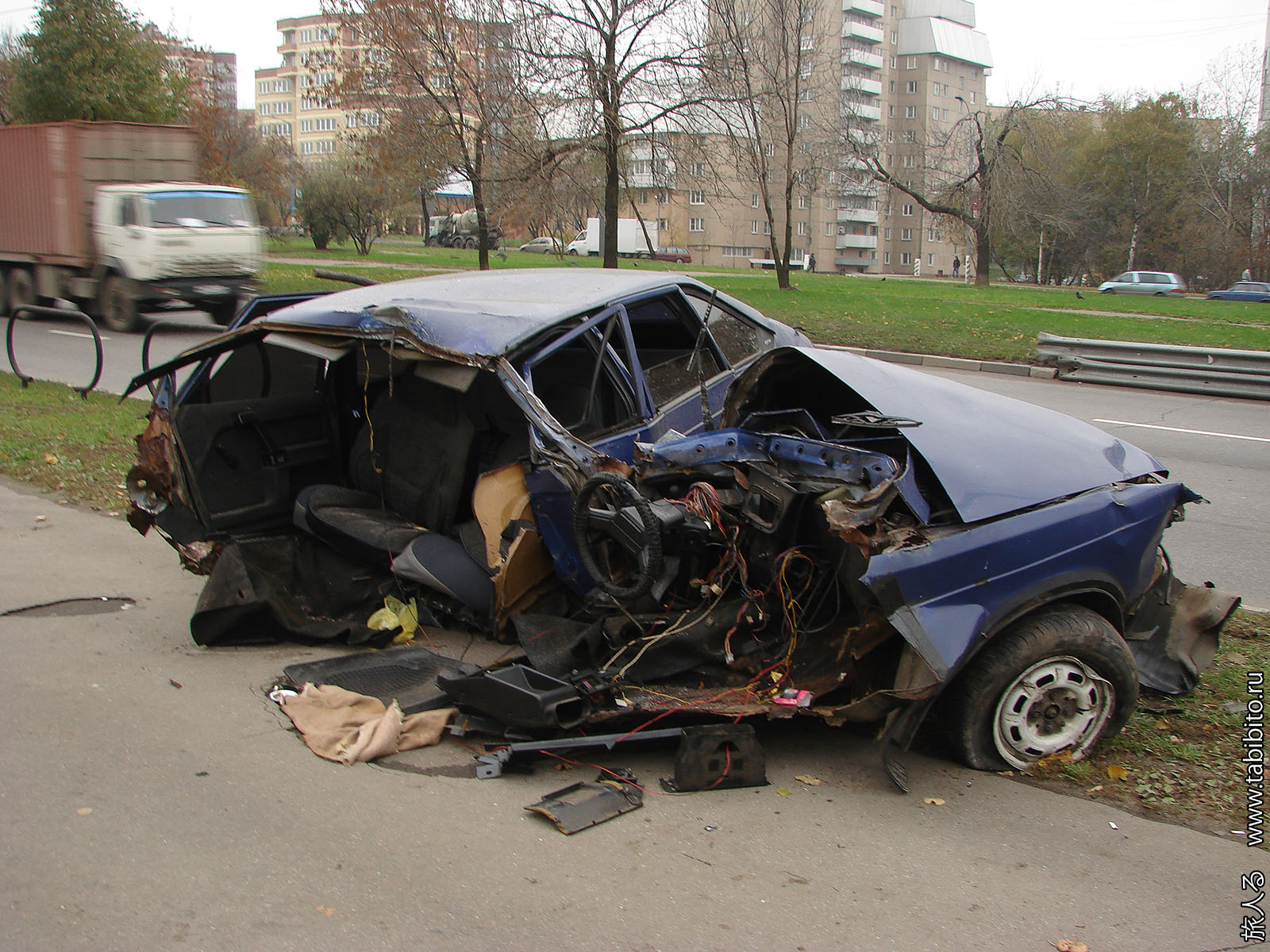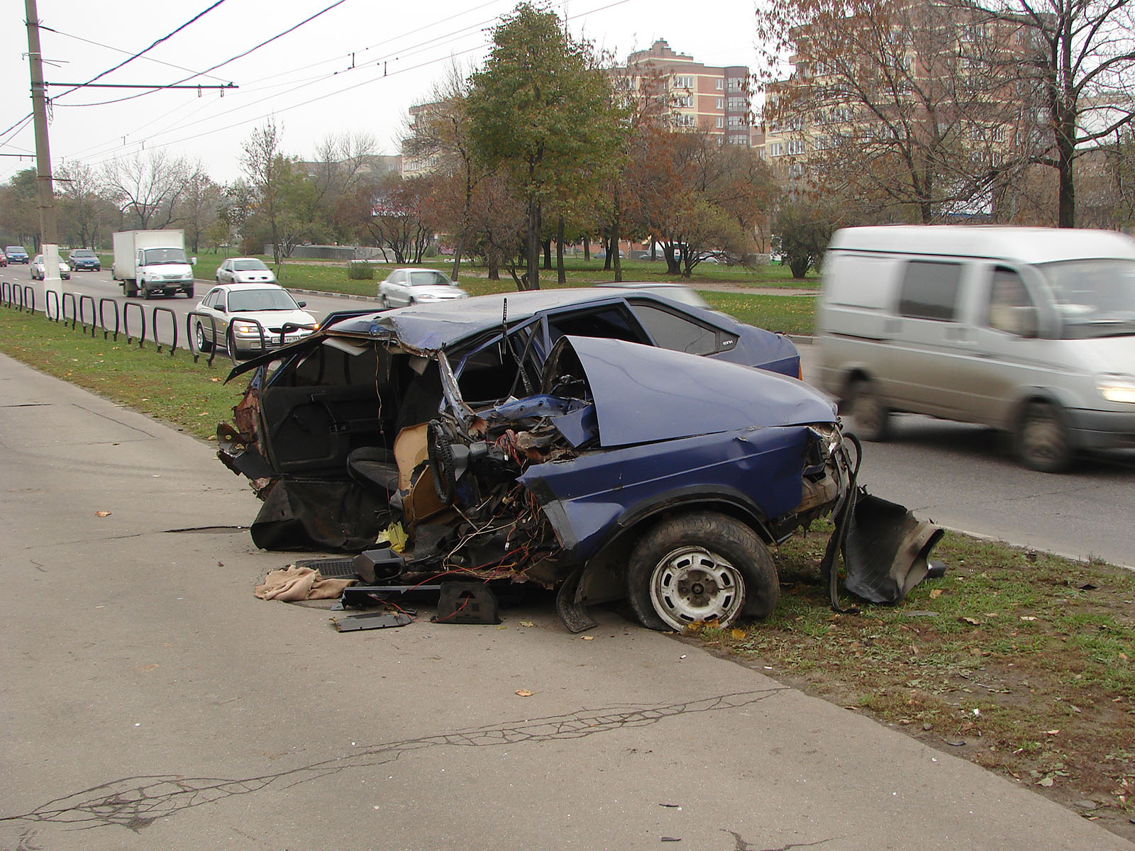 Рядом с Коломенским на проспекте Андропова тогда сфотографировал последствия наматывания «Москвича» на столб. Вероятно, с плохим исходом.