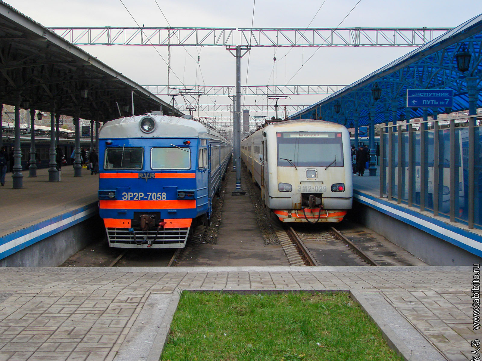 Напоследок немного железнодорожного контента. В 2006 году были живы и даже выпускались свежие беленькие «Спутники» и «Опарыши» — откапиталенные старые электрички, превращенные в экспрессы.