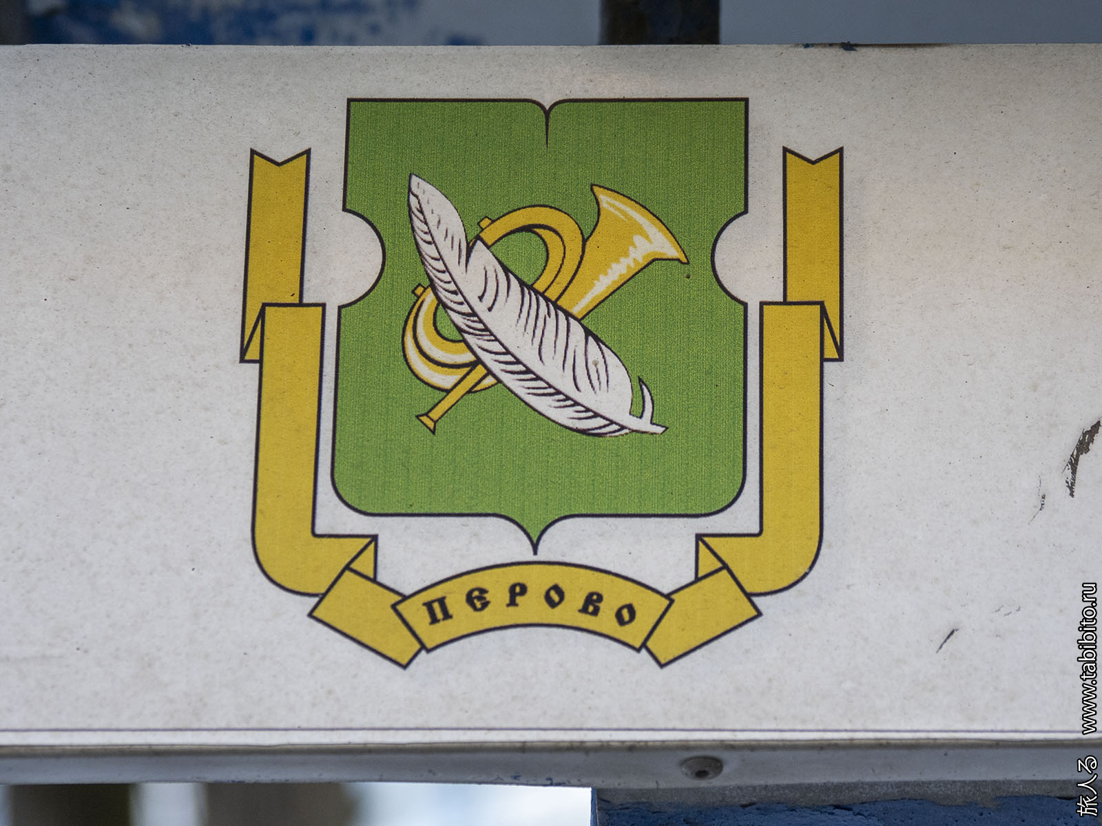 На гербе закономерно изображено перо.