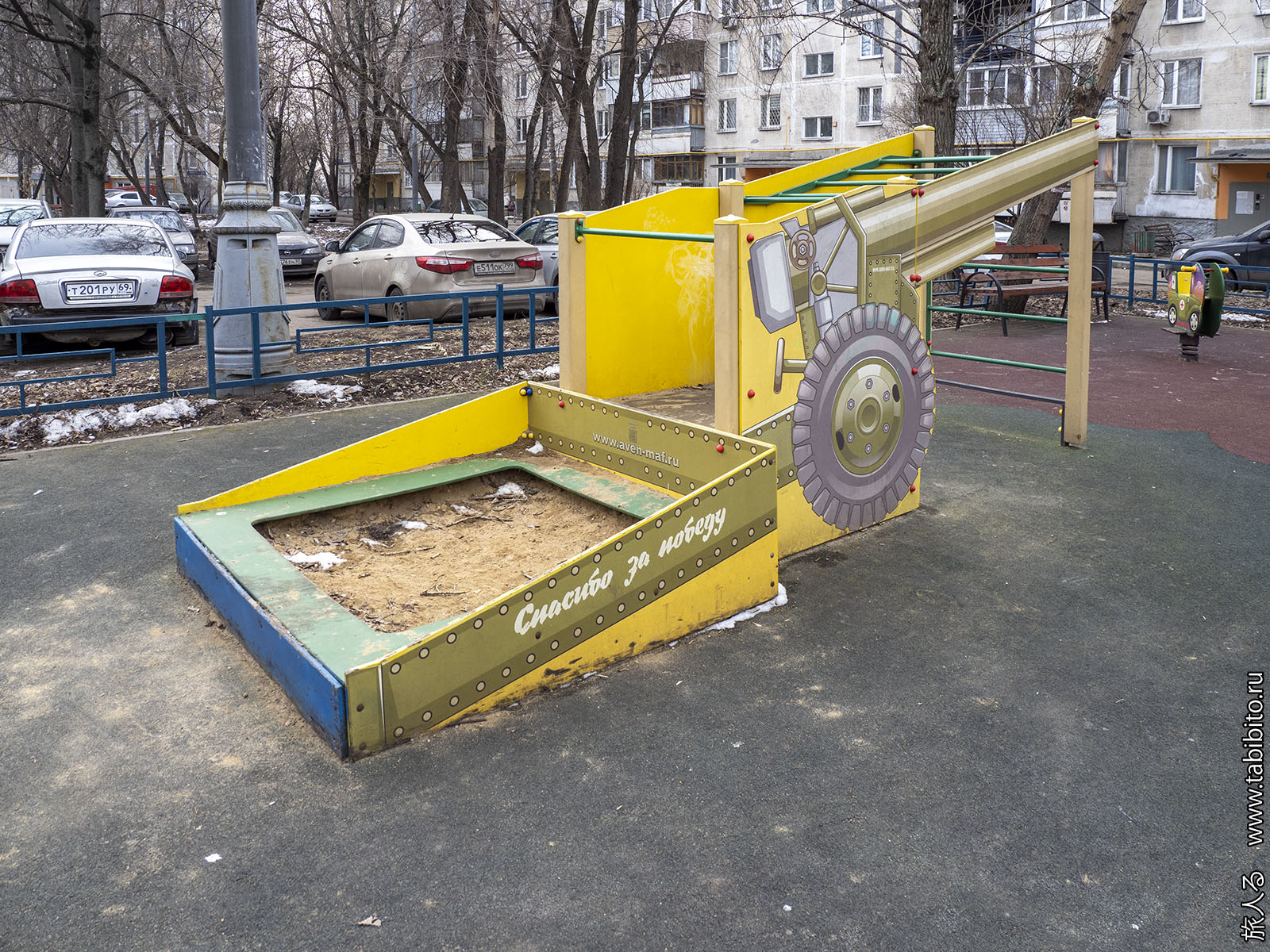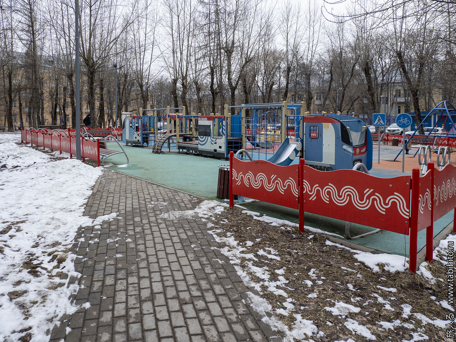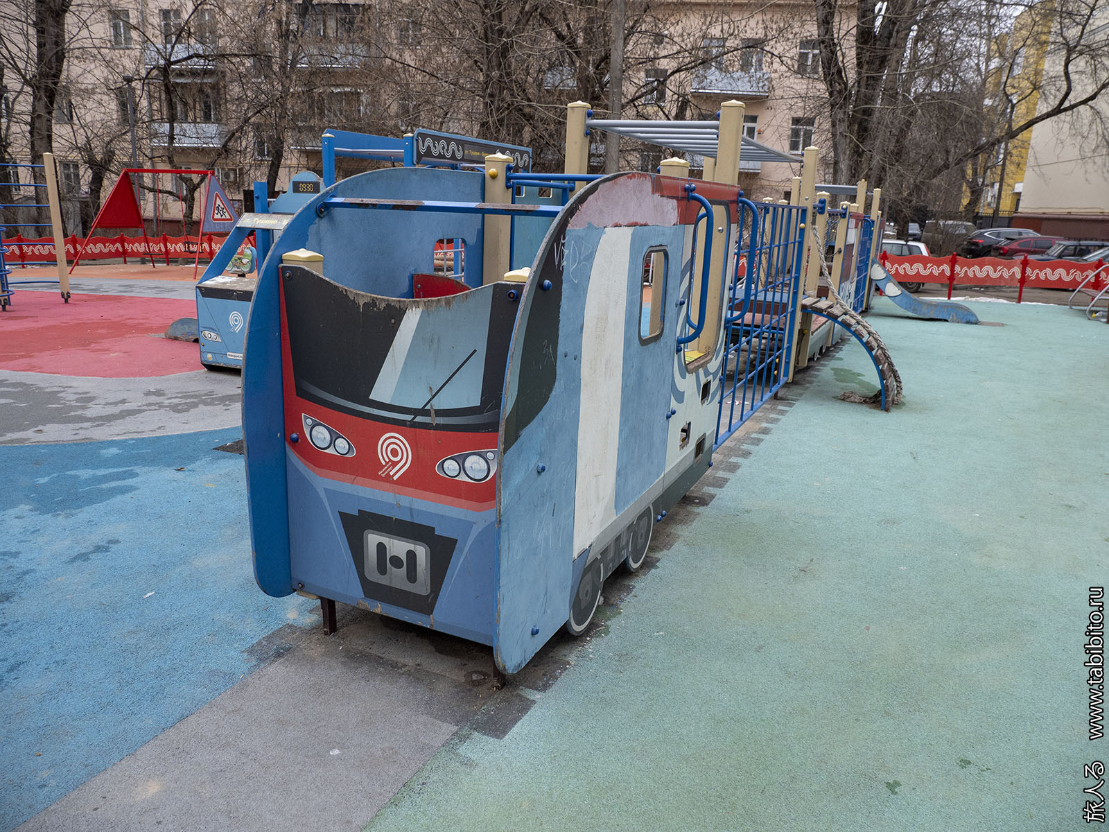 Брендированная под московский транспорт детская площадка подустала.