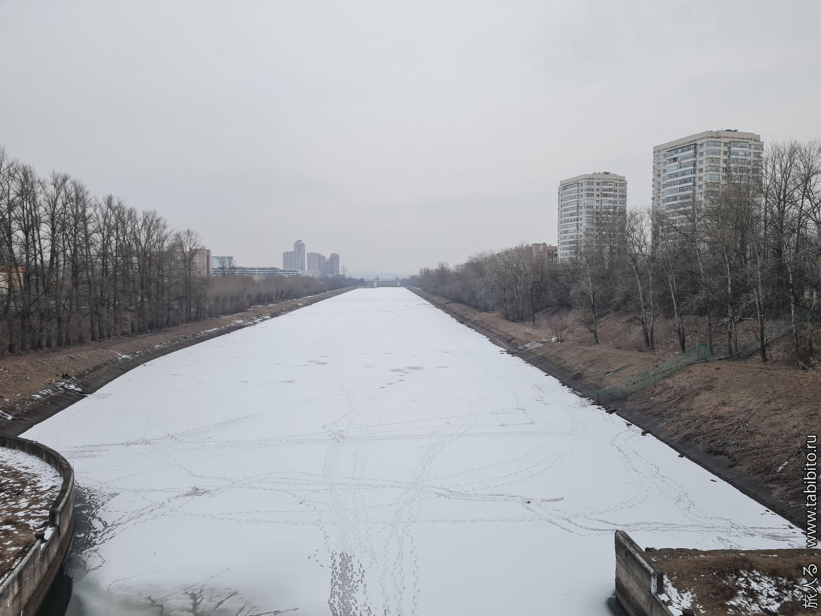 Но можно посмотреть на замерзшее Химкинское водохранилище из парка «Покровский берег». И даже немного по нему пройтись, если мороз достаточно трескуч.