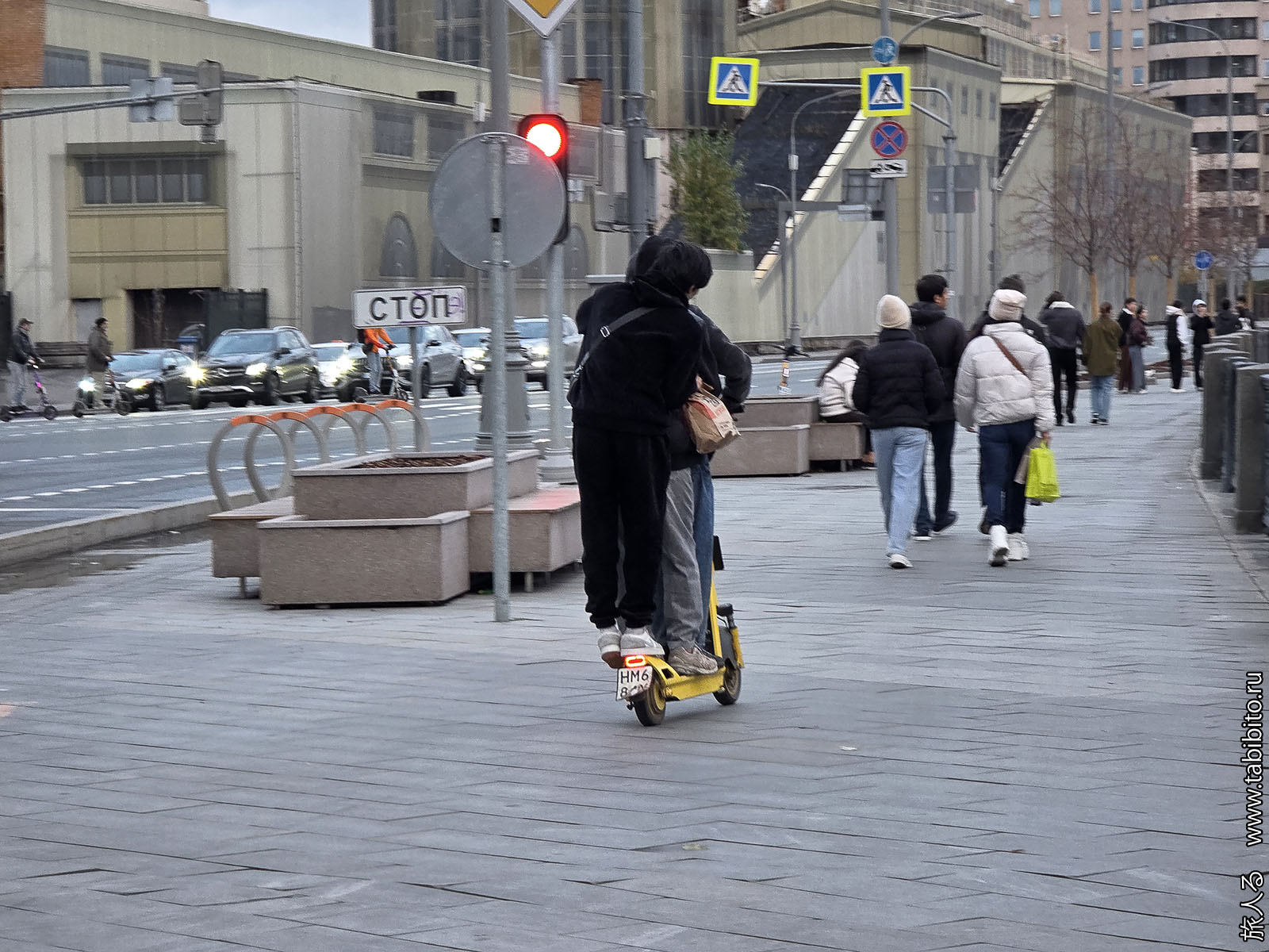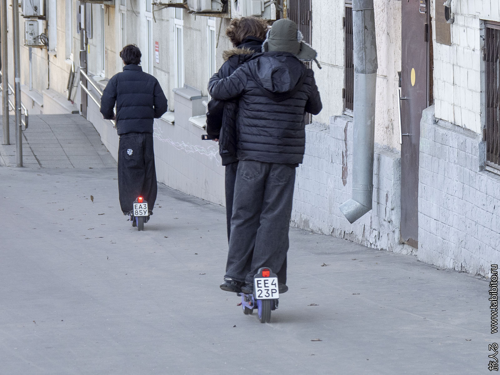Детвора летает на прокатных самокатах по двое и по трое. Если успеть, можно сфотографировать и на них настучать. Возможно, им заблокируют учетку.