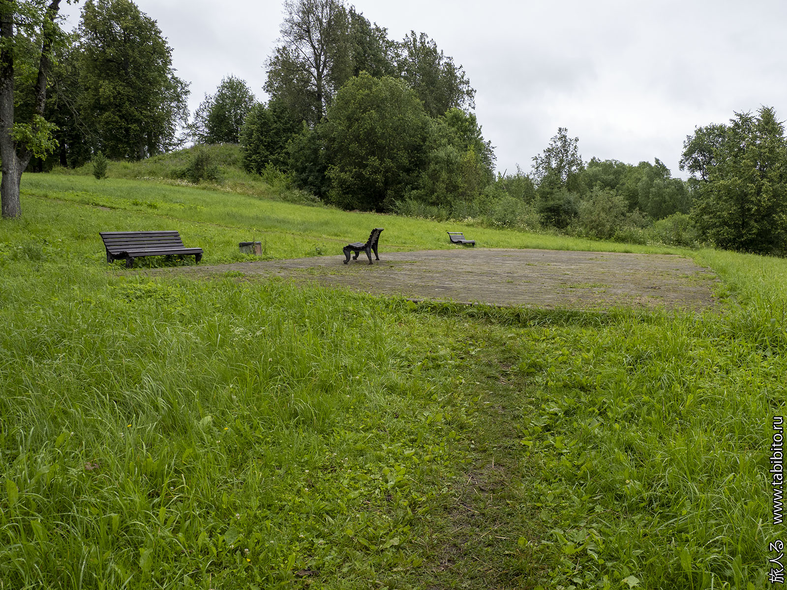 Благоустроенный сквер с лавочками.