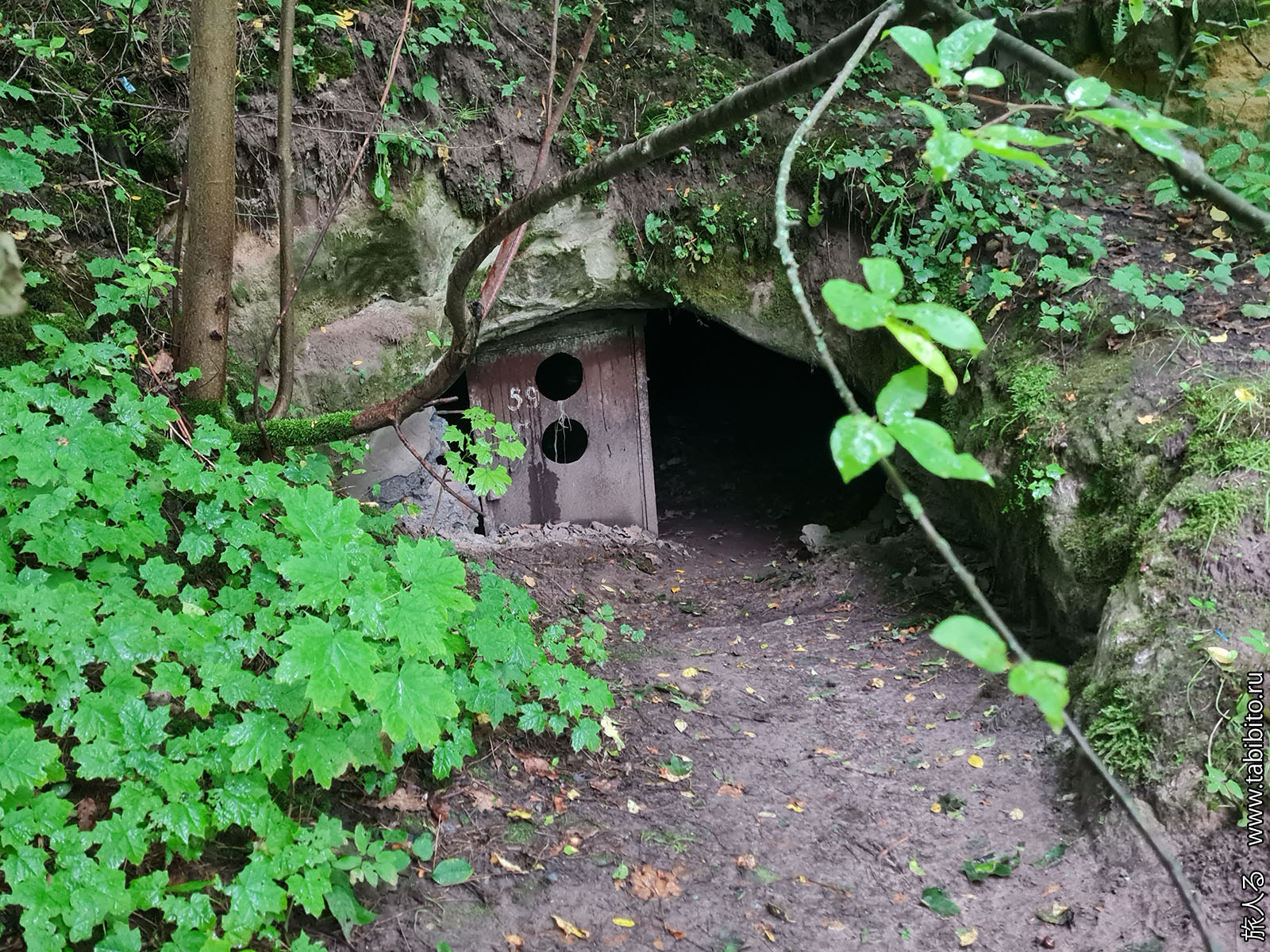 Внутрь пещеры не полезем. Спелеологи уже давно эту пещеру наверняка изучили и слово из трех букв написали.