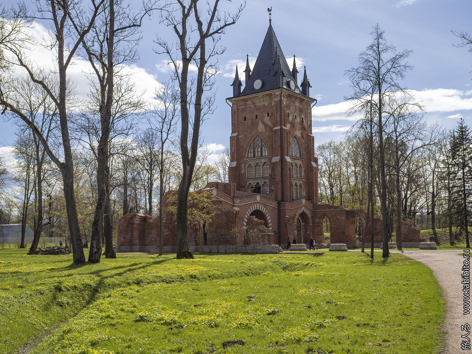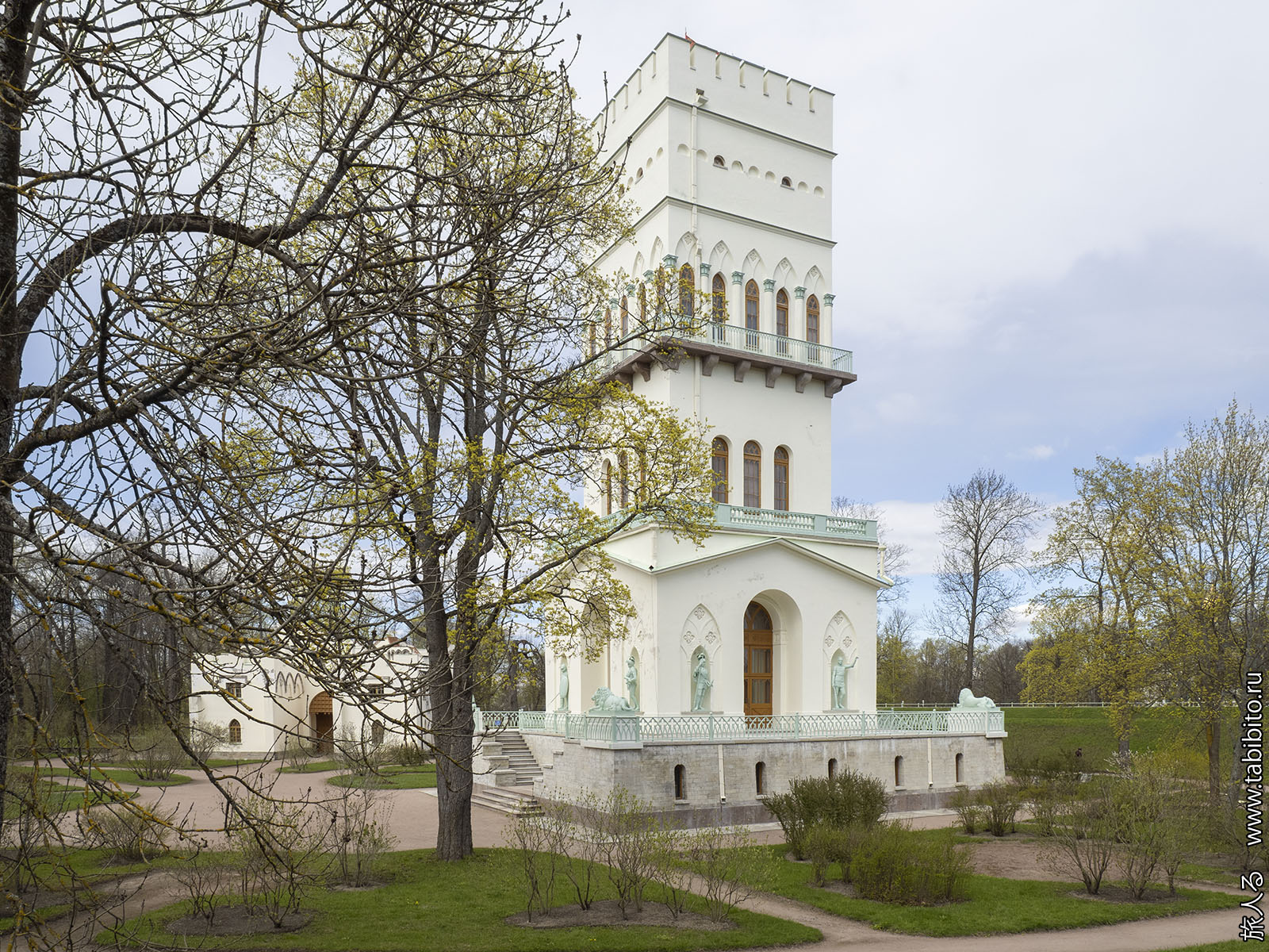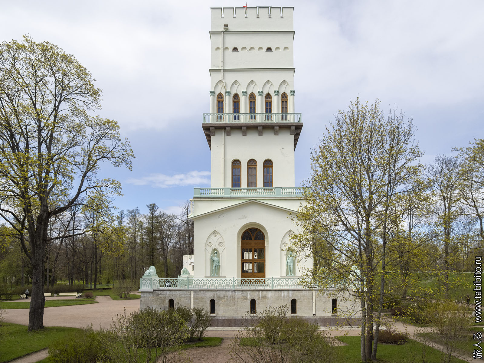Недавно в Александровском парке восстановили несколько павильонов, сильно пострадавших в годы войны. Белая башня (1827), построенная по проекту шотландца Адама Менеласа, использовалась немцами в качестве наблюдательного пункта, бомбили ее нещадно.