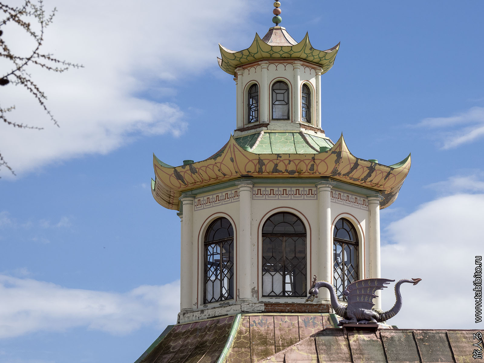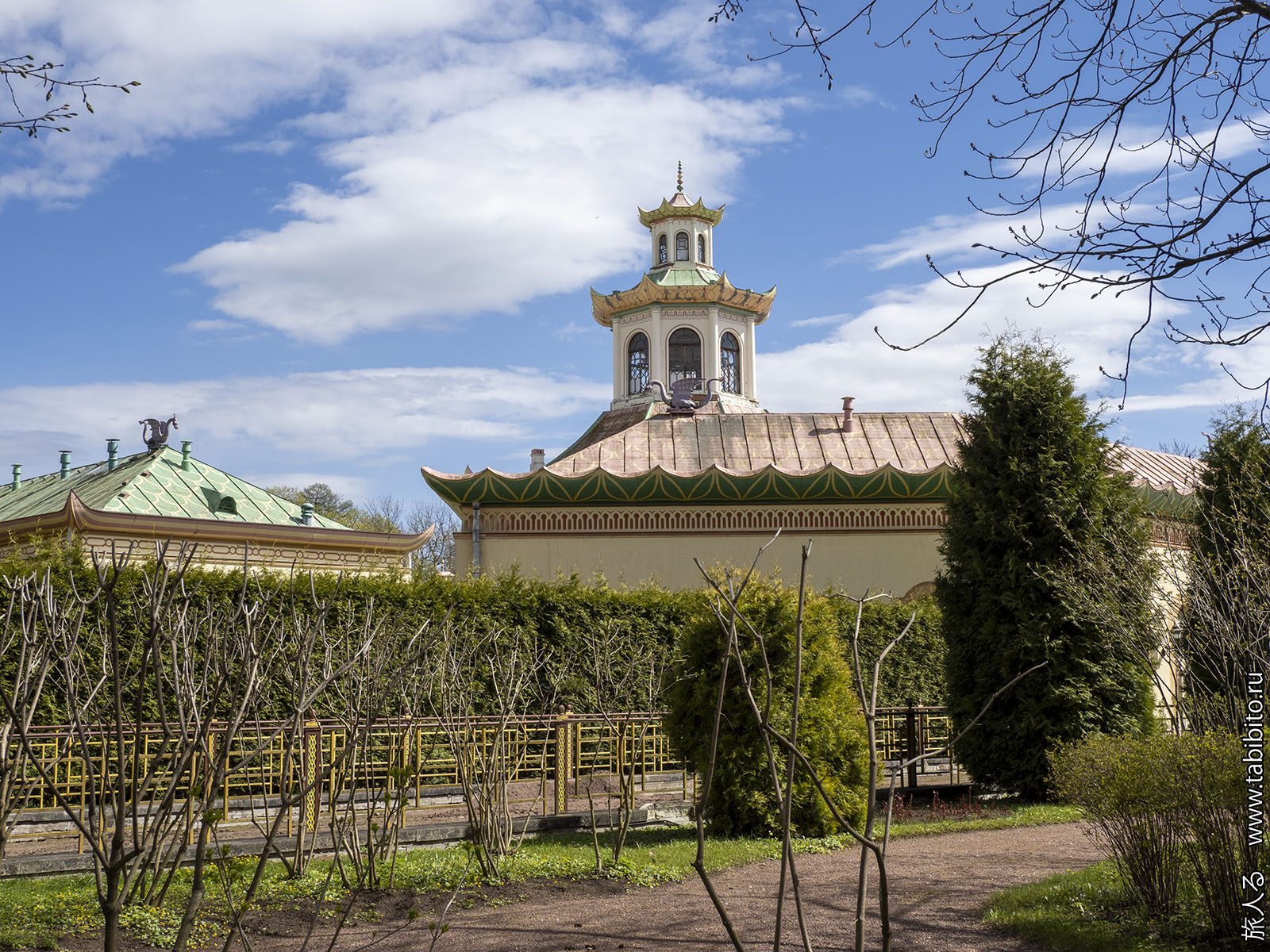 Китайская деревня. Екатерина II хотела добыть в Китае настоящего китайца, который бы построил ей настоящие китайские павильоны, но в итоге с 1782 по 1820-е годы деревню строили Камерон, Ринальди, Стасов, Горностаев и прочие, кто только подворачивался Екатерине II или Александру I под руку.