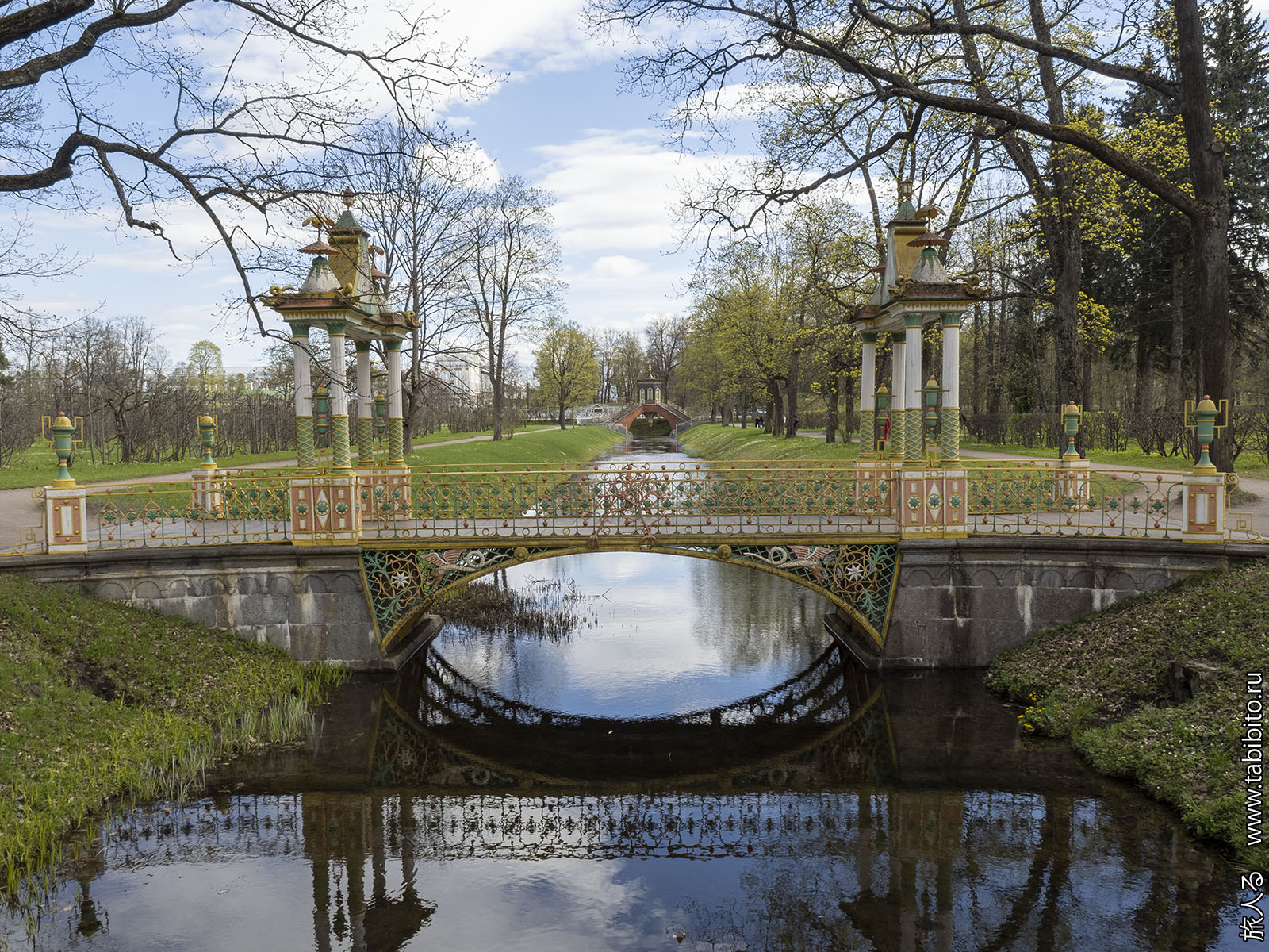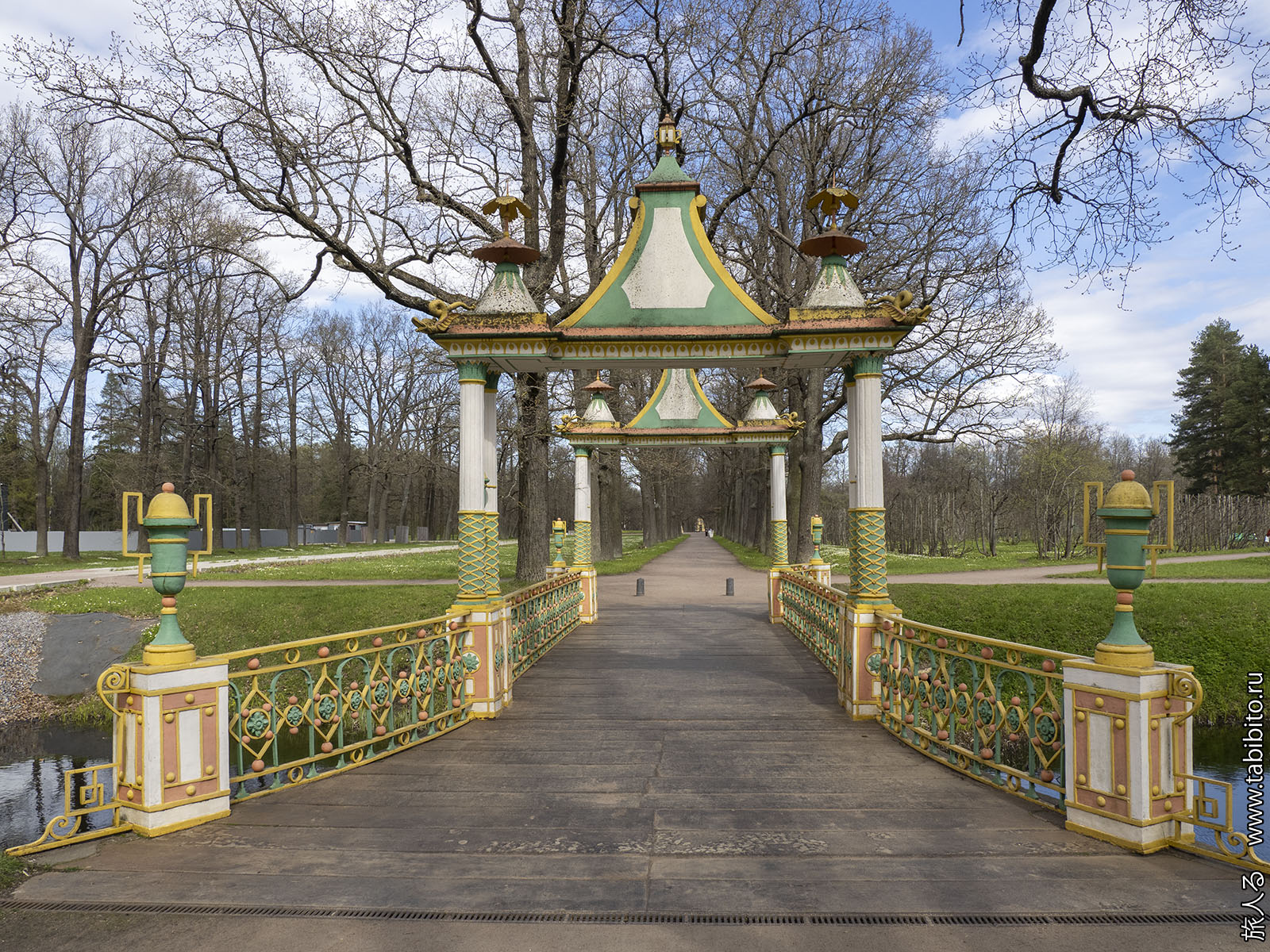 Помимо самой китайской деревни был выстроен Крестовый мост — по мотивам английских увражей.