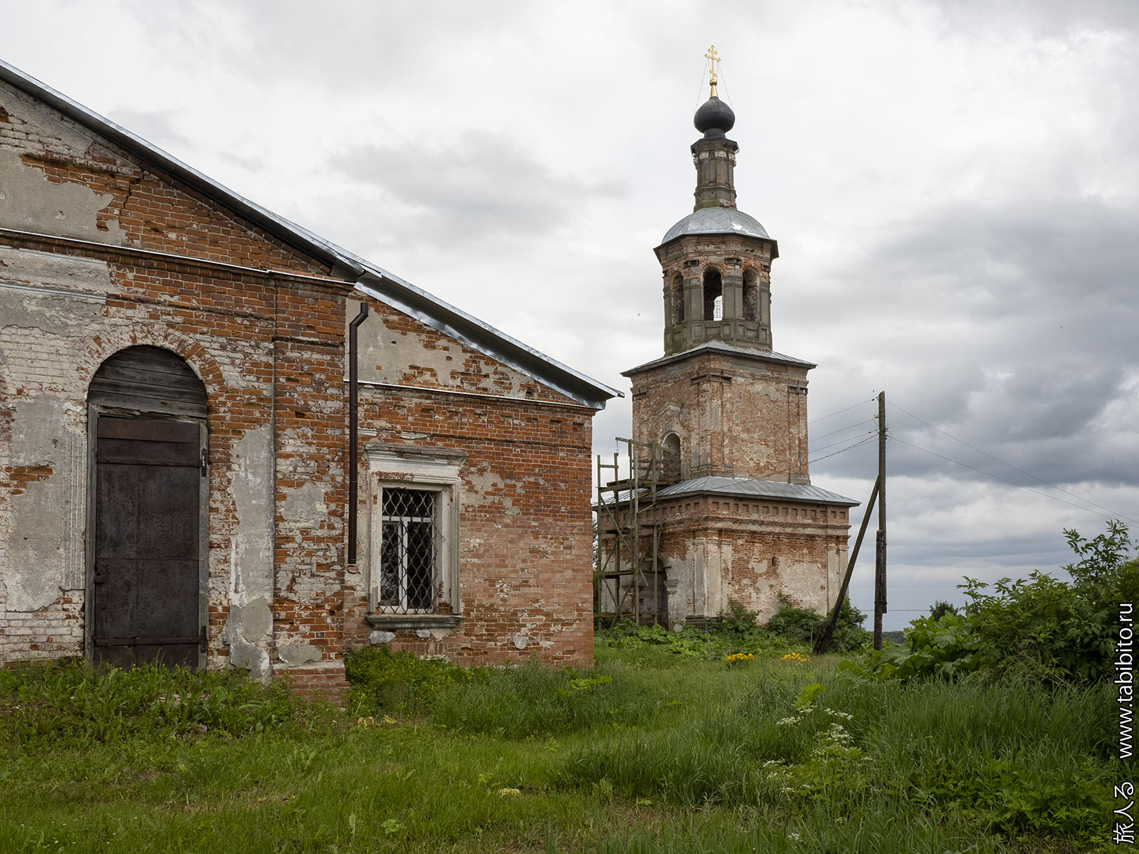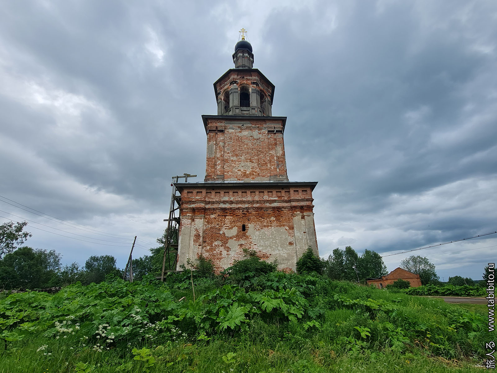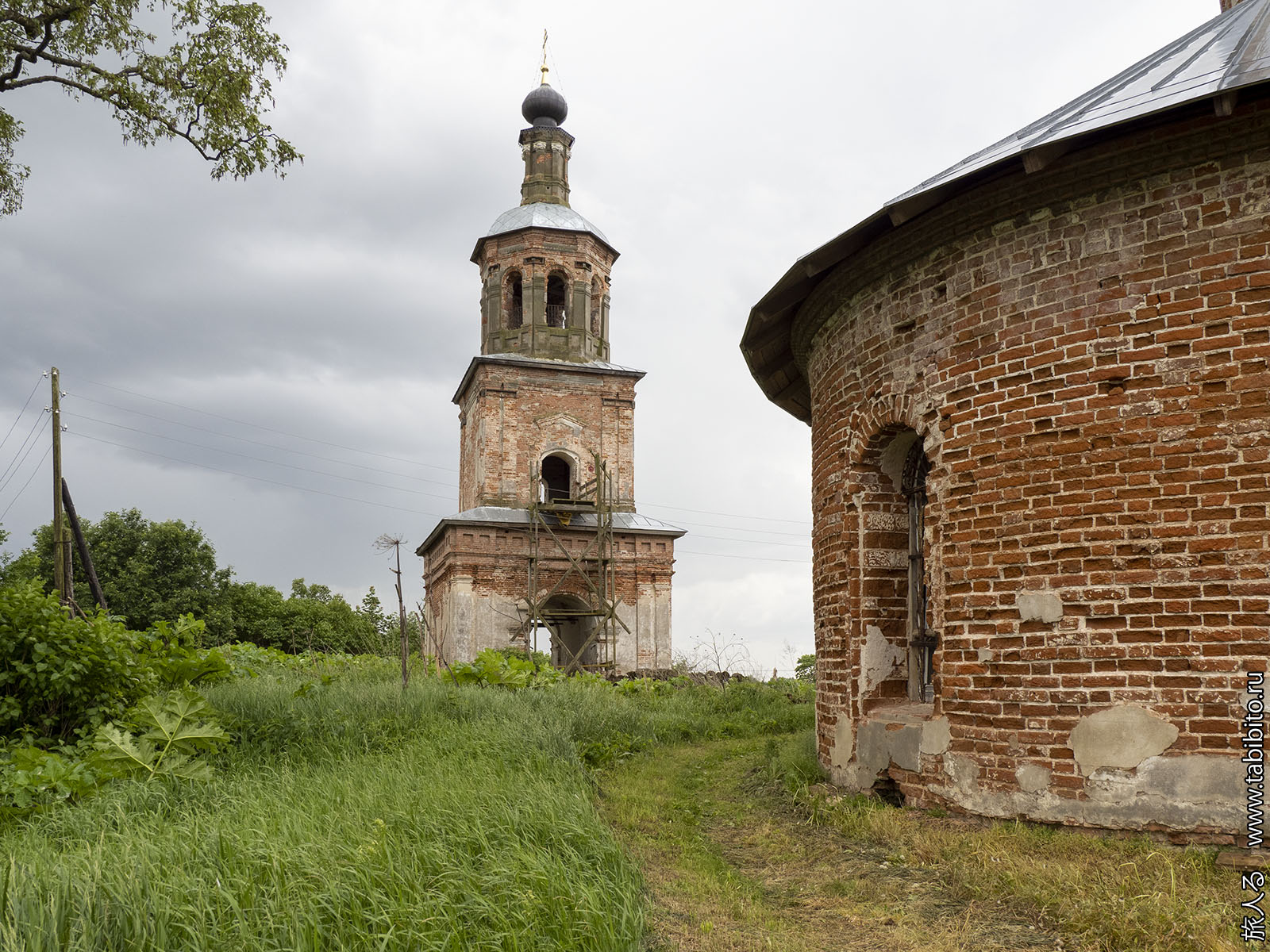 Здесь сохранилась и потихоньку восстанавливается церковь Николая Чудотворца с отдельностоящей колокольней (1742).