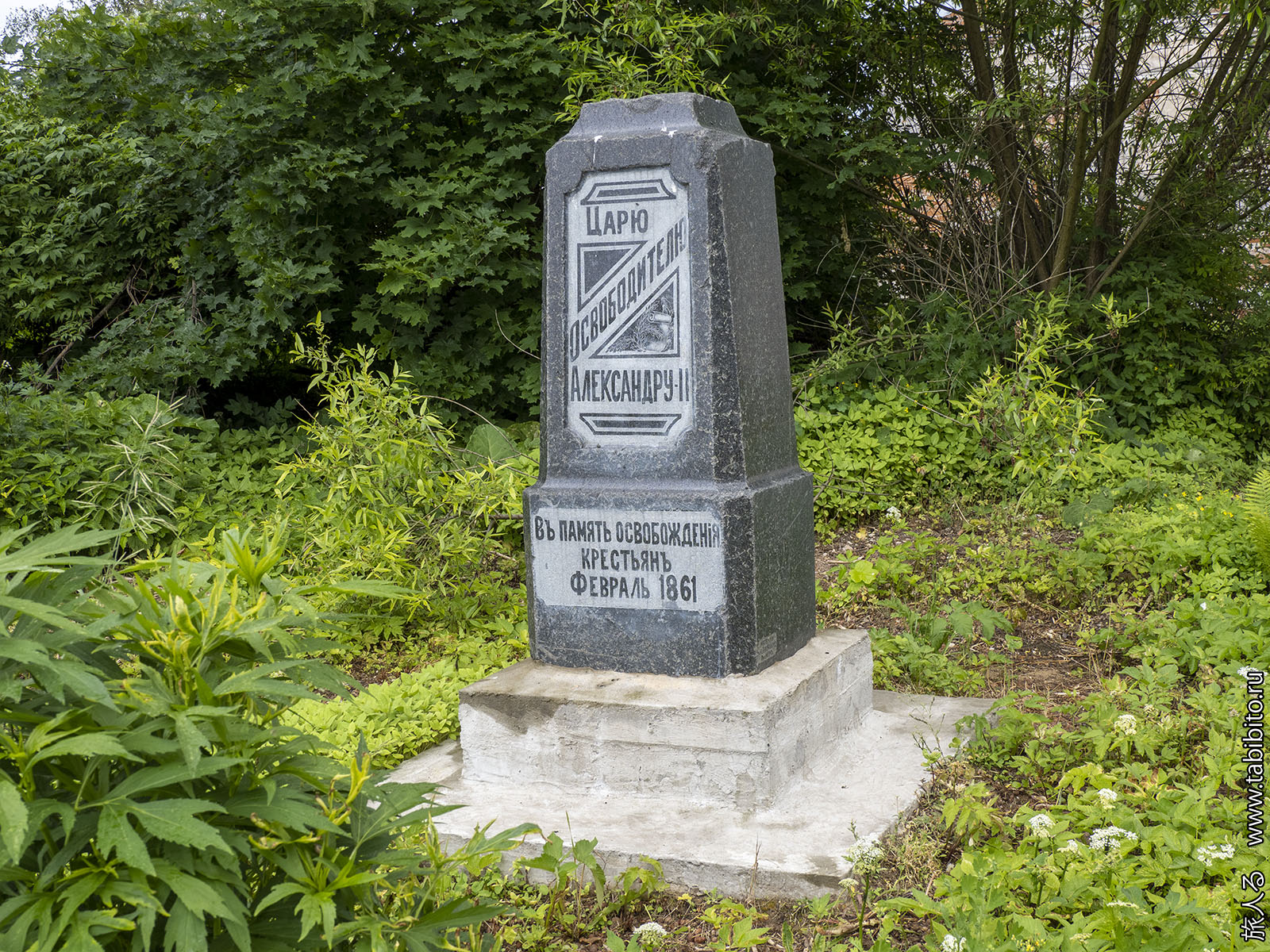 И самый неожиданный артефакт — подлинный памятник Z-царю освободителю Александру II. После революции с него скрутили бронзовый бюст, а постамент, изготовленный в Рыбинске в мастерской А. М. Введенского, выбросили в кусты рядом с храмом. В 2020 году постамент нашли и вернули на место.