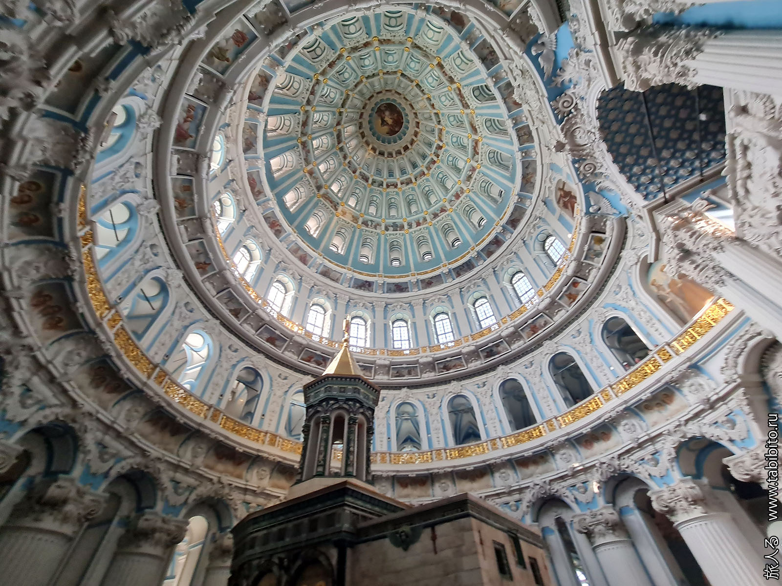 Кажется, что шатер над ротондой с кувуклией кривоват. Но это искажение камеры.