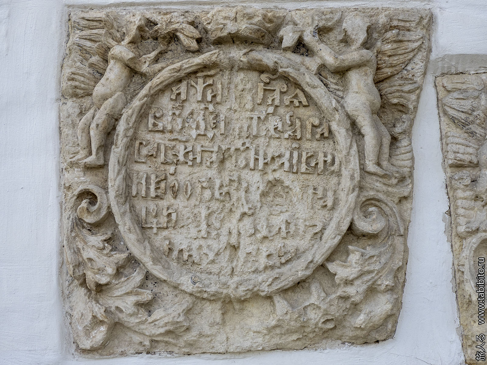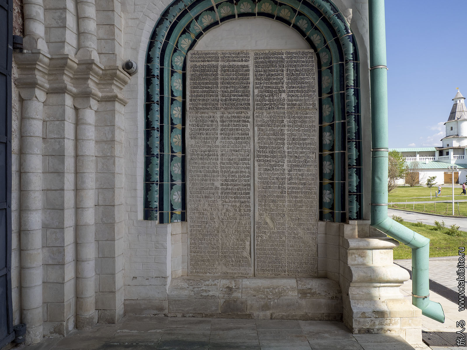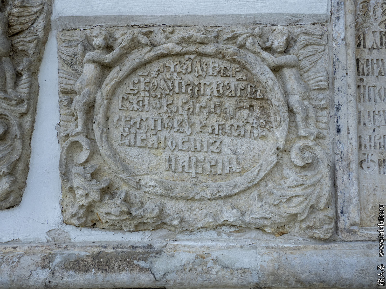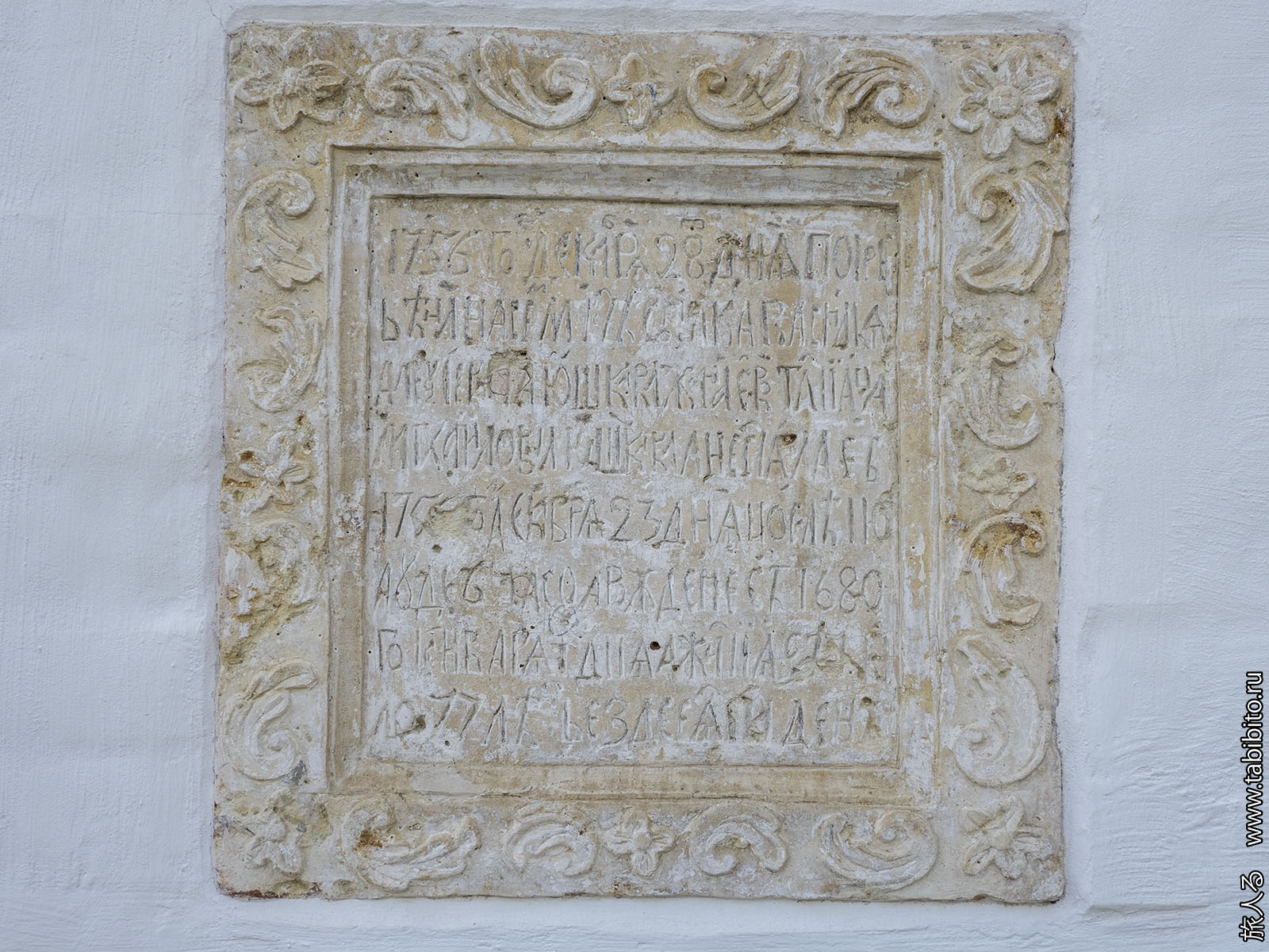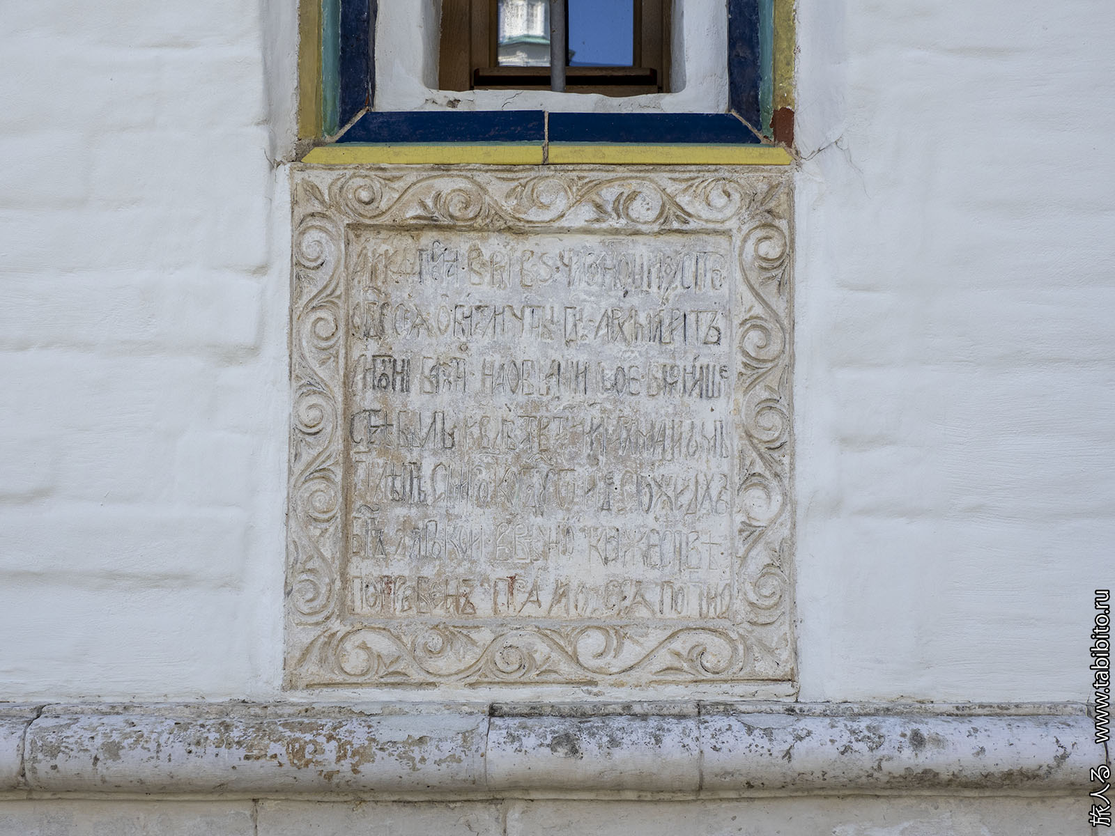Высеченный в плите «Летописец» монастыря: «Како, когда и ким строити начата бысть, и о церкви сей велицей описано есть».