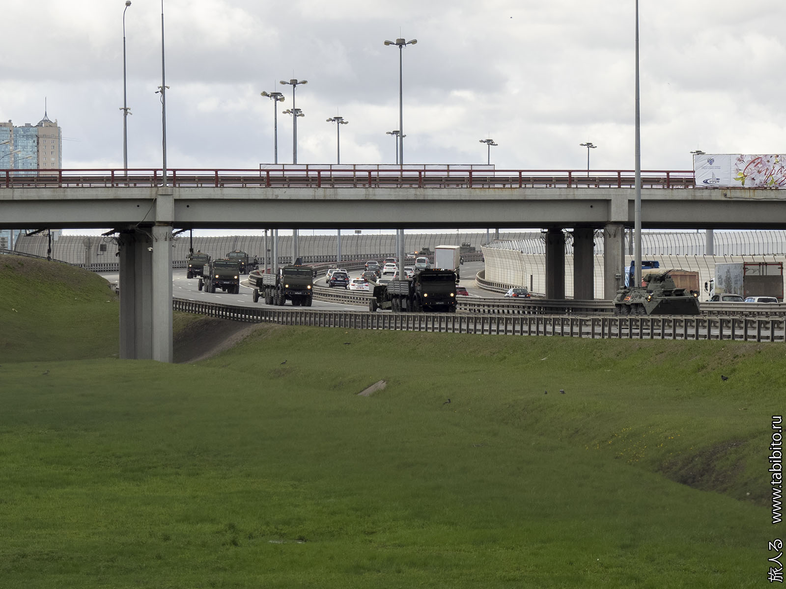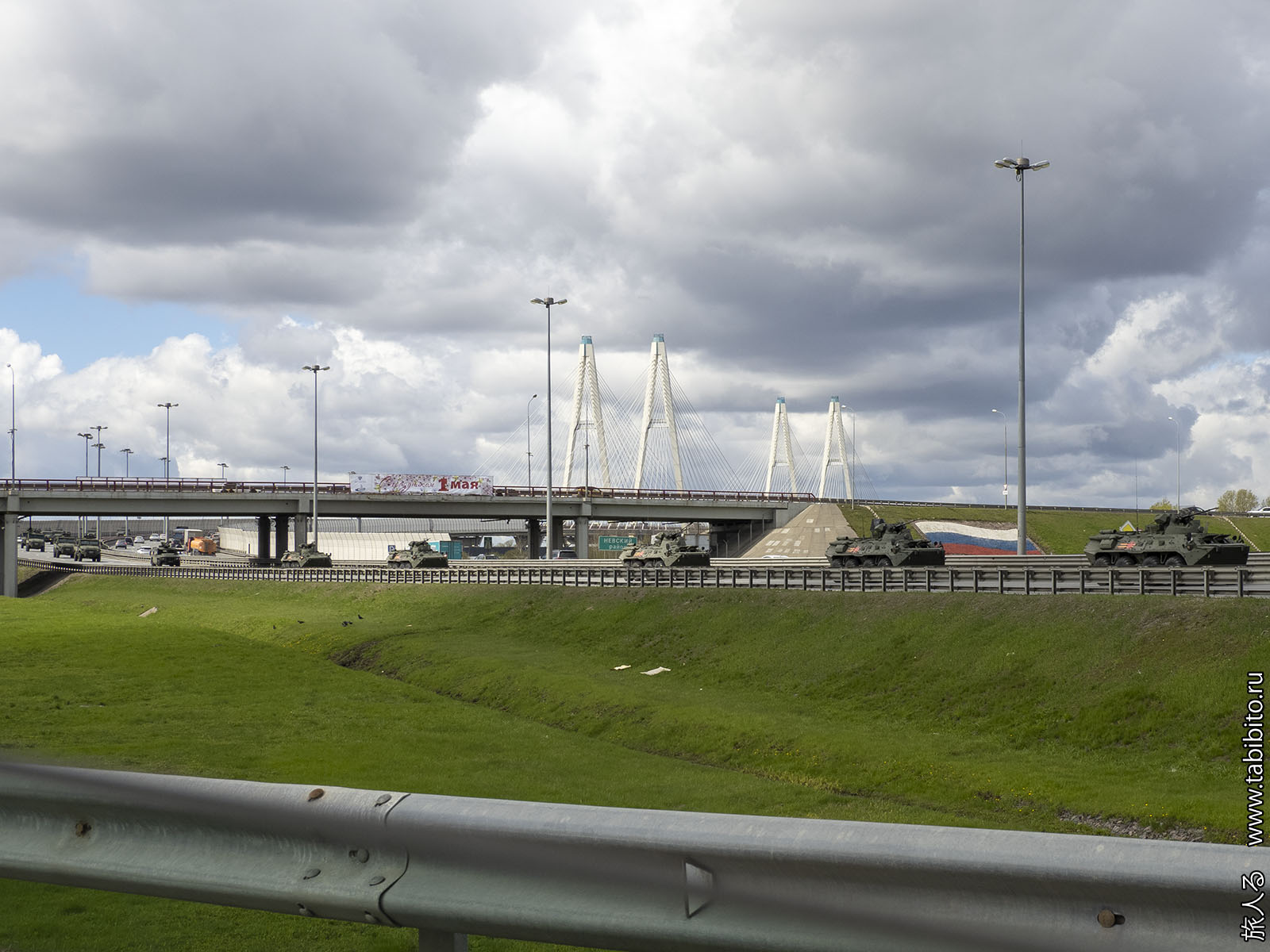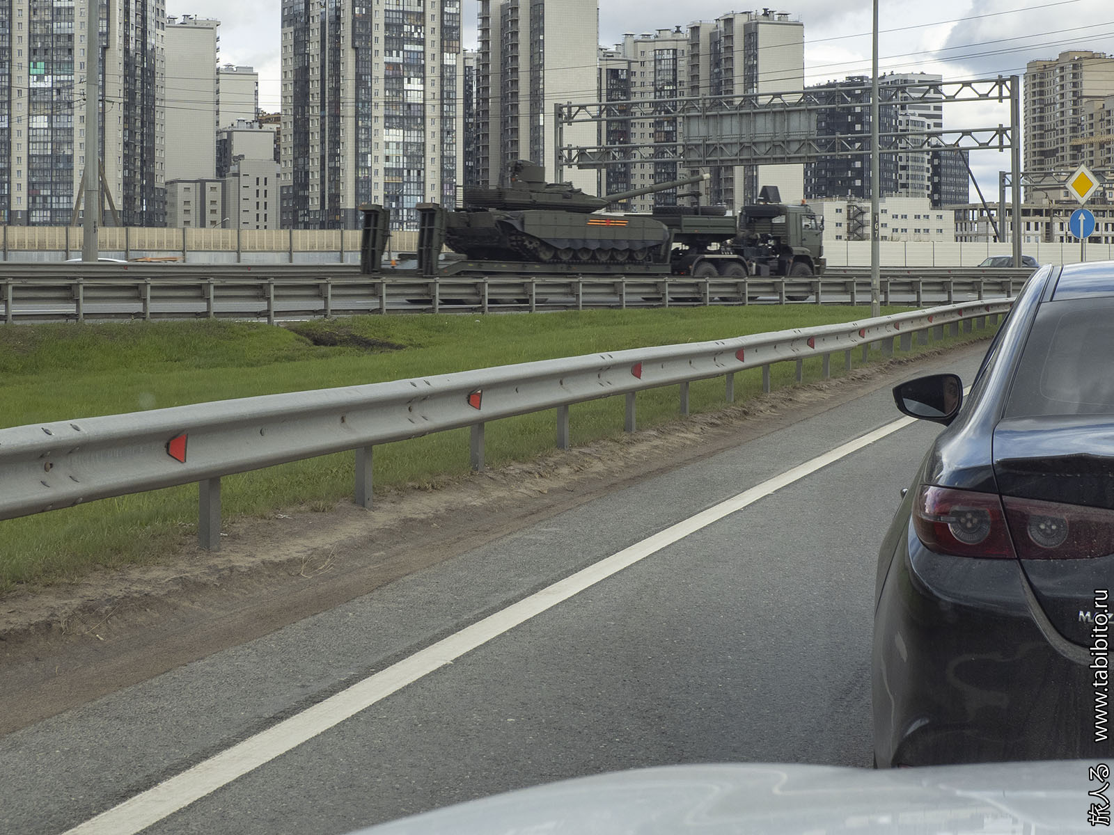 Уехал из Москвы, чтобы не попадать в постоянные перекрытия из-за парада? Смотри парад в пробке на перекрытом КАДе в Петербурге.
